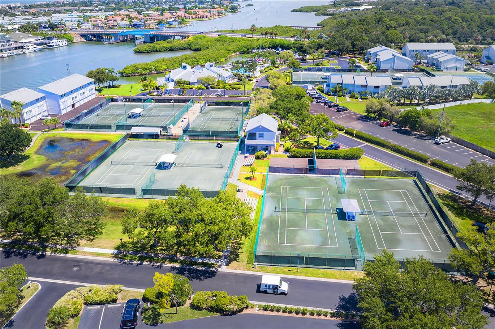 Fun and Fully Dialed-In! This showstopper END-UNIT brings the good vibes AND the upgrades! High style. Low maintenance. Enjoy every-day luxury with granite countertops and dazzling refaced cabinets in kitchen and both baths. The kitchen features stainless steel Frigidaire Gallery appliances. Completely updated bathrooms include double sinks in the primary suite and sparkling reglazed guest bath tub and tile. Florida-feel walls and trim freshly painted in 2022. Underfoot, modern tile and high-end, heavy-duty laminate flooring deliver style and durability. Plantation shutters grace every room, combining privacy, refined elegance, and excellent energy efficiency. Behind the scenes, enjoy peace of mind with 2022 NEW electrical service panel, toggle switches and outlets throughout. 2022 NEW State Proline Commercial Grade water heater. 2023 NEW Lennox/Ruud 2.5 ton HVAC. Outdoors the attention to quality and convenience continues! Both your private balcony and garage floor boast the premium polyaspartic “Sparta-coat” floor protection by Integrity Concrete Coatings. Guest parking is no problem as extra-long driveway can fit two vehicles with ease. The walkway and shared ground-level courtyard are paved for a safe, clean, beautiful entrance, with natural shade of a lovely, potted robellini palm, sure to please and impress! Have your very own quiet corner of this secure PREMIER Florida resort community, insulated from the hustle and bustle and yet! ... just a hop-skip-jump to resort activities and JUST MINUTES from Indian Rocks Beach and the Narrows intracoastal waterway, restaurants, bars, shopping, health and beauty services, amusements galore. Save on home insurance with a fire hydrant at the end of your driveway and your location outside of the flood plane! LOCATION, LOCATION, LOCATION!!! Triangulated between Clearwater, St. Pete and Tampa, this is the BEST VALUE around for peace-of-mind, luxury living and everything you could ever want or need! MUST SEE before someone else steals the keys!