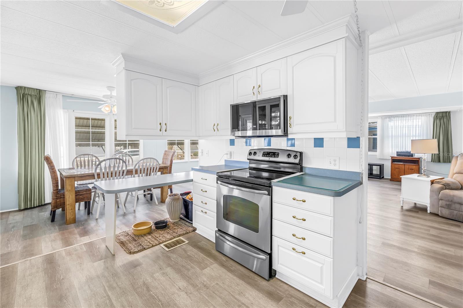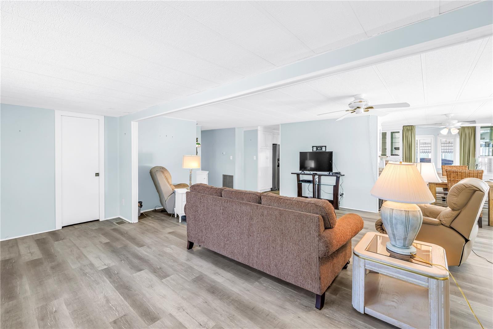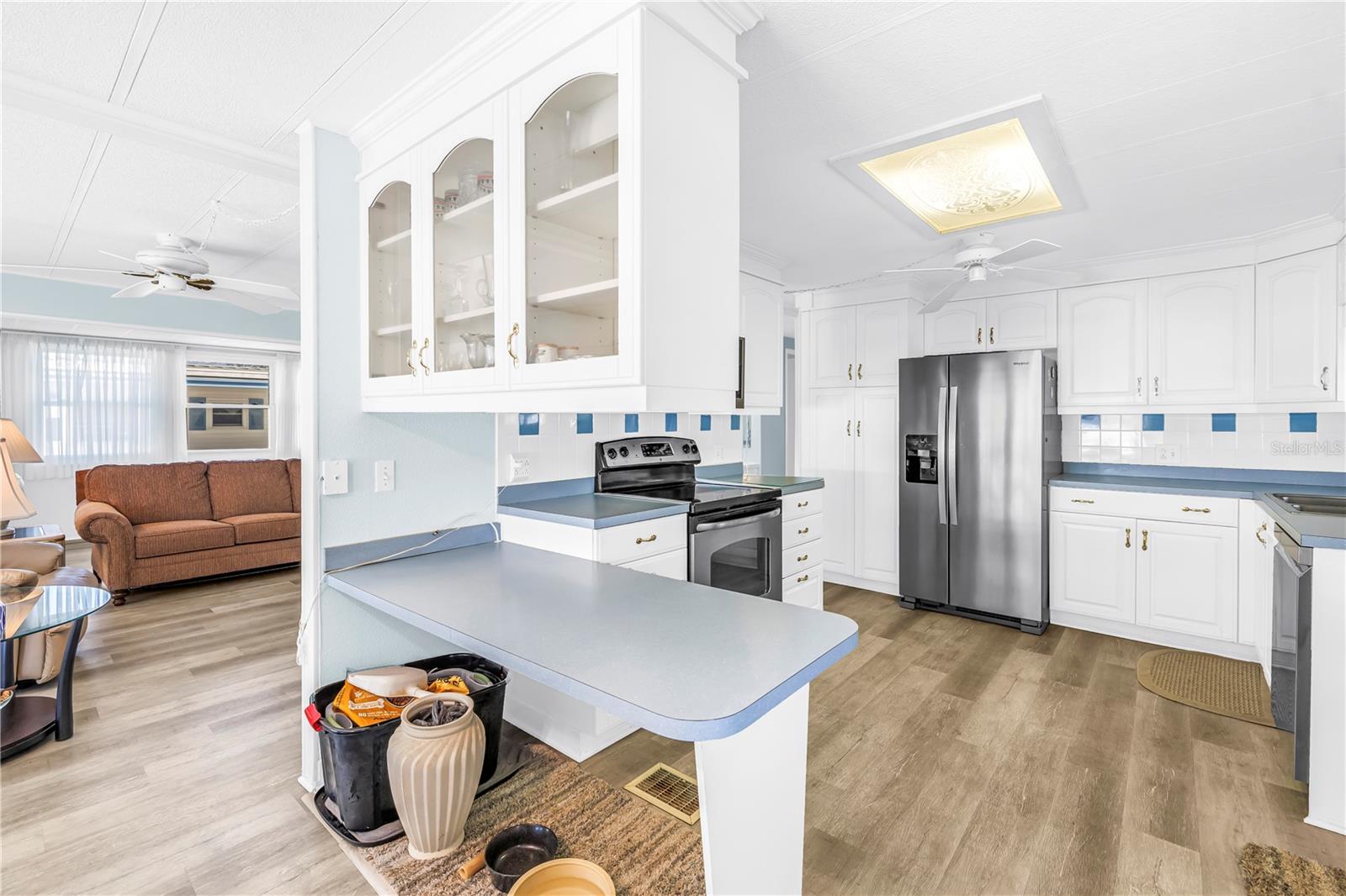 Welcome to this spacious 2-bedroom, 2-bath home with a bonus room and over 1,600 sq. ft. of living space in the highly desirable Fairway Village, located in sunny Largo along Florida’s Gulf Coast, just minutes from the area’s famous powdery sand beaches. This sought-after resident-owned 55+ mobile home golf community offers an active lifestyle and exceptional value. One of the larger homes currently available and priced to sell, this property combines space, comfort, and convenience. The home features a generously sized updated kitchen, a bright dining area with built-ins, panoramic windows, and an open-concept living room ideal for relaxing or entertaining. There are two sizable bedrooms with large walk-in closets, two full bathrooms including a primary en-suite, and abundant storage throughout. A versatile bonus room located at the back of the home and connected to the second bedroom can serve as a third bedroom, caregiver suite, hobby room, or home office. The covered carport offers spacious parking, an accessible ramp, and an attached storage shed with a washer and dryer. Recent updates include a newer roof in 2022, luxury vinyl flooring throughout, and upgraded double-pane windows for added comfort and efficiency. An enclosed sun porch connects to the bonus room and provides convenient access to the storage shed and laundry. Residents of Fairway Village enjoy resort-style amenities, including a remodeled 19,000 sq. ft. clubhouse, numerous social events, two heated pools, Jacuzzis, library, eight covered shuffleboard courts, and a 9-hole par-3 golf course. Golf memberships are available to residents for a nominal fee with unlimited play. The community also features two lakefront fairways, a practice putting green, and a large serene lake for catch-and-release fishing. The $420 monthly fee includes water, sewer, trash, lawn care, cable, and internet. Ideally located near powdery sand Gulf beaches, hospitals, places of worship, airports, shopping, and dining. This partially furnished home is well maintained and move-in ready, making it perfect for seasonal or year-round Florida living. Schedule your private showing today.