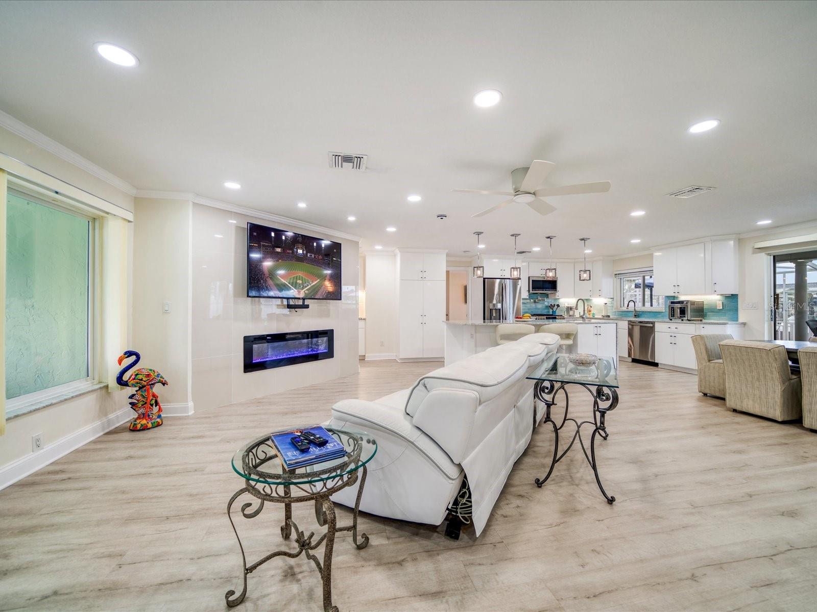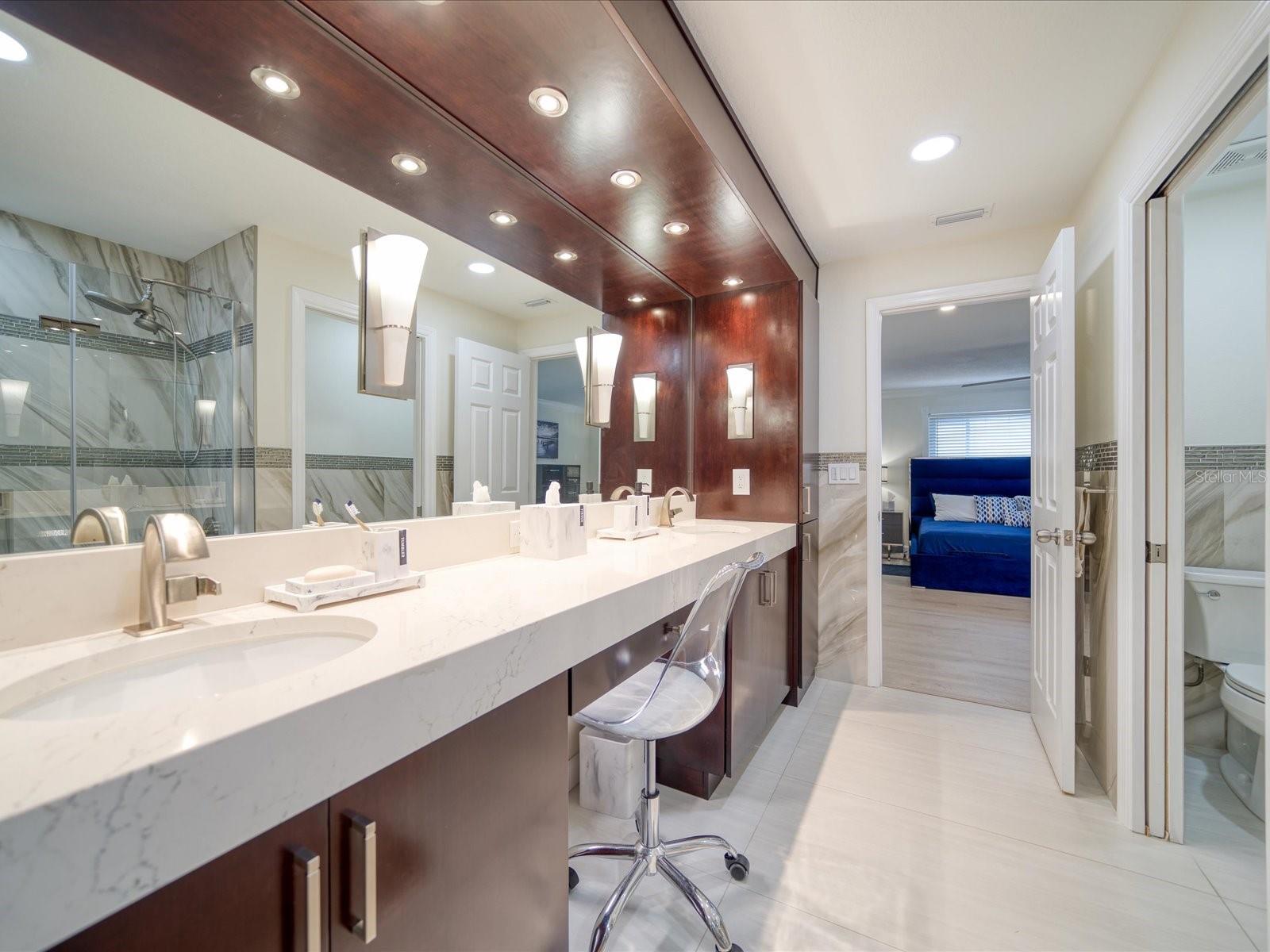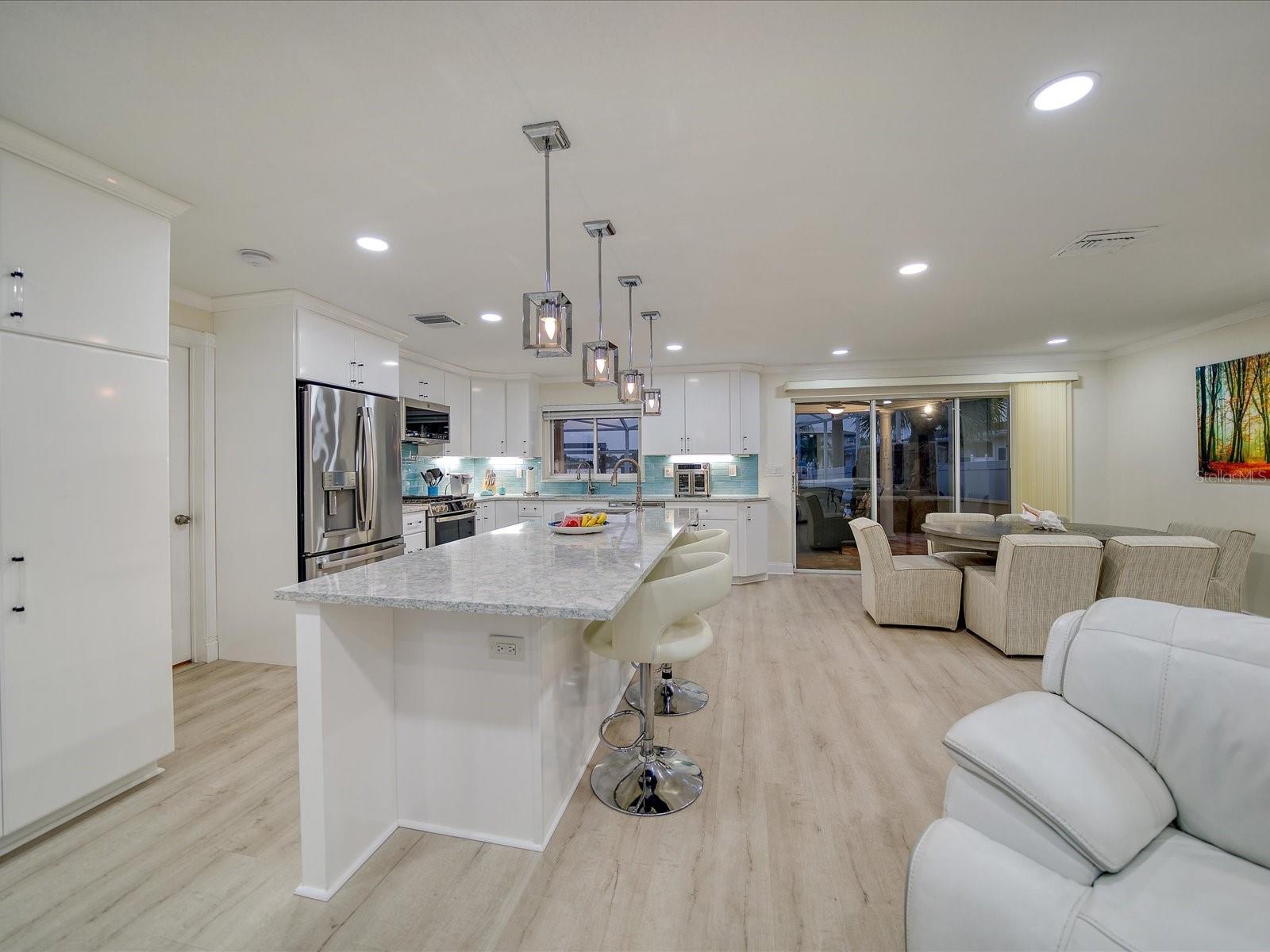 **PRICE REDUCED!** Discover the epitome of luxury living in this waterfront residence nestled within the desirable Harbor Hills community. Set on a large corner lot with a circular driveway, this home boasts tropical landscaping and a covered front porch that adds to the curb appeal. Enter through double leaded glass front doors, setting the tone for the exquisite interior that awaits. An open floor plan and neutral color palette create an inviting ambiance. The living area features an electric fireplace that adds warmth and elegance to the space. The split bedroom plan offers a full guest or in-law suite with a separate entrance, complete kitchen, washer/dryer, and sliders that offer picturesque pool and water views; making it perfect for income potential. The designer kitchen boasts stainless steel appliances, including a gas cooktop, quartz countertops, pull-out drawers, Lazy Susans, and a pull-out spice cabinet. A large island overlooks the dining room and living room with a wet bar providing extra seating and the perfect place to gather. Each guest bedroom features its own ensuite bath, beautifully appointed and generously equipped with ample closet space. The lavish primary bedroom offers French doors that overlook the spacious yard, crown molding, and a gorgeous ensuite with an extra-long Jacuzzi tub, shower, double vanity sinks, and custom tile work. Sliders in the family room create a seamless transition to the enclosed patio and heated salt-water pool complete with waterfall for endless hours of entertainment and relaxation enjoying the breathtaking water and sunset views that enhance the tranquility of waterfront living. Venture to the new dock with electricity, a 10,000 lb. lift and davits, creating a boaters' paradise with easy access to the Intracoastal Waterway. Additional features include loads of storage including a large side yard for boat trailer storage, etc., a floor safe, a full house alarm system with 7 cameras, and remote access for added peace of mind. This beautiful home is located in close proximity to sparkling beaches, top-rated restaurants, shopping, and two airports ensuring a lifestyle of convenience and leisure.