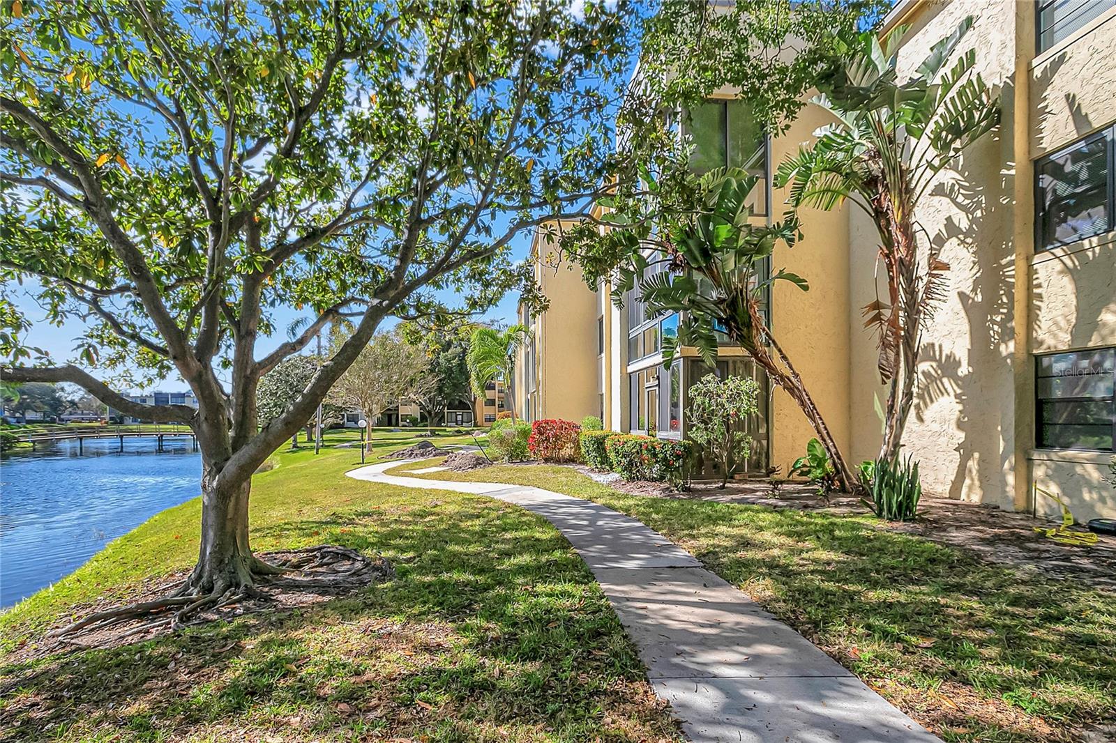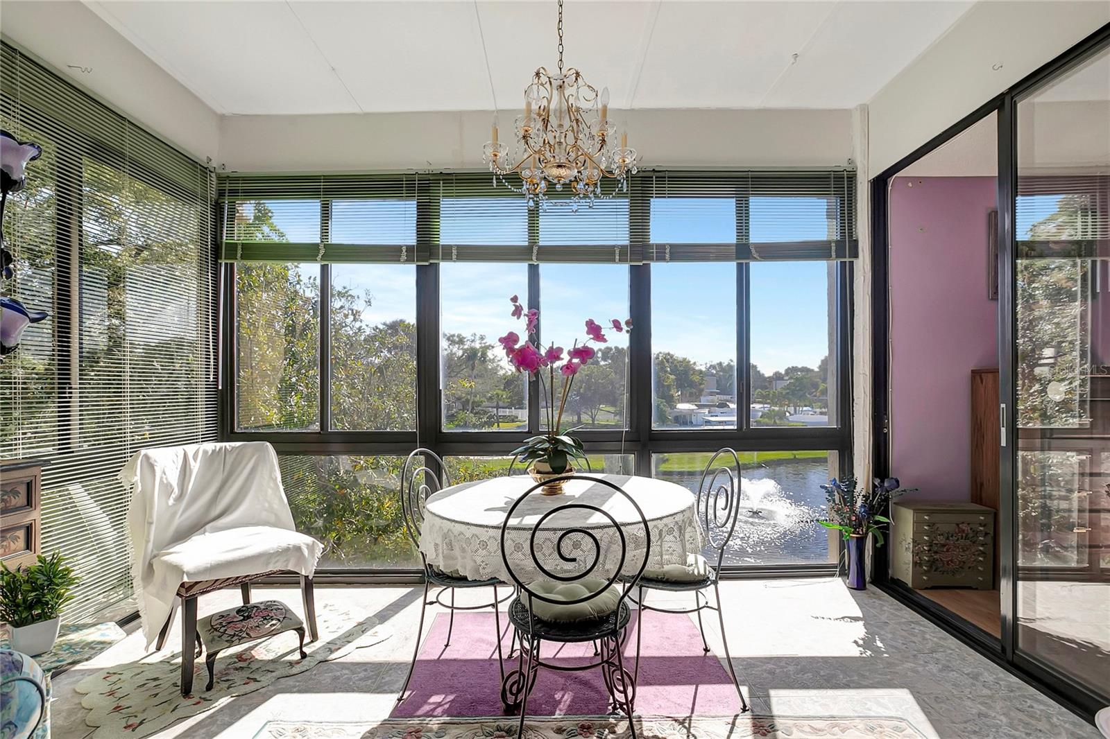 OUTSTANDING WATER VIEWS await you at this TOP FLOOR, THREE BEDROOM, 2 bathroom, end unit at 55+ Lakeview of Largo. Make this your dream home! This condo features an open floorplan with a split bedroom layout. Floor to ceiling windows on the lanai flood the unit with natural light while offering additional square footage, making this one of the largest units in the community. An open floor plan combines the dining room, living room and lanai. Each of these rooms features fantastic views of the pond and fountain. The spacious master bedroom features an en suite bath and a slider onto the lanai. This community sits high and dry and was NOT IMPACTED BY LAST YEAR’S STORMS. There is onsite laundry on each floor, and the complex is equipped with elevators. This well-maintained 55+ community has many amenities including 3 swimming pools (1 heated), spa, clubhouse, shuffleboard courts, picnic and grill areas, and scenic walking paths. It is tough to beat this peaceful community’s location. It is situated just minutes from the beautiful warm waters of the Gulf of Mexico, award winning beaches, and is close to shopping, restaurants, and Bonner and McDough Parks. All this and the milestone and structural inspections have been successfully completed with NO needed assessments.With its prime location, this property is ideal for those seeking convenience, comfort, and a touch of Florida charm. Don’t miss this opportunity to make Lakeview of Largo home! HOA COVERS CABLE, HIGH SPEED INTERNET, SEWER, TRASH AND WATER.
