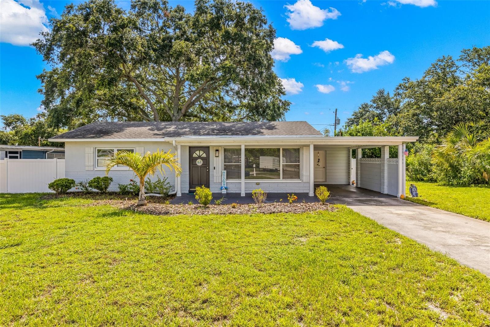 Beautifully updated 3 bedroom 1 bathroom home on a huge lot in Tropical Groves. This tastefully updated and decorated home features an open floor plan with a spacious open kitchen. The main living area is light and bright with lots of natural sunlight and a beautiful cove ceiling. Wood plank style ceramic tile flooring is featured throughout the main living areas of the home. The large updated kitchen features stainless steel appliances, granite counter tops and high quality soft close wood cabinetry with sleek modern hardware. The bathroom was updated in 2018 with a new bathtub / shower and vanity with a modern faucet and granite counter top. From the living area step through to what can be used as a study / reading area / office or dining room. From this area French doors lead out to a huge fenced back yard with patio, storage shed and fire pit. There is plenty of room for a pool, play set and space to create your own private oasis. Other features include a covered car port which could easily be enclosed and turned into a garage. Inside air conditioned laundry room with newer appliances. The AC and roof were replaced in 2018 and the home has new guttering. The home is ideally located close to shopping, restaurants, parks, Seminole City Center and only 10-15 minutes drive to the beautiful Gulf Beaches. *Did not flood or sustain damage from hurricane's Milton or Helena* Seller will also consider leasing short or long term.