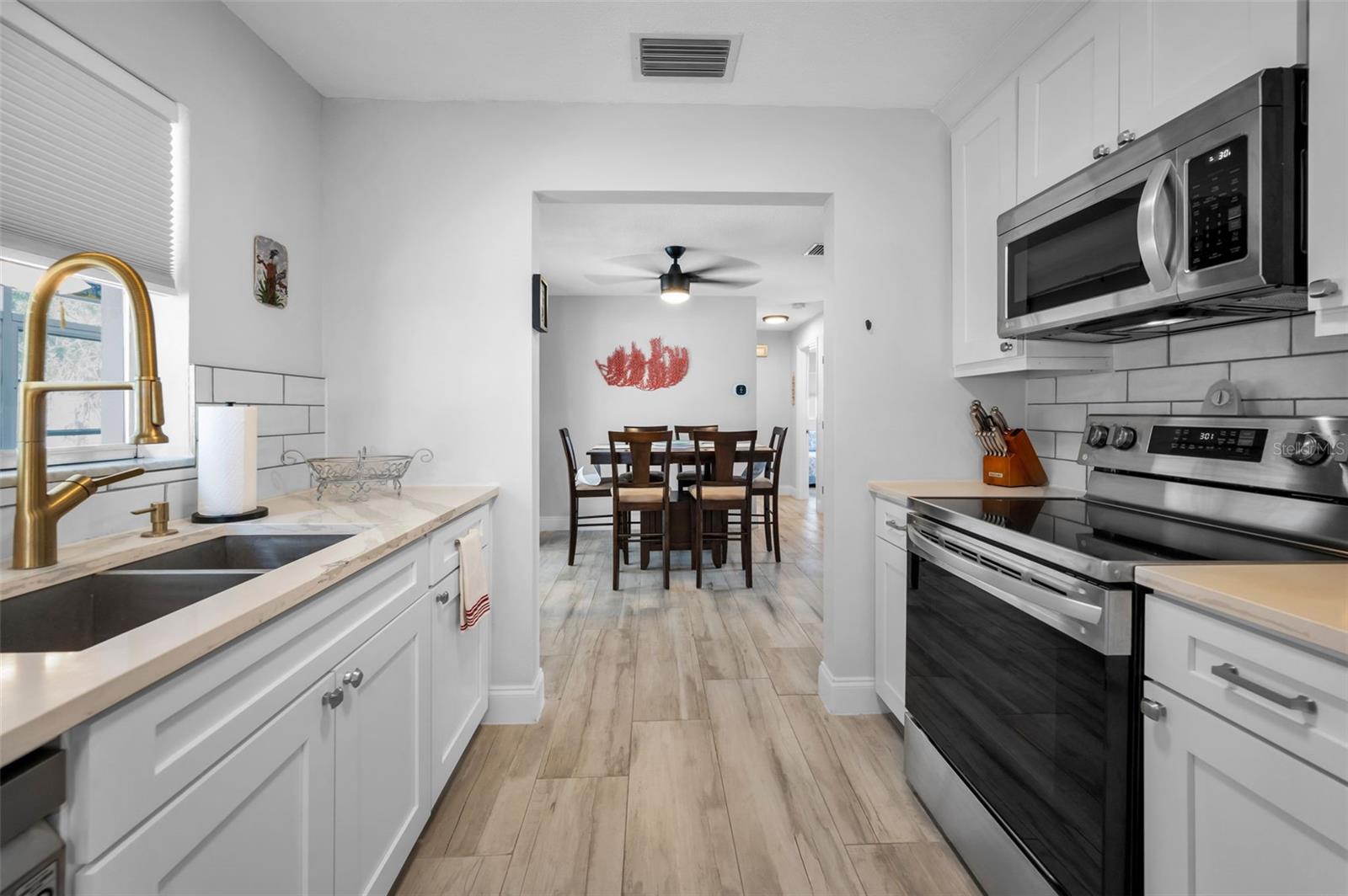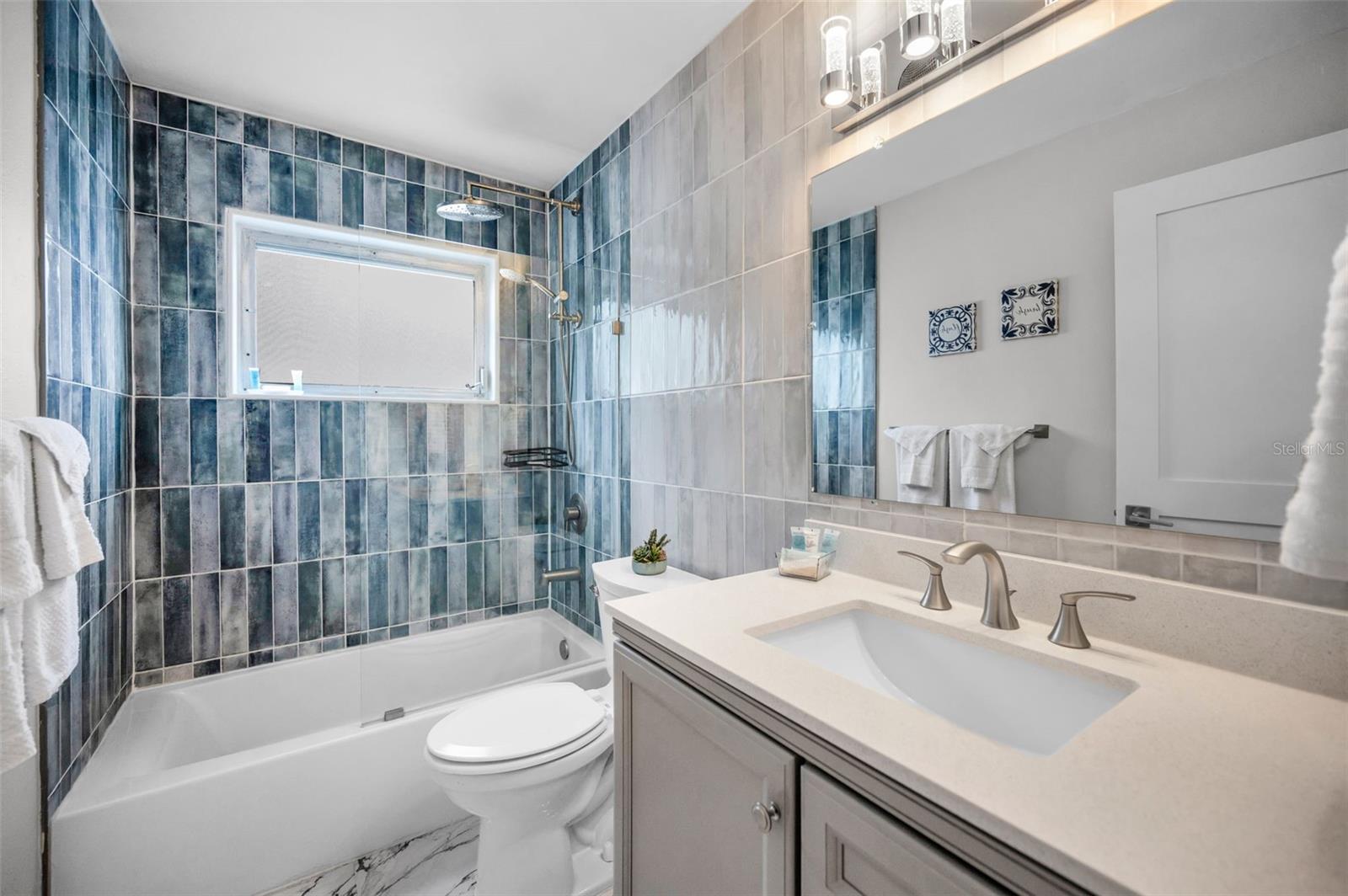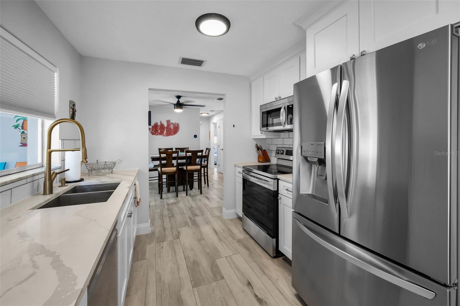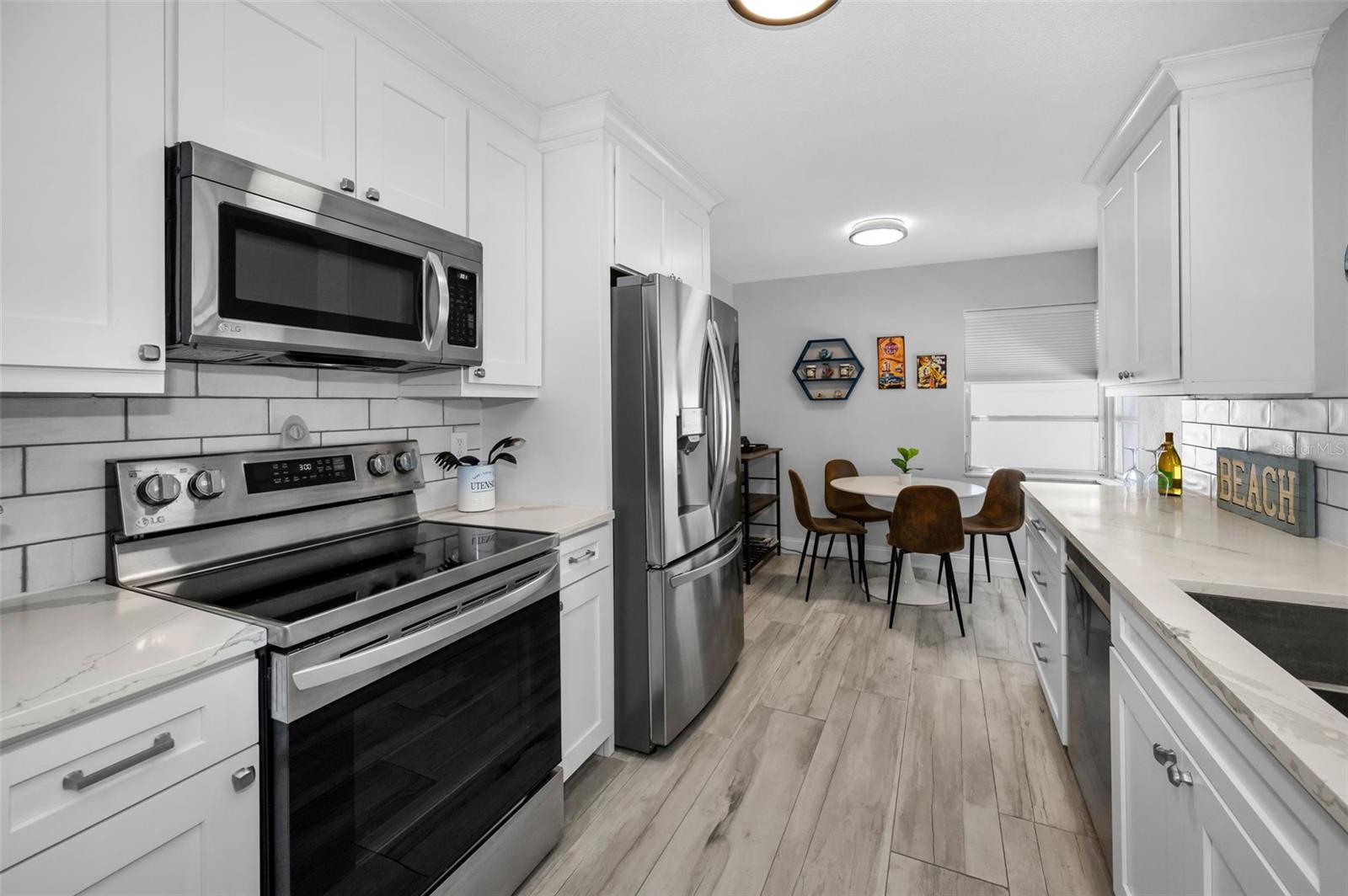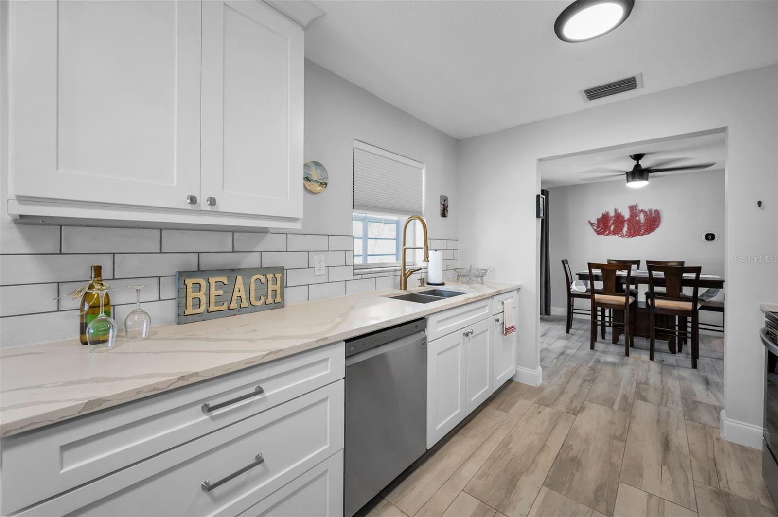 Location Location Location!!! Within 5 miles to local beaches, 1/2 mile to the Highland Aquatic Center, shopping and restaurants. Completely remodeled charming 2 bedroom, 2 bathroom home with attached one car garage conveniently located close to beaches, shopping and entertainment. This home offers the perfect blend of modern comfort and style. The open floorplan features luxurious Italian ceramic tile plank flooring throughout with a separate dining room that leads to a relaxing Florida room via sliding doors. The updated kitchen boasts sleek quartz countertops, modern fixtures, a subway tile backsplash, shaker style cabinets and stainless steel appliances plus an eat in space for casual dining. The home is beautifully appointed with modern light fixtures and ceiling fans throughout. The spacious primary suite offers a spa like ensuite bath with large walk in shower and large walk in closet. The generous guest bedroom is adjacent to a beautifully updated guest bath with shower/tub combo. Step outside to the Florida room which overlooks a large fenced yard, perfect for entertaining or relaxing. This home is ready for you to move in and enjoy. The house has been replumbed as well as updated electrical. Schedule a showing today and make this your home.