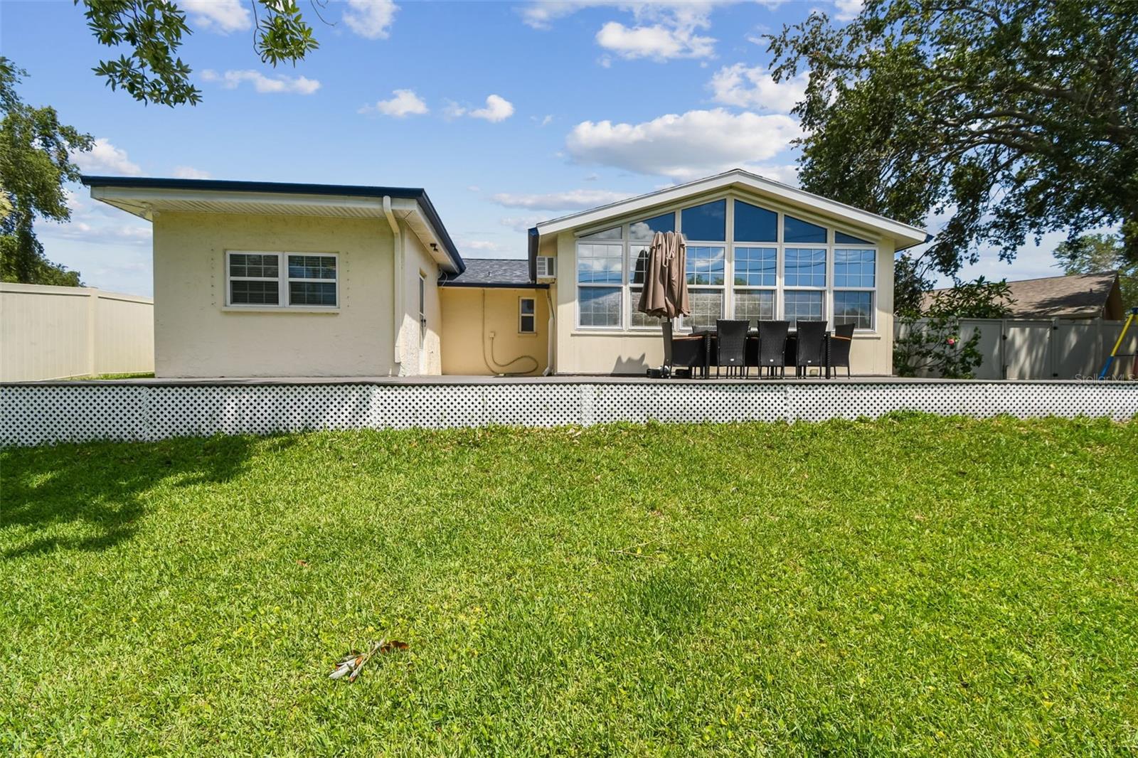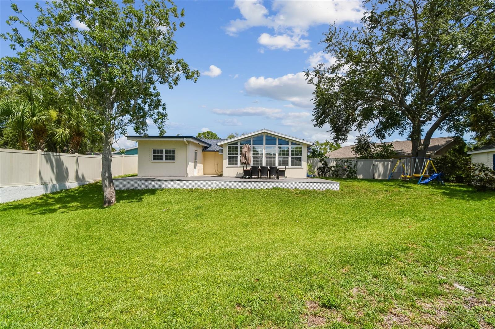 Tucked away on a quiet cul-de-sac in desirable Concorde Square, this beautifully maintained 2-bedroom, 2-bath, with 2 additional large sunroom and bonus room/office, 2-car garage home offers the perfect blend of comfort, style, and location! Just off Belcher Rd near Roosevelt, you're centrally located with easy access to dining, entertainment, parks, and world-renowned beaches. Step inside to an open floor plan featuring a gorgeous, updated kitchen complete with stainless steel appliances, wood cabinetry, and granite countertops – perfect for entertaining or everyday living. The spacious primary suite offers a walk-in closet and a fully updated (2025) en-suite bathroom. A bonus room is located off the primary bedroom making it a great space for an office, library, or nursery. Guests will enjoy the completely updated (2025) second bathroom as well! Relax year-round in the Florida room (sunroom) just off the main living area, or step outside to your expansive fenced backyard oasis with a gorgeous custom deck – the backyard is ideal for hosting, relaxing, or gardening. There's plenty of outdoor space for all your needs and room for a pool! Additional highlights include New Roof (2021), hot water heater (2025), 7800-watt Generator with built in attachment to electrical panel, hurricane shutters for back windows. No HOA or CDD Fees. No flood zone! Located in a peaceful neighborhood with cul-de-sac privacy. Don't miss this rare opportunity to own a move-in ready home in a prime location. Schedule your showing today! 360 walk through video under virtual tour link