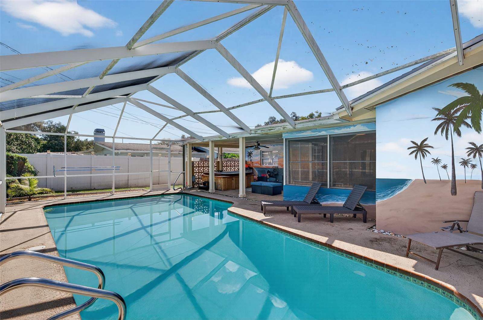 **SELLER MOTIVATED** Welcome to your new home. As you walk in the front door, you will notice the bright open floor plan with updated flooring and new paint. Attached to the living room is the updated kitchen including new appliances. The well appointed and spacious primary bedroom and en-suit bathroom make for a relaxing retreat. For those hot Florida summer days enjoy the refreshing pool, and for those cooler months just turn on the heater. After relaxing in the pool, sit around a fire pit and roast s'mores in the backyard. This home is perfect for a family or as an investment. The home is currently being used as a short-term rental. Home comes with solar panels cutting down on electric bills. Come see it today and fall in love!!!! AC 2018, roof 2020, solar panels 2020, electrical updated 2023, updated windows and doors 2016
