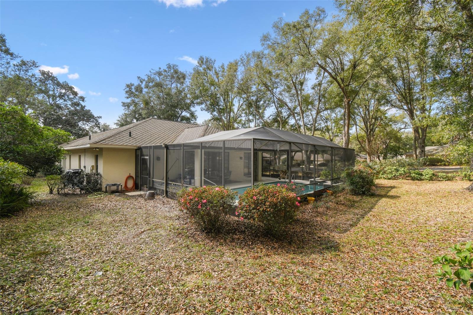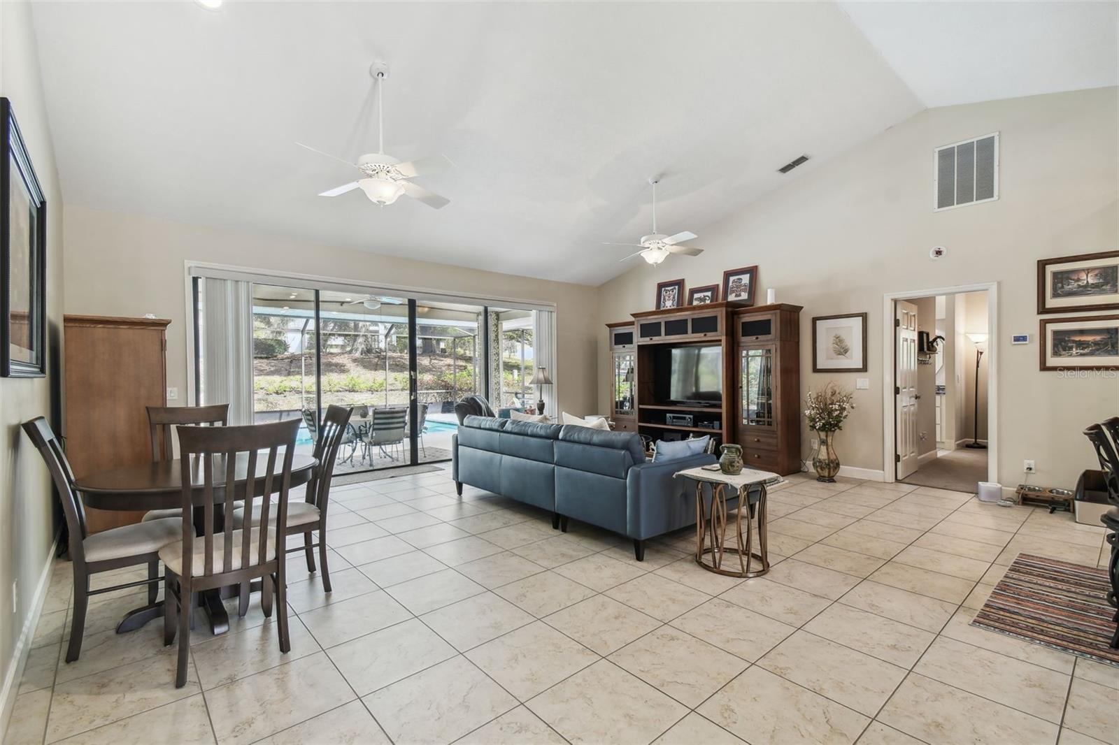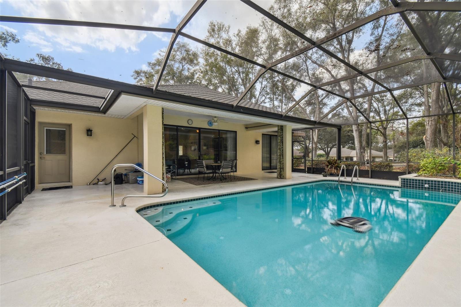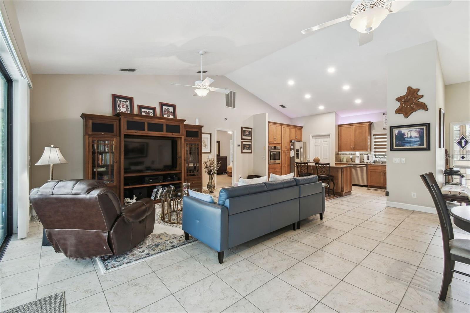 Welcome to this beautiful home located in the desirable golf community of Black Diamond Ranch in Lecanto, Florida. Situated on a quiet cul-de-sac, this charming 2-bedroom, 2-bathroom home offers 1,684 square feet of living space. As you approach, you'll be captivated by the large driveway leading to a split, side-facing 2-car garage. Upon entering, you're greeted by an open floor plan with abundant natural light and soaring vaulted ceilings, creating a bright and airy atmosphere. The kitchen is a true retreat, featuring solid wood cabinets, stainless steel appliances, and a center island that opens into the spacious living room. The living room boasts a large sliding glass door that leads to your backyard lanai, offering the perfect indoor/outdoor living experience. The home is thoughtfully designed with two primary bedrooms, each with its own en suite bathroom. One of the bathrooms includes a large tub, while both feature walk-in showers. Outside, the lanai offers your own private inground pool, perfect for relaxation and entertaining. The backyard is both spacious and private, providing an ideal retreat. Don't miss the opportunity to call this exceptional home your own in this exclusive community.