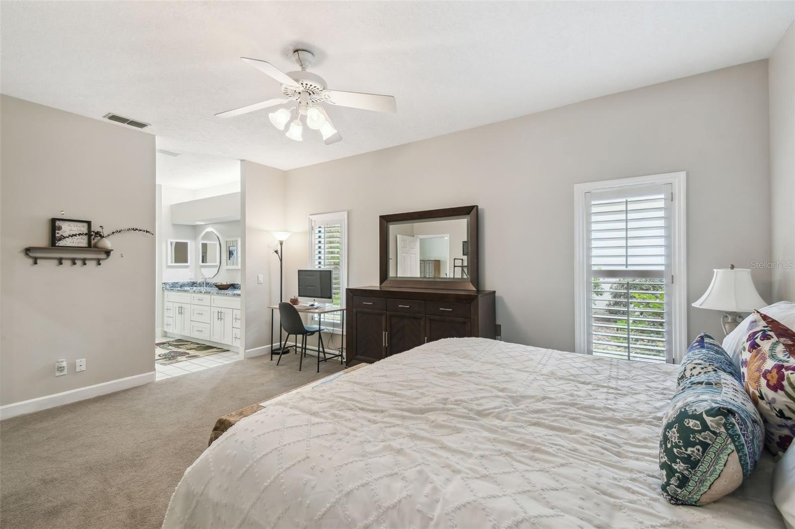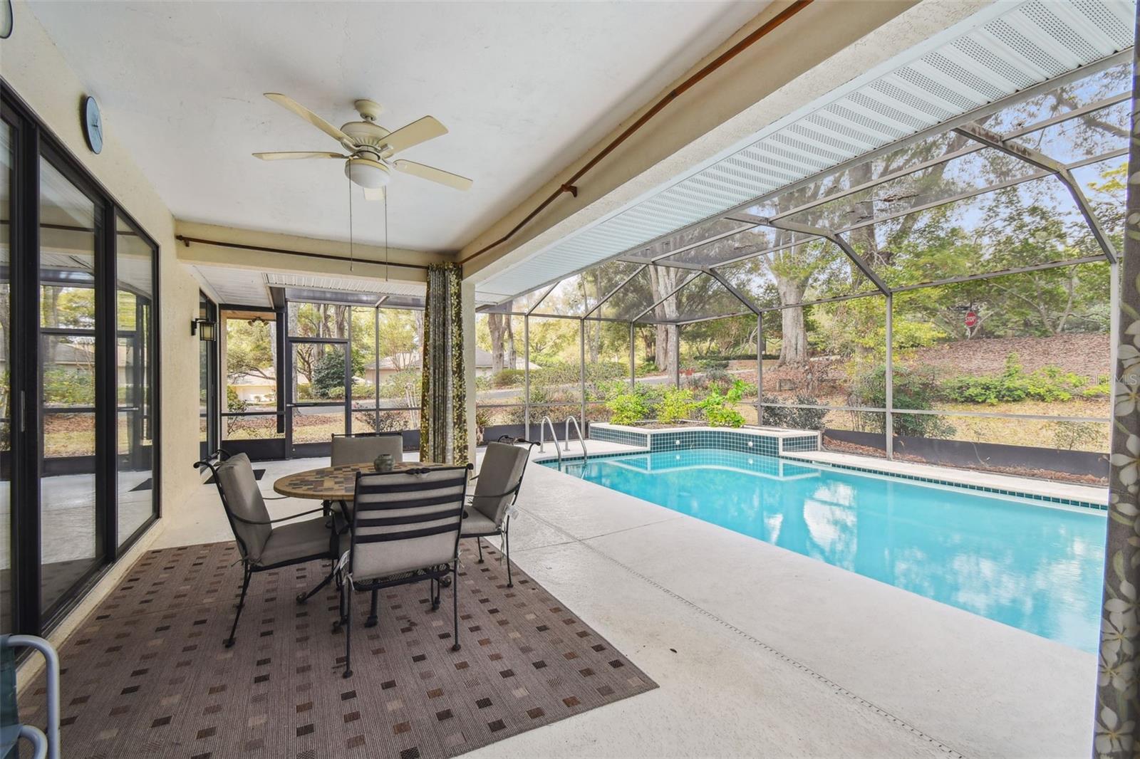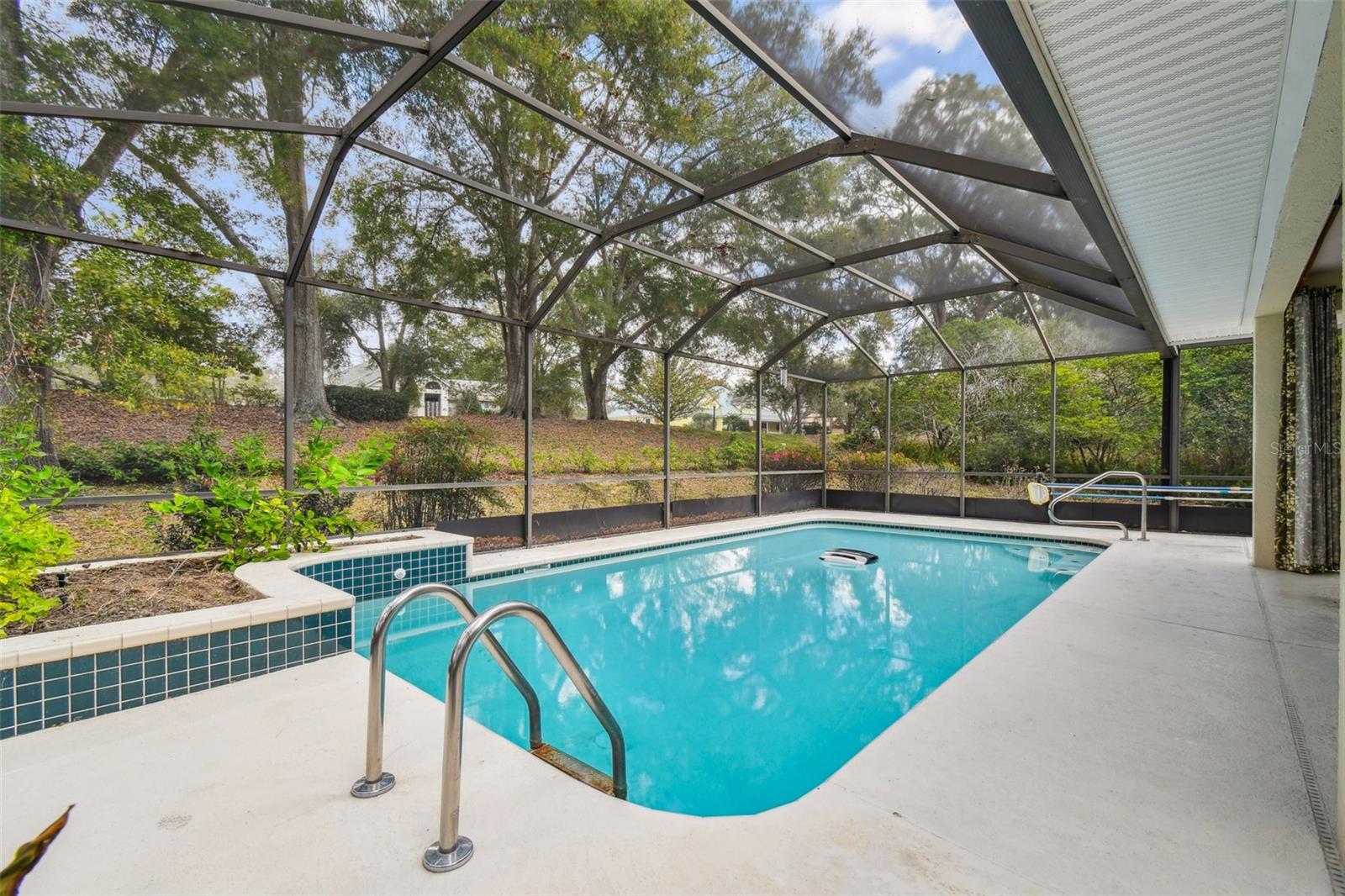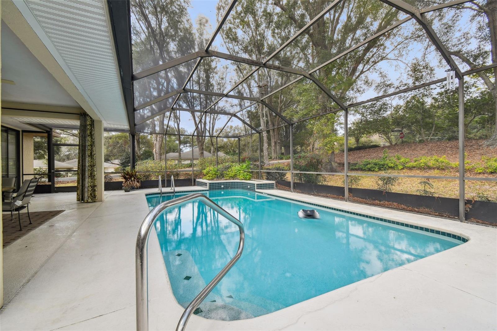 Welcome to this beautiful home located in the desirable golf community of Black Diamond Ranch in Lecanto, Florida. Situated on a quiet cul-de-sac, this charming 2-bedroom, 2-bathroom home offers 1,684 square feet of living space. As you approach, you'll be captivated by the large driveway leading to a split, side-facing 2-car garage. Upon entering, you're greeted by an open floor plan with abundant natural light and soaring vaulted ceilings, creating a bright and airy atmosphere. The kitchen is a true retreat, featuring solid wood cabinets, stainless steel appliances, and a center island that opens into the spacious living room. The living room boasts a large sliding glass door that leads to your backyard lanai, offering the perfect indoor/outdoor living experience. The home is thoughtfully designed with two primary bedrooms, each with its own en suite bathroom. One of the bathrooms includes a large tub, while both feature walk-in showers. Outside, the lanai offers your own private inground pool, perfect for relaxation and entertaining. The backyard is both spacious and private, providing an ideal retreat. Don't miss the opportunity to call this exceptional home your own in this exclusive community.