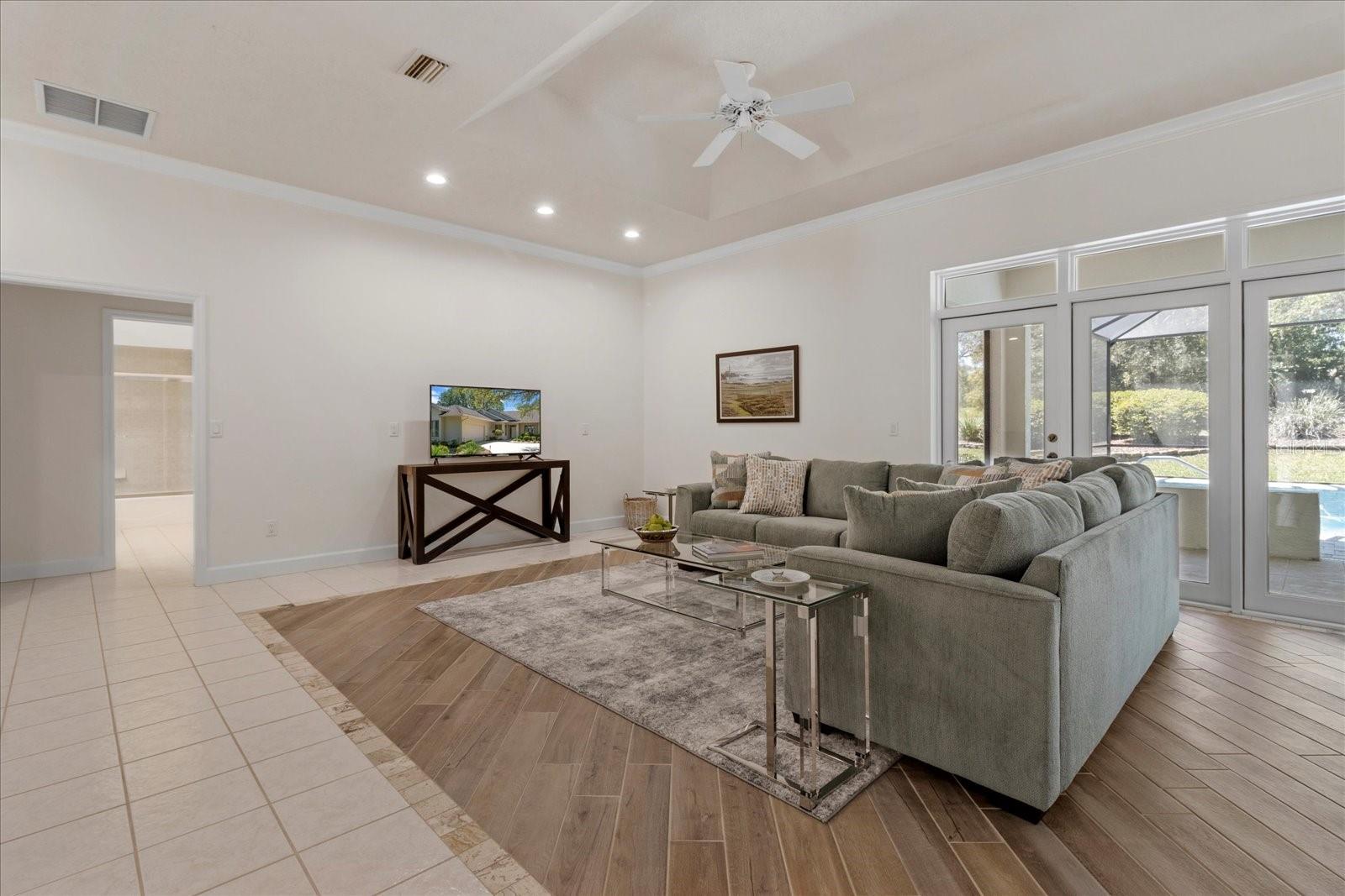 Welcome to this beautifully renovated residence nestled within the exclusive, gated golf community of Black Diamond Ranch. Perfectly positioned along the recently updated Ranch Course, this 3-bedroom, 2.5-bathroom home offers 2,546 sq ft of refined living space with breathtaking views of the 9th hole. Step inside to a bright, open floor plan bathed in natural light and enhanced with modern finishes throughout. The heart of the home opens seamlessly to a brand-new saltwater pool—the perfect setting for relaxing or entertaining while enjoying the serene golf course backdrop. The kitchen features all-new stainless steel appliances, granite countertops, and custom cabinetry. A bonus room provides flexible space—ideal for a home office or gym. Additional highlights include: All New HVAC system, Water heater ,New washer and dryer , Roof replaced in 2011,Two spacious guest bedrooms with an elegantly updated guest bath,A large laundry room, cozy gas fireplace, and tasteful modern touches throughout,Furniture is negotiable, offering a truly turn-key option. Black Diamond Ranch boasts 45 holes of Tom Fazio-designed championship golf, delivering an unparalleled lifestyle for golf enthusiasts. Beyond the greens, enjoy the peace of mind and exclusivity of this luxury community nestled in Florida’s natural beauty. This is a rare opportunity to own a fully renovated pool home in one of Florida’s premier golf destinations. Be prepared to be captivated.