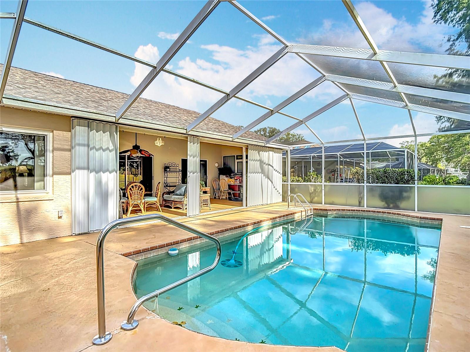 Imagine stepping out back to enjoy your morning coffee overlooking the pool with stunning views of a spacious green pasture where cows love to roam and to even come to the gate to be fed. This move-in ready 3 bedroom, 2 bath + office (easy 4th bedroom) and a diamond brite pool home features a double door entry that leads to the spacious living room with cathedral ceilings and sliding doors to the lanai. The eat-in kitchen offers ample space that is perfect for family gatherings and features Corian counters, tile backsplash, newer stainless-steel appliances, lots of cabinet space, a closet pantry and beautiful views overlooking the pool and pasture. The expansive master en-suite offers a walk-in closet, sliding doors to lanai, and leads to the master bath with dual vanities, make-up vanity and a tile shower. The other 2 bedrooms are also spacious in size (one with a walk-in closet) and share the 2nd bathroom. The dedicated laundry room includes the washer, dryer, utility sink and extra cabinets. The oversized 2 car screen garage has a pull-down attic, cabinets on both sides for extra storage, and a brand-new water heater. Other amazing features include Roof 2021, AC 2019, Shed 2017, newer exterior paint, newer windows throughout, newer pool screens, pool pump 2021, alarm system, and hurricane shutters. For outdoor enthusiasts, Crystal Oaks is a dream. Located just minutes to the Suncoast Parkway. Conveniently located close to the famous Crystal River, home of the world-renowned Manatee Migration and scallop season, (which begins every summer on July 1st), waterfront dining and lots of shopping. Citrus County is known for its crystal-clear springs and rivers. The Rainbow River, Three Sister Springs and the Homosassa River are all well known for swimming, kayaking, boating and some of the best fishing in Florida. No HOA, but you can opt for a social membership through the Crystal Oaks Civic Association. Dive into the community pool, play billiards, or challenge friends to a tennis match. RV & Boat Storage also available.