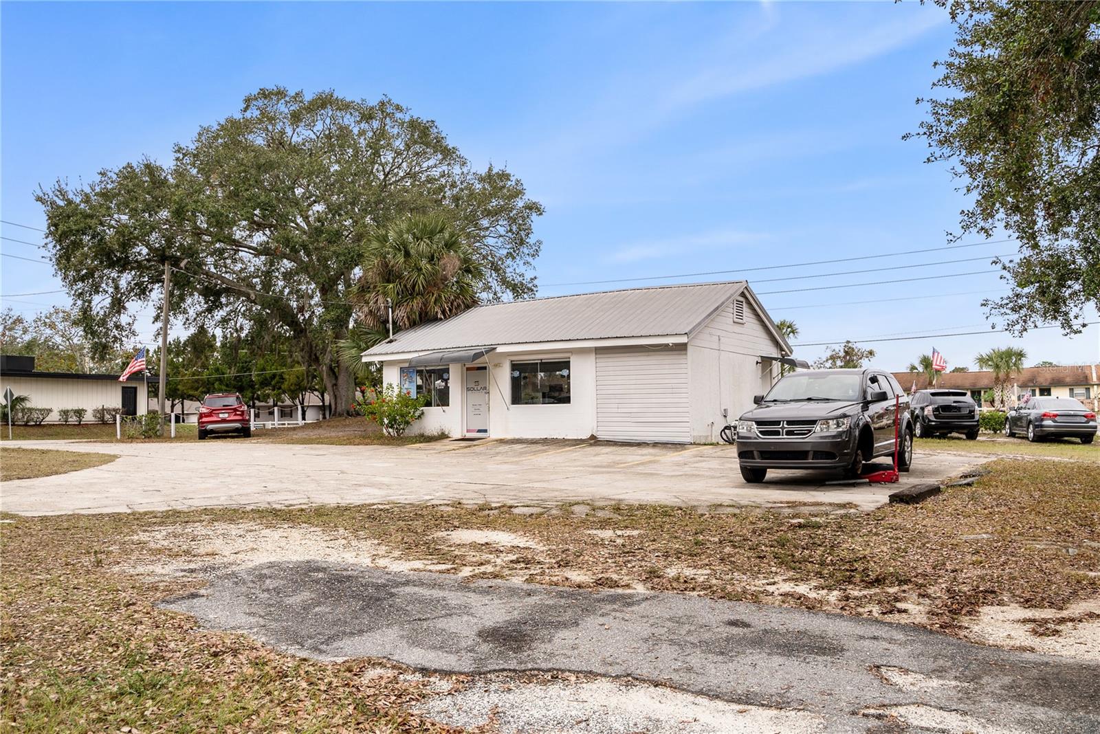 This property is a prime location just off of US 27 in Leesburg. Note there are 2 parcels being sold together. The adjoining parcel at 1226 Penn St. and 1421 Griffin Rd. Total combined acreage is 2.73. Both parcels are C-3 zoning. Griffin has two entrances and has high visibility. The 660 sq ft building contains a restroom, break room or storage space, and main retail space with large windows all under air. It has a perimeter fence and chain link fence around the lot. Plenty of parking space or room to build here. Penn is currently operating as an auto mechanic repair shop. It sits on 2 acres fully fenced in chain link and the block 1,364 sq ft building contains 3 bays with metal roll-up doors, 2 hydraulic lifts, an office space, handicap restroom, and 2 storage areas. The metal roof and expansive (21x76) awning provide shade and protection from weather elements. The opportunity here is to develop the existing spaces or knock down and build fresh. Come see the possibilities and make it yours.