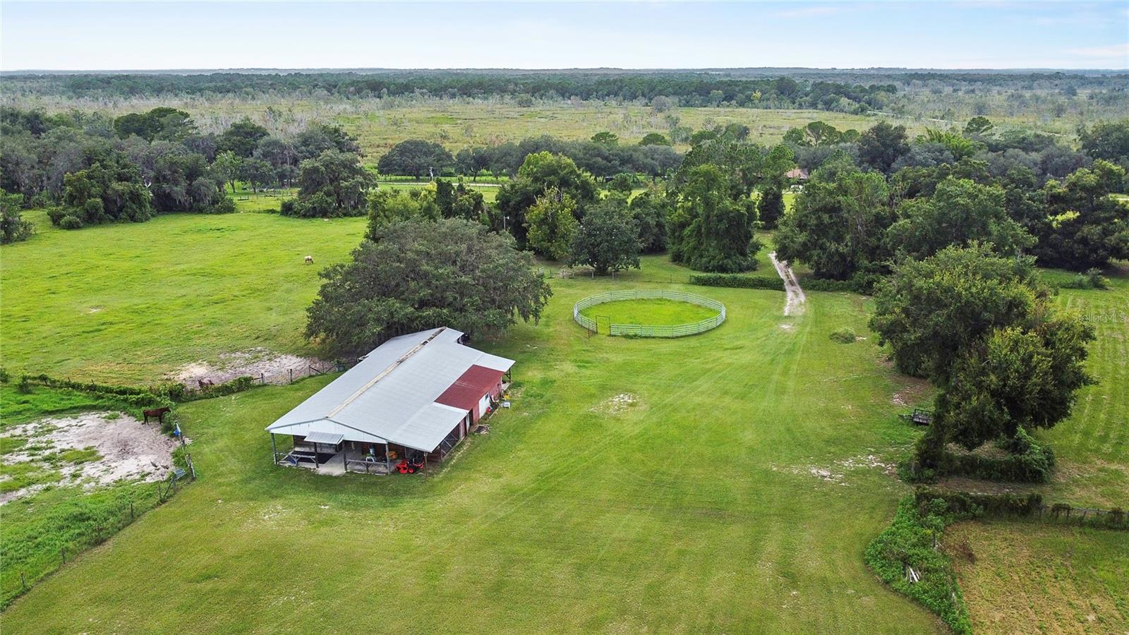 Welcome to 12 Oaks Ranch, a stunning 22-acre retreat nestled off the tranquil Emeralda Island Rd in Leesburg, FL, near Ocala. This exceptional property seamlessly combines functionality with natural beauty, making it a perfect haven for equestrian enthusiasts and country living at it's best. At the heart of this picturesque estate is a grand 44 ft by 90 ft barn, meticulously designed with 8 spacious stalls, including 2 foaling stalls, all featuring clay bases and rubber mats for comfort and durability. The barn also includes a wash room, tack room, and a hay room with charming wood floors, plus a generous entertainment area ideal for gatherings and relaxation. For equestrian needs, the property boasts a riding ring, and the barn is fully equipped with water and electricity. The property is well-prepared for development, with a 3-inch well, septic system, and drain field already in place, and impact fees paid, ensuring a smooth transition for your plans. The existing mobile home will be removed before closing, offering you a pristine canvas to build your dream home or continue developing as you envision Immerse yourself in breathtaking sunsets and the serene atmosphere of country living right on your own land. With its ideal location and endless potential, 12 Oaks Ranch is a rare opportunity to own a slice of Florida's enchanting countryside. Seize this chance to create your ideal lifestyle in this beautiful and versatile property!