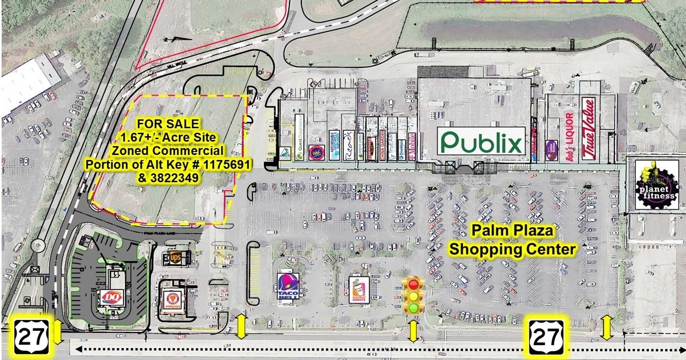 Offering is for a Commercial 1.67+/- Acre Out-Parcel that adjoins the Publix anchored shopping center, Palm Plaza, in the City of Leesburg, Zoned C-3, Utilities Available, 77% impervious. Offsite water retention is in place. Also available is an 8" Sewer line, 8" or 10" Water line and City of Leesburg Gas. Located within the City of Leesburg in the Heart of Central Florida about an hour to Orlando or Ocala, minutes to The Villages, I-75, Florida's Turnpike & US Hwy 441. Site is a portion of Lake County Alt Key # 1175691 & 3822349 and will be divided at closing. Bring your plans & lets get started. All information provided herein is believed to be accurate and correct but is not guaranteed or warranted and subject to change without notice.