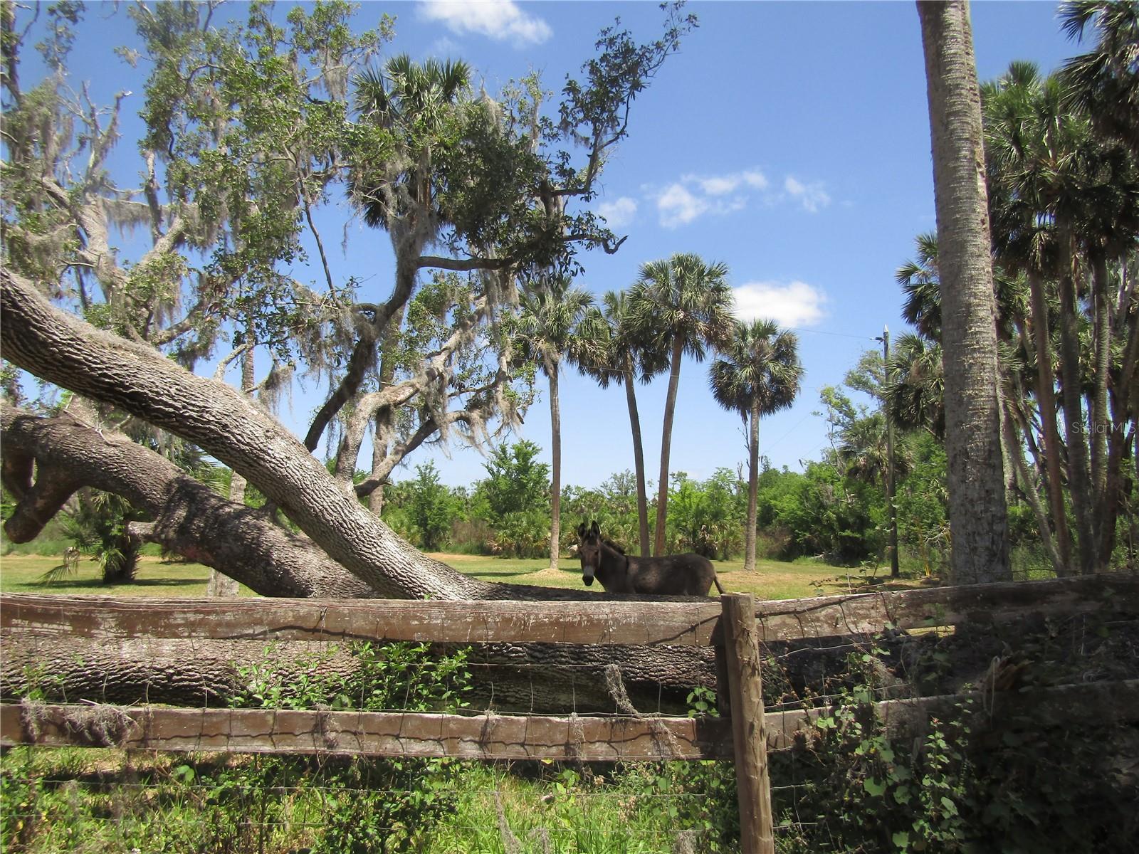 31.9 Acres. 15 high and dry. There is a home on the property it needs lots of TLC. The owner says there have seen deer, turkeys, and pigs on the property. The Home at the end of the road is not part of the property. The only neighbor in site lives on an acre that was cut out of the property a few years ago. This property gives you that out in the country feel but isn't far from the Lake Square Mall and other shopping facilities. Donkey does not convey with property