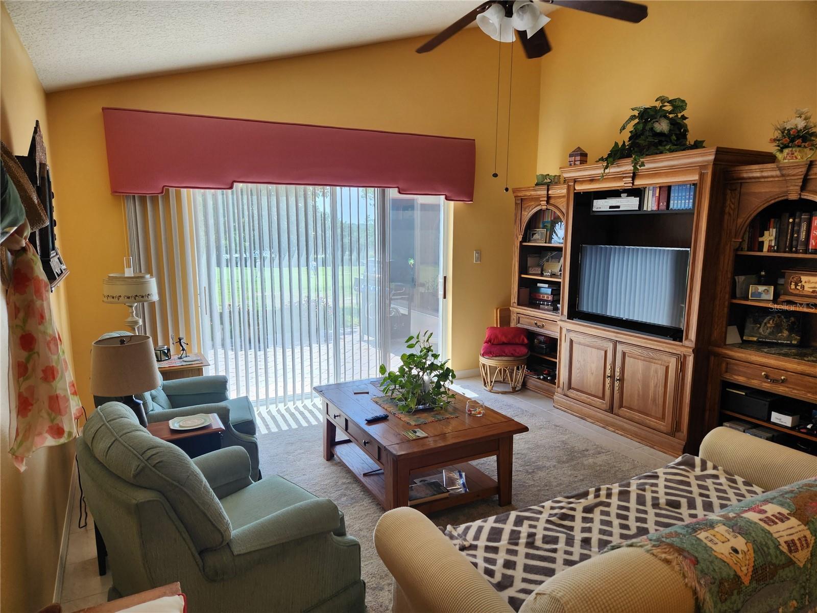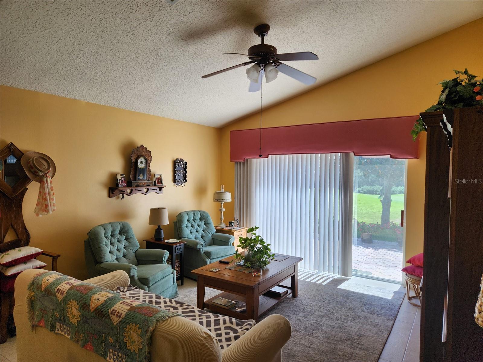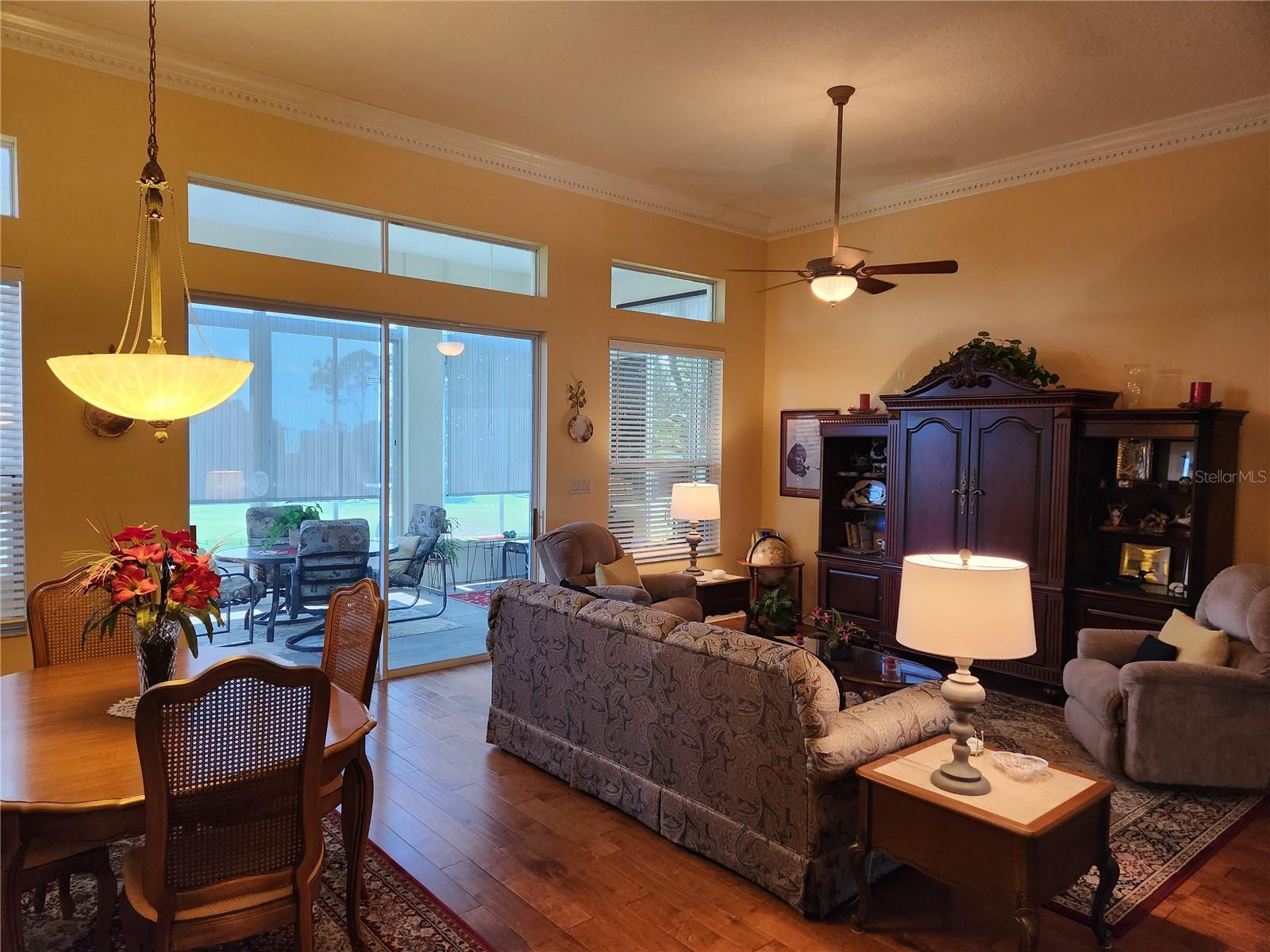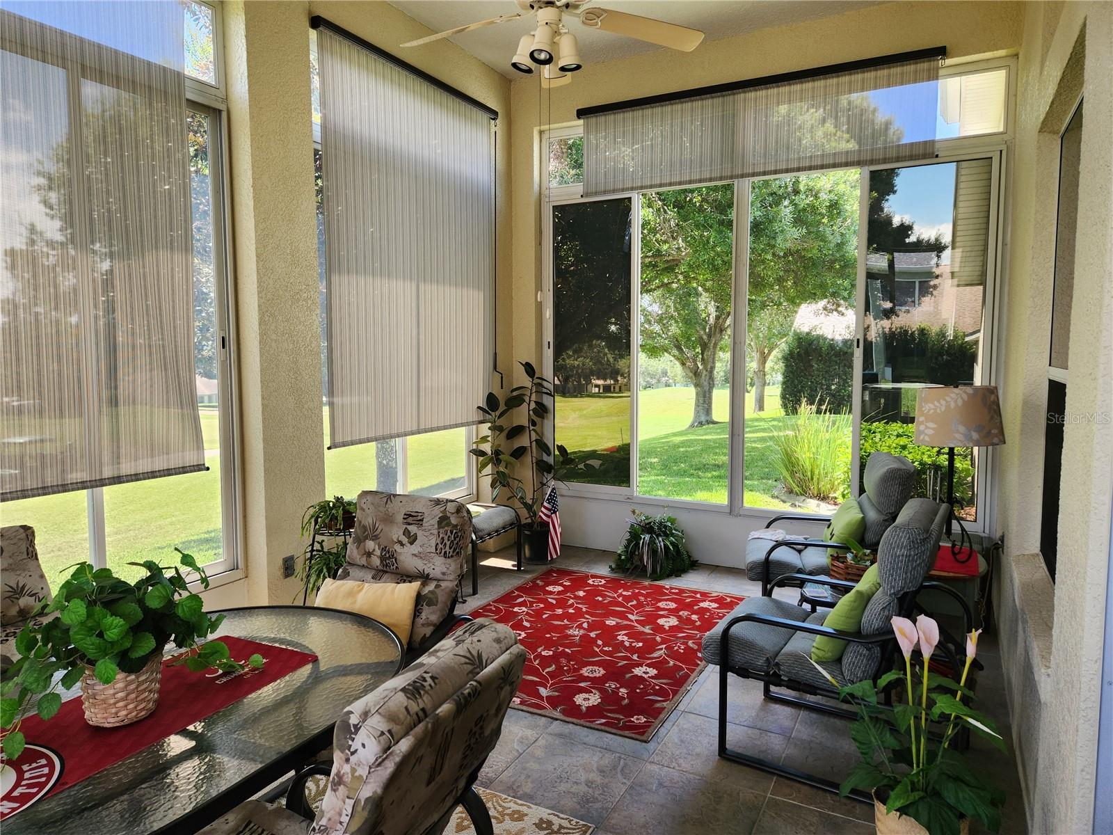 Golf Course Living on 10 Green of Cranes Roost! Enjoy the view from your fully enclosed, spacious Sunroom! This large 2586 square foot single-owner home overlooking the 10th Green of Cranes Roost in the Plantation @ Leesburg is now for sale. In addition to the large living room, dining room, family room, and expansive kitchen, there are 2 master bedroom suites, an office/study, and a wet bar adjacent to the dining room. The entry, central foyer, office, living room, and dining room have 12-foot ceilings. The kitchen area and bedroom ceilings are vaulted, running 8 to 12 feet, which emphasizes the room's spaciousness. A lovely, east-facing 27 x 11 sunroom, which has oversized, tall sliding glass windows on the 3 exterior walls, just might become your favorite spot to sit and watch the golfers on the 10th Green. The home's A.C. was replaced in 2018, the roof in 2025. Additionally, there are 31 solar panels on the roof, which greatly reduce the cost of electricity. The flooring in the family room/kitchen area and the 2 bathrooms is ceramic tile, whereas the dining room, living room, study, master bedroom suite 1, its closet and the entry hall closet flooring is engineered hardwood. Please compare, the view, location, layout, savings in electricity, and amenities this beautiful home offers compared to many on the market that are thrown together with limited options and built as quickly as possible, and you will see the value this home will give you for your next chapter of your life.