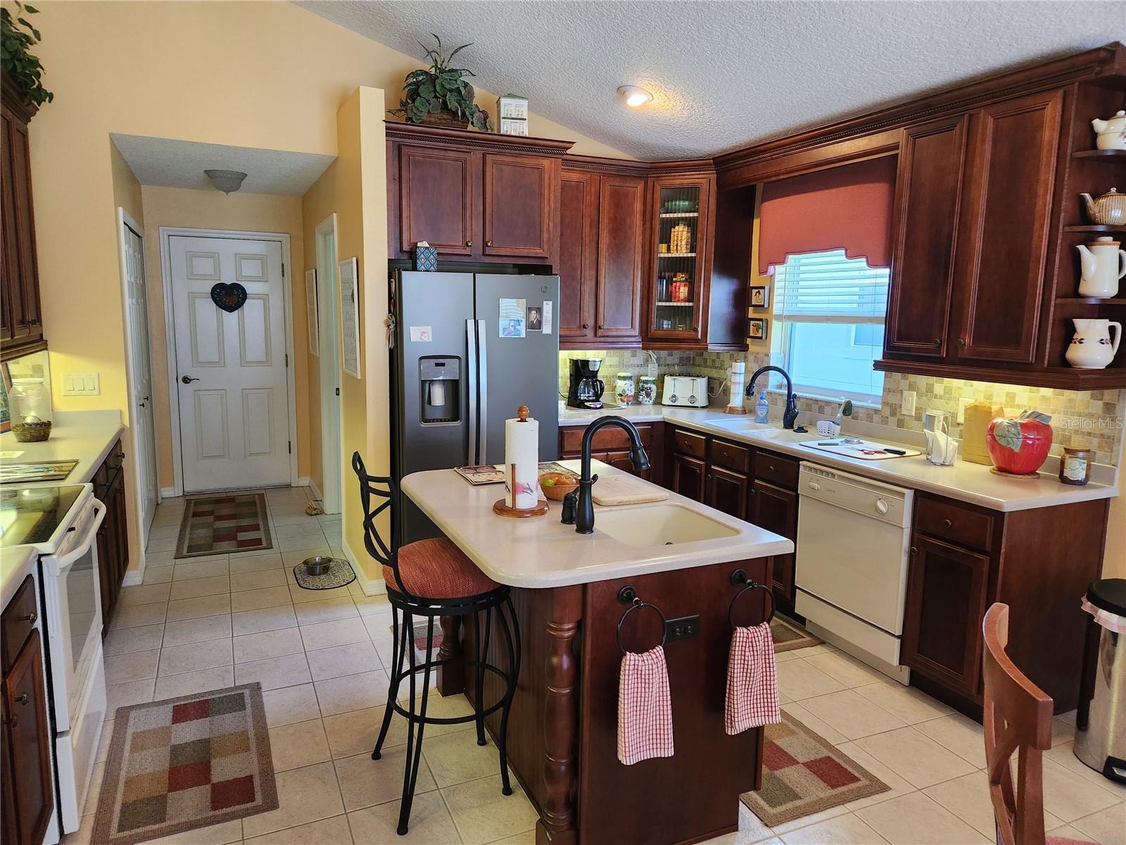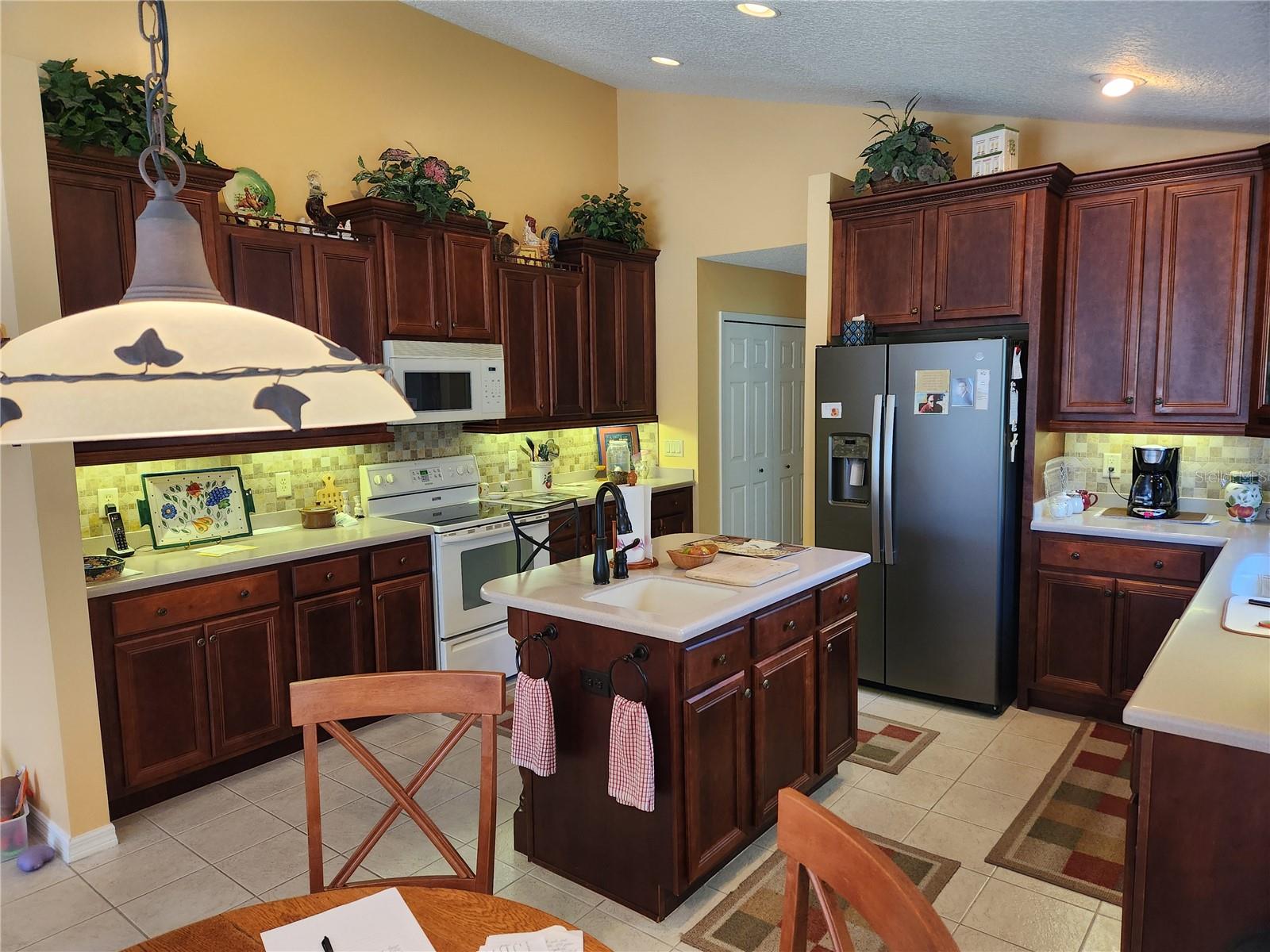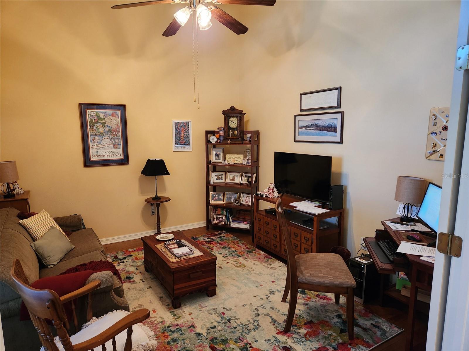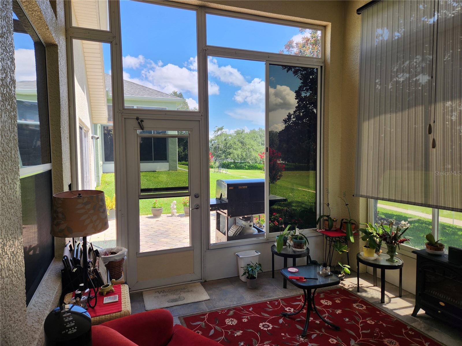Golf Course Living on 10 Green of Cranes Roost! Enjoy the view from your fully enclosed, spacious Sunroom! This large 2586 square foot single-owner home overlooking the 10th Green of Cranes Roost in the Plantation @ Leesburg is now for sale. In addition to the large living room, dining room, family room, and expansive kitchen, there are 2 master bedroom suites, an office/study, and a wet bar adjacent to the dining room. The entry, central foyer, office, living room, and dining room have 12-foot ceilings. The kitchen area and bedroom ceilings are vaulted, running 8 to 12 feet, which emphasizes the room's spaciousness. A lovely, east-facing 27 x 11 sunroom, which has oversized, tall sliding glass windows on the 3 exterior walls, just might become your favorite spot to sit and watch the golfers on the 10th Green. The home's A.C. was replaced in 2018, the roof in 2025. Additionally, there are 31 solar panels on the roof, which greatly reduce the cost of electricity. The flooring in the family room/kitchen area and the 2 bathrooms is ceramic tile, whereas the dining room, living room, study, master bedroom suite 1, its closet and the entry hall closet flooring is engineered hardwood. Please compare, the view, location, layout, savings in electricity, and amenities this beautiful home offers compared to many on the market that are thrown together with limited options and built as quickly as possible, and you will see the value this home will give you for your next chapter of your life.