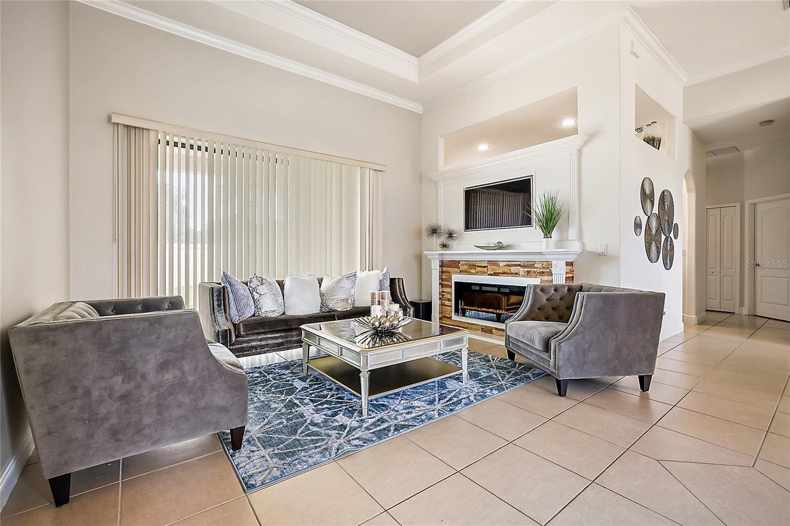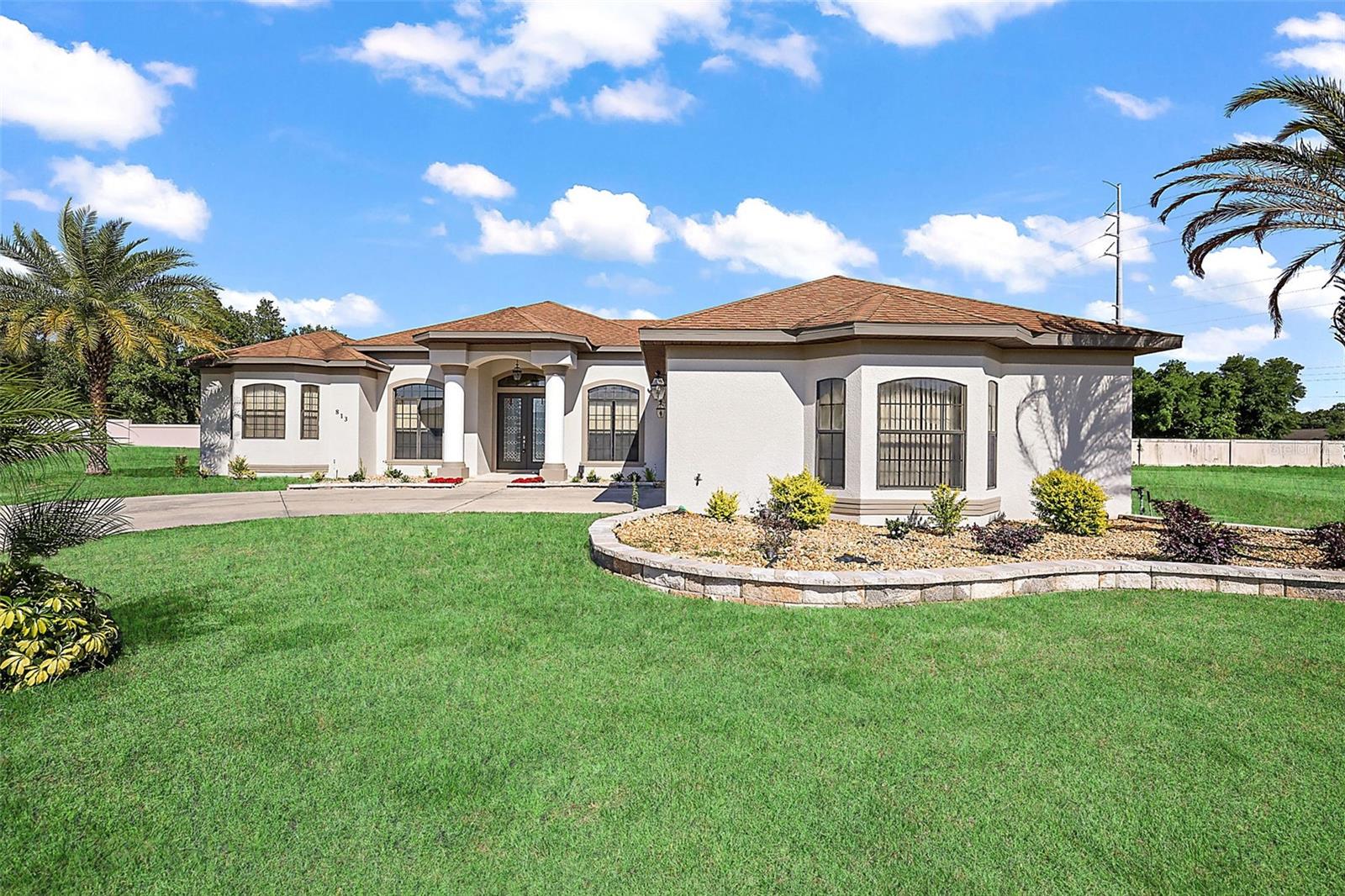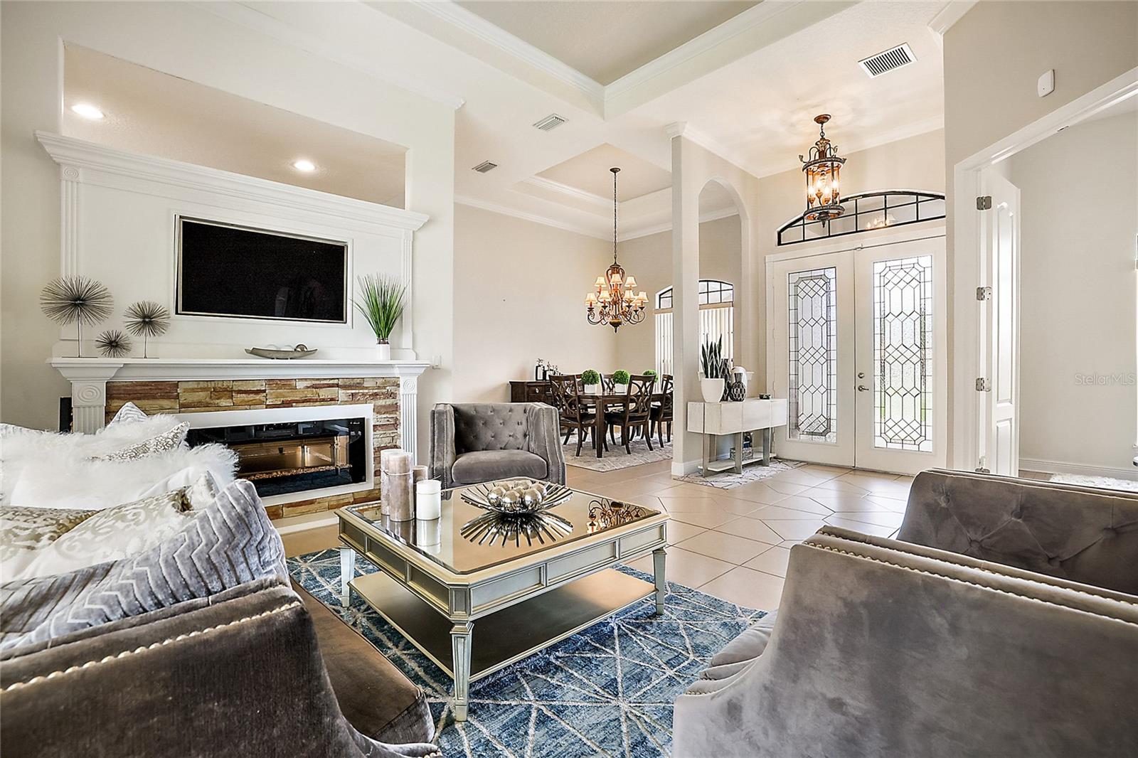 Gorgeous Four Bedroom HOME in the GATED community of Majestic Oaks! This beautiful community sits right on Lake Griffin with convenient access to the chain of lakes by way of your own community boat dock. Enjoy safety and security with a completely gated community. Sitting on just shy of a third of an acre, you arrive to a spacious front yard and gorgeous double entry doors. Once inside, you will appreciate the tasteful decor and functional floorplan. The Main living room offers sliding doors to the rear porch and a stunning electric fireplace. Entertaining is easy with a formal dining room and a dinette area as well as a spacious center island kitchen. You will love cooking here with a gas stove, granite countertops, a convenient wall oven, plenty of cabinet space, tile backsplash, and a ton of workspace. Opening directly to the Family room and dinette area, this kitchen makes a great gathering space! Your Master bedroom features a spacious en-suite bathroom with a garden tub, separate his/her sinks and plenty of closet space. You will appreciate the bonus sitting area in the master that could be used as office space or a cozy reading nook. Separated on the other wing of the house, the guest bedrooms share a separate bathroom with double sinks. You will also love the three-car spacious garage, inside laundry area, and back patio. Enjoy peace of mind with a 2023 AC unit that comes with a 10 year warranty. This home has it all and with close proximity to the growing downtown Leesburg area with restaurants and shopping.