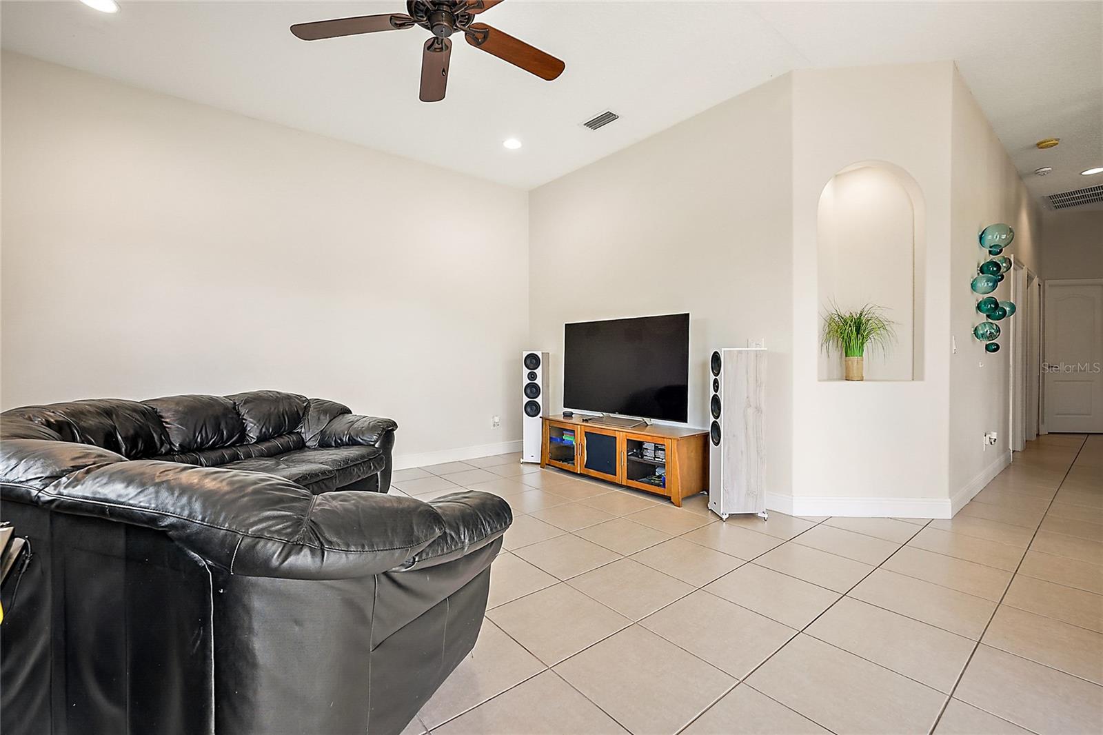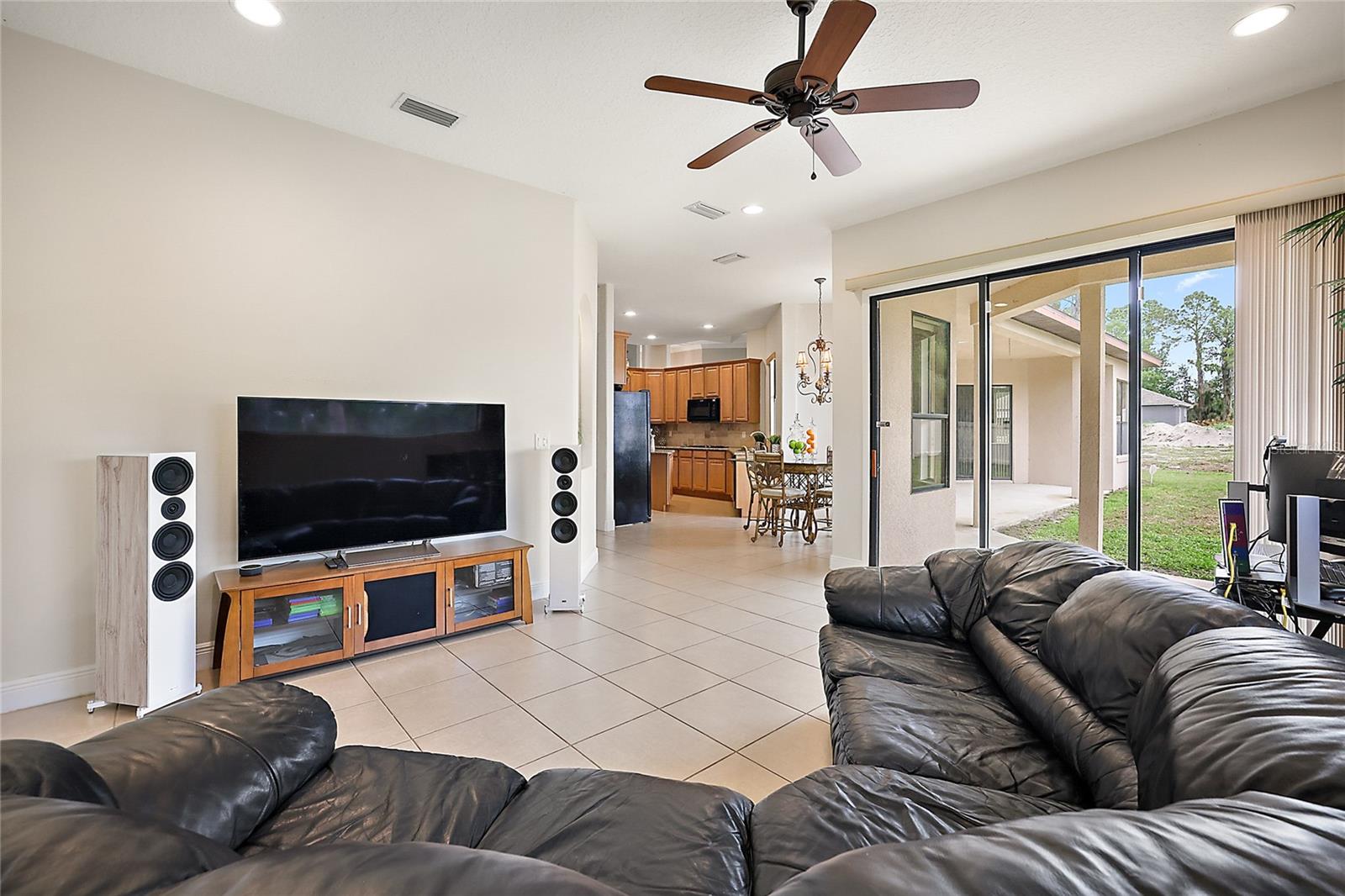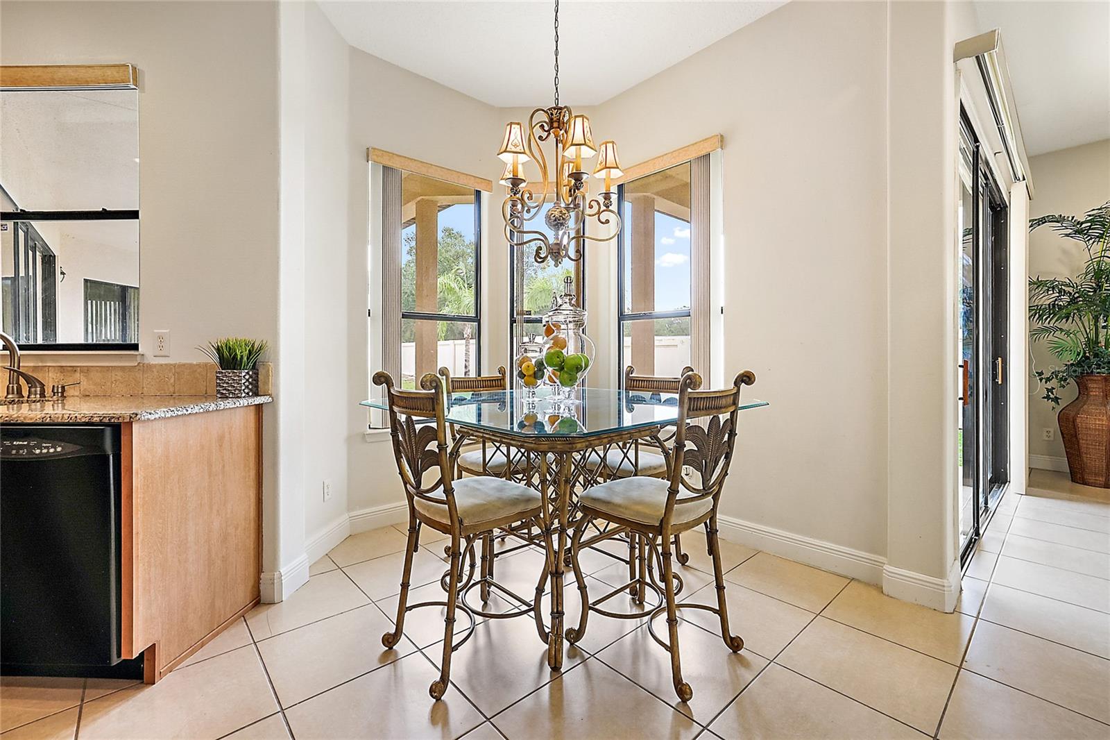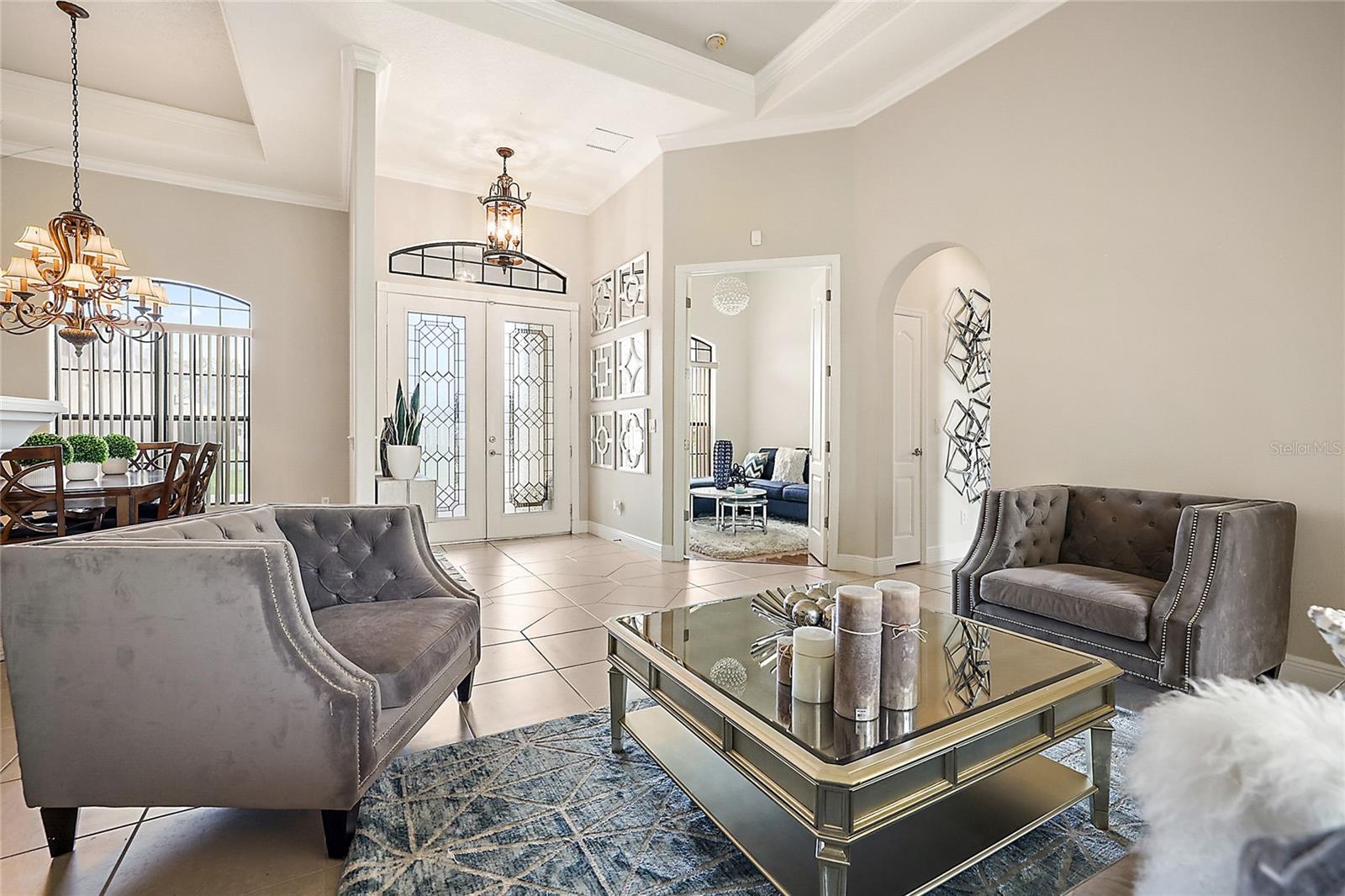 Gorgeous Four Bedroom HOME in the GATED community of Majestic Oaks! This beautiful community sits right on Lake Griffin with convenient access to the chain of lakes by way of your own community boat dock. Enjoy safety and security with a completely gated community. Sitting on just shy of a third of an acre, you arrive to a spacious front yard and gorgeous double entry doors. Once inside, you will appreciate the tasteful decor and functional floorplan. The Main living room offers sliding doors to the rear porch and a stunning electric fireplace. Entertaining is easy with a formal dining room and a dinette area as well as a spacious center island kitchen. You will love cooking here with a gas stove, granite countertops, a convenient wall oven, plenty of cabinet space, tile backsplash, and a ton of workspace. Opening directly to the Family room and dinette area, this kitchen makes a great gathering space! Your Master bedroom features a spacious en-suite bathroom with a garden tub, separate his/her sinks and plenty of closet space. You will appreciate the bonus sitting area in the master that could be used as office space or a cozy reading nook. Separated on the other wing of the house, the guest bedrooms share a separate bathroom with double sinks. You will also love the three-car spacious garage, inside laundry area, and back patio. Enjoy peace of mind with a 2023 AC unit that comes with a 10 year warranty. This home has it all and with close proximity to the growing downtown Leesburg area with restaurants and shopping.