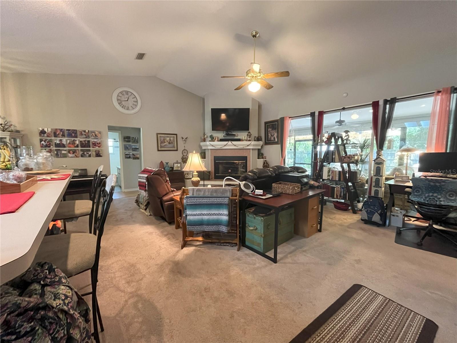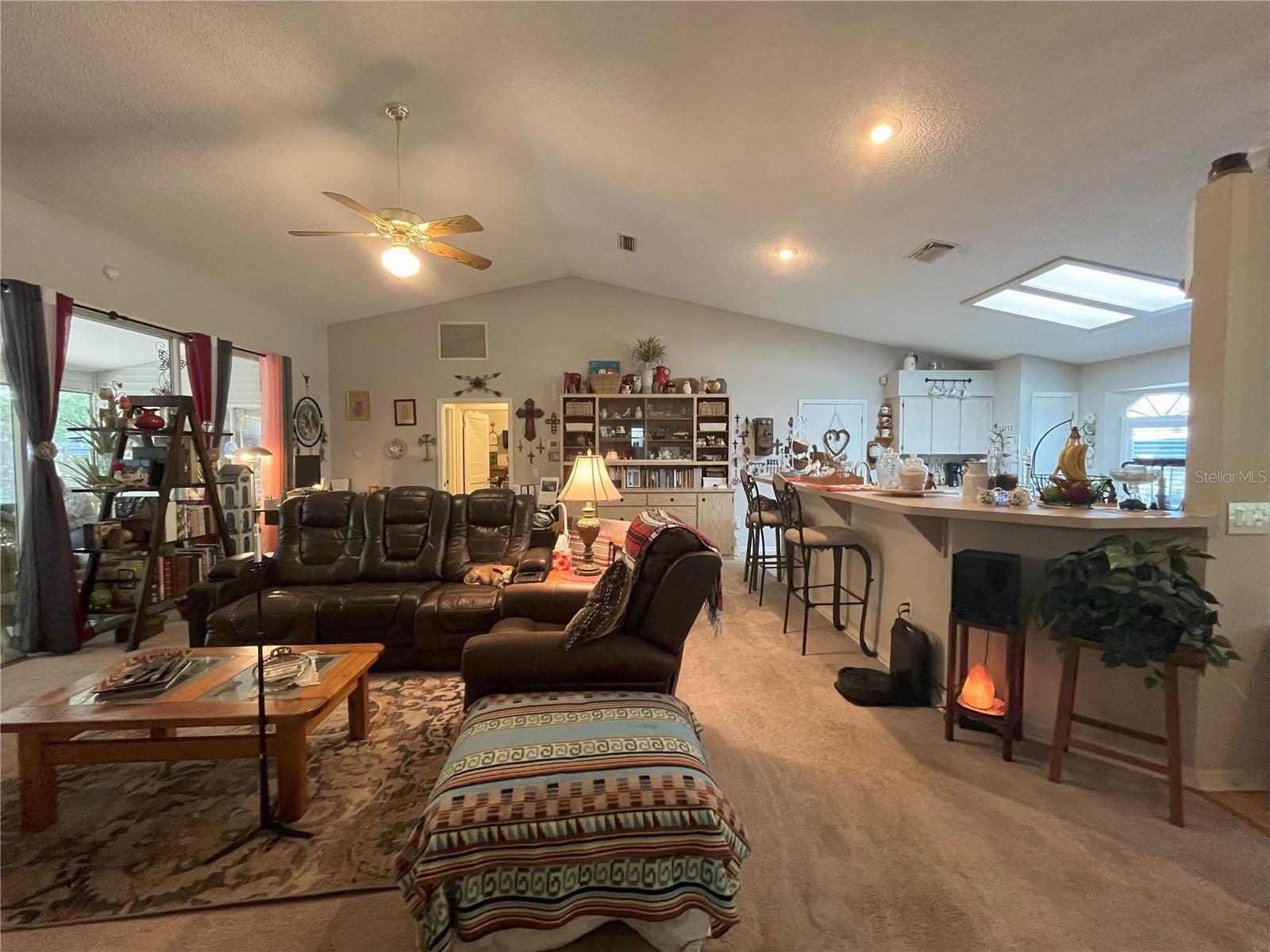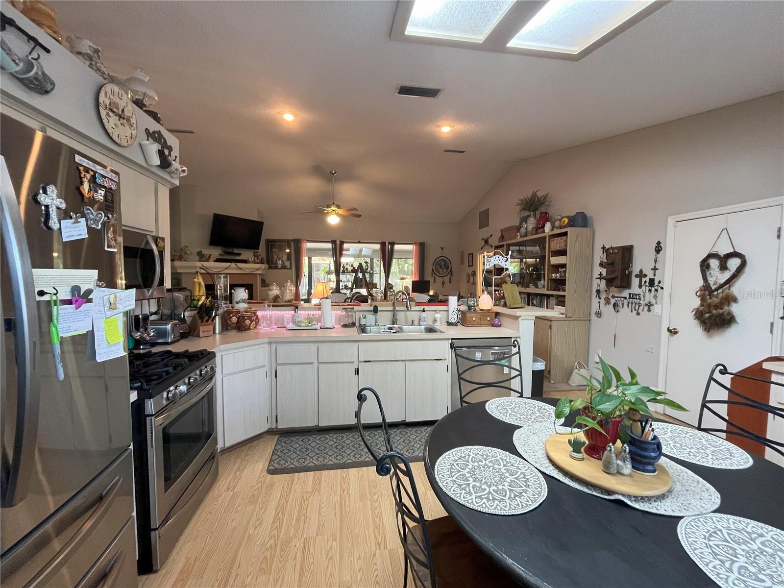 DON'T MISS THIS BEAUTIFUL HOME IN RIVERSIDE RESIDENTIAL SUBDIVISION, a Waterfront Community with private boat ramp onto Haines Creek accessing the Harris Chain of Lakes. This is the 3 BR 2 BA with 2 car garage and large, privacy fenced back yard for your outdoor fun that you have been waiting for! Entering the foyer you experience an inviting Great Room, with cathedral ceilings. The open living space is great for entertaining with stacking sliders to the screen lanai. Notice the spacious and modern kitchen design. Enjoy the beautiful sunrise views from the charming breakfast nook and bay window with Southeast exposure. The split floor plan affords homeowners and guests plenty of privacy. The Master Bedroom also has sliders to screen room and features en-suite bath with dual sinks, garden tub and walk-in shower. Guest side of home has two nice sized bedrooms with guest bath and tub/shower combination. Rear yard is like a walk in the park in old Florida. Bring your bird feeders and make new friends. Conveniently located to schools, shopping, restaurants, hospitals and marinas. What are you waiting for?