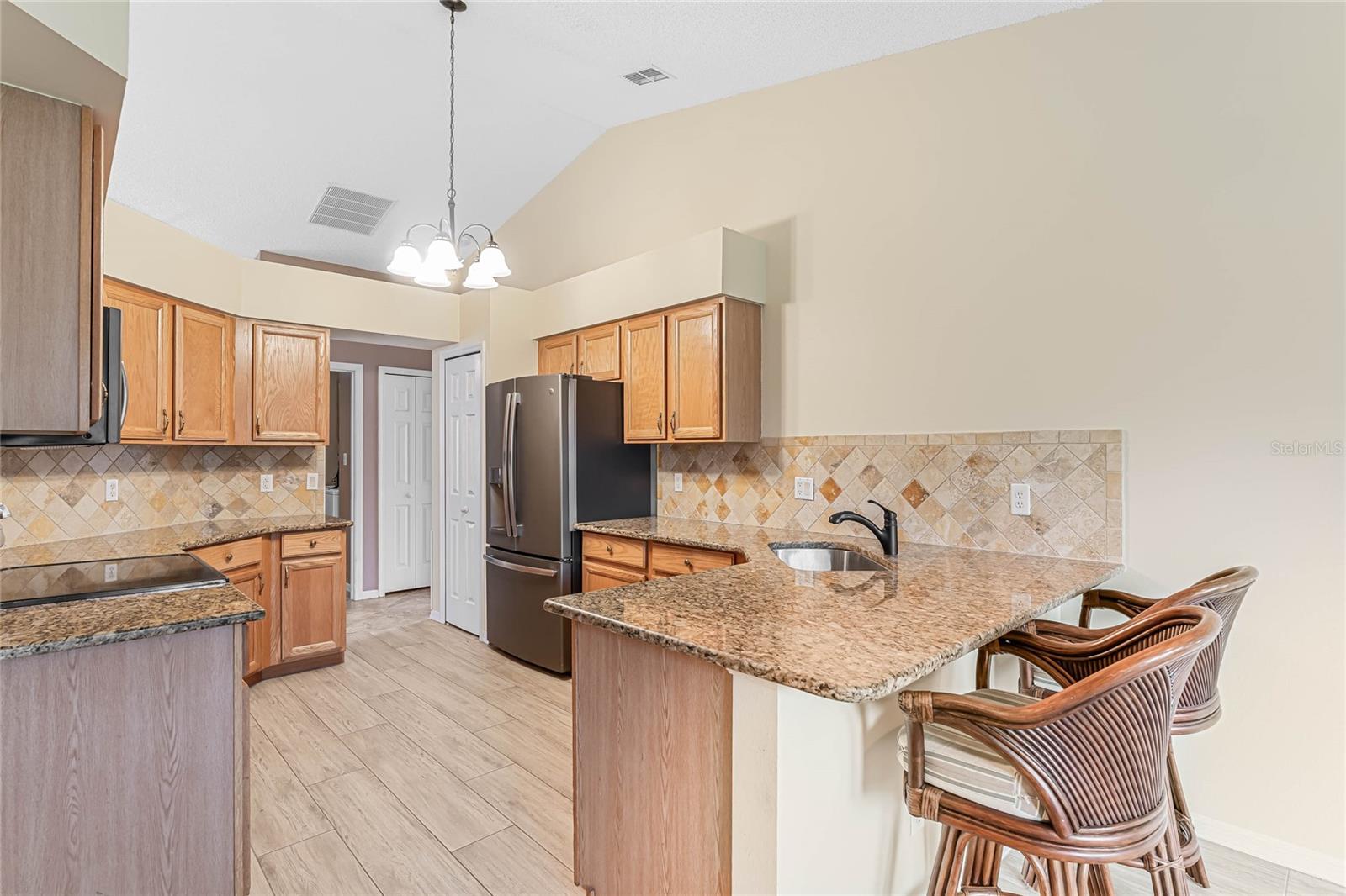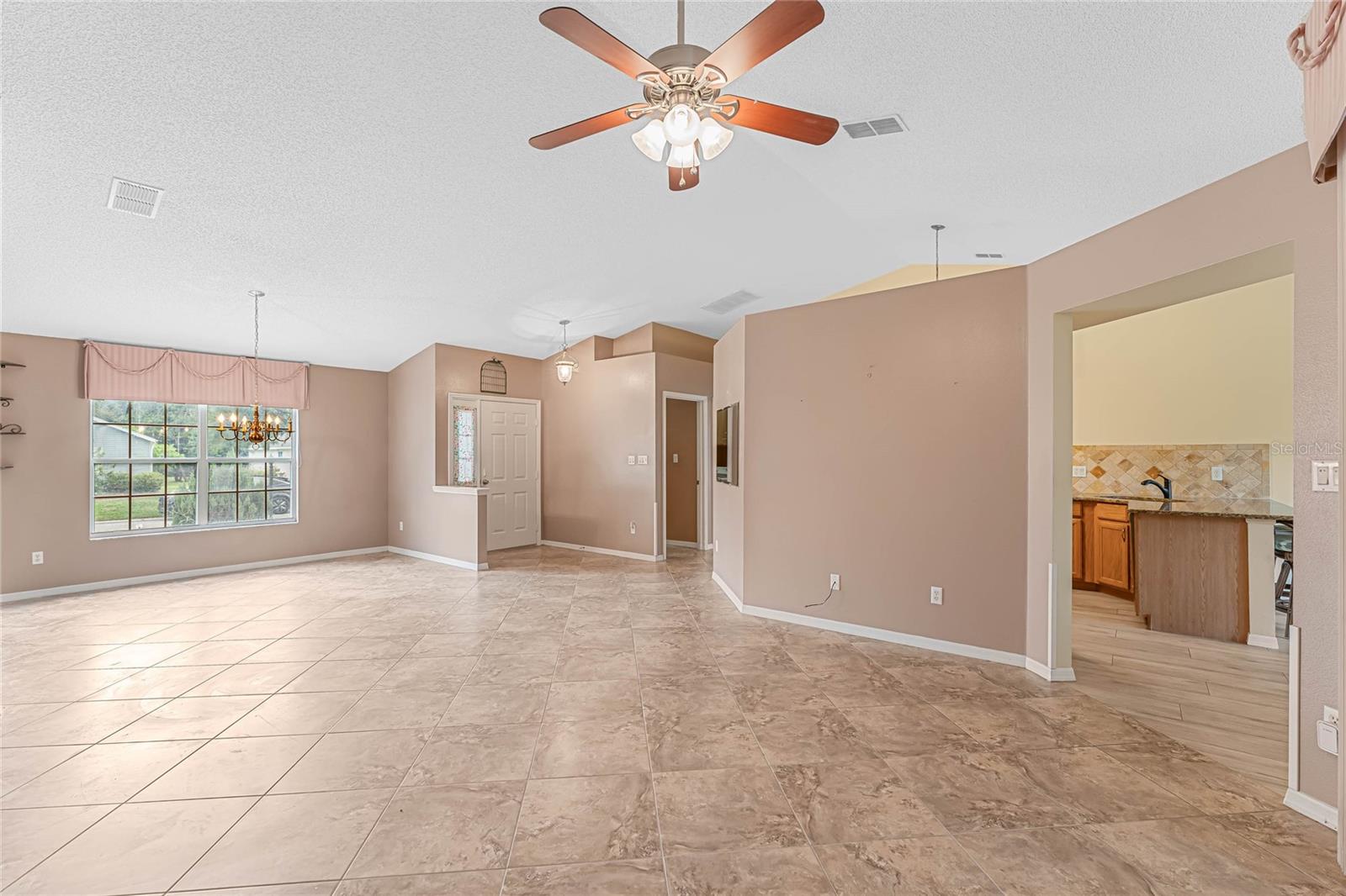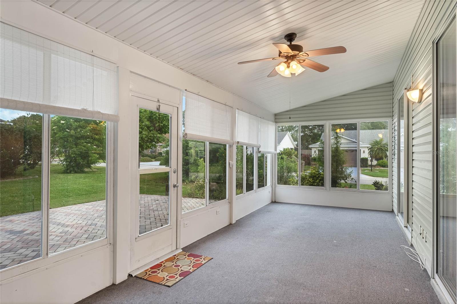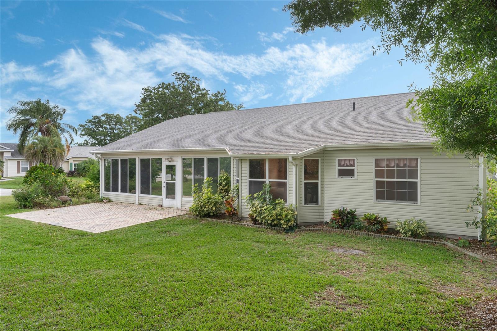 Welcome to your new home! Step inside and discover this exquisite 3-bedroom, 2-bathroom residence, nestled in the sought-after Plantation at Leesburg, an exclusive 55+ golf community. Situated on a spacious corner lot, this home boasts vaulted ceilings throughout, creating an inviting and luminous ambiance as you enter. The recently updated kitchen is a chef's dream, featuring top-of-the-line GE appliances, elegant Granite countertops, ample cabinet space, and a generously-sized dining area perfect for entertaining. Retreat to the master bedroom oasis, complete with dual vanities adorned with Granite countertops, a luxurious garden tub, and two walk-in closets for added convenience. Start your mornings by savoring a cup of coffee on the expansive enclosed lanai, which opens up to a paver patio, ideal for enjoying the Florida sunshine. This home has been impeccably maintained and boasts numerous upgrades! Roof installed in 2016, a state-of-the-art A/C system installed throughout the home in 2020, and water heater replaced in 2019. Pull into the spacious 2-car garage, featuring a motorized garage door screen, via the paver driveway. Indulge in the resort-style amenities offered by the Plantation at Leesburg, including two championship golf courses, three activity centers with over 100 activities, three sparkling pools, two fitness centers, and various recreational facilities such as tennis, pickleball, shuffleboard, and more. Whether you're interested in fishing, woodworking, or simply lounging in paradise, this community has something for everyone. Don't let this opportunity pass you by – make this your ultimate retirement retreat today!
