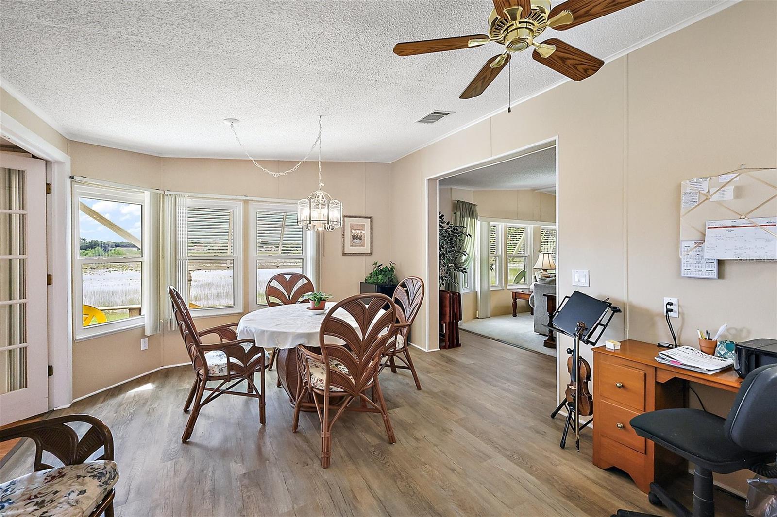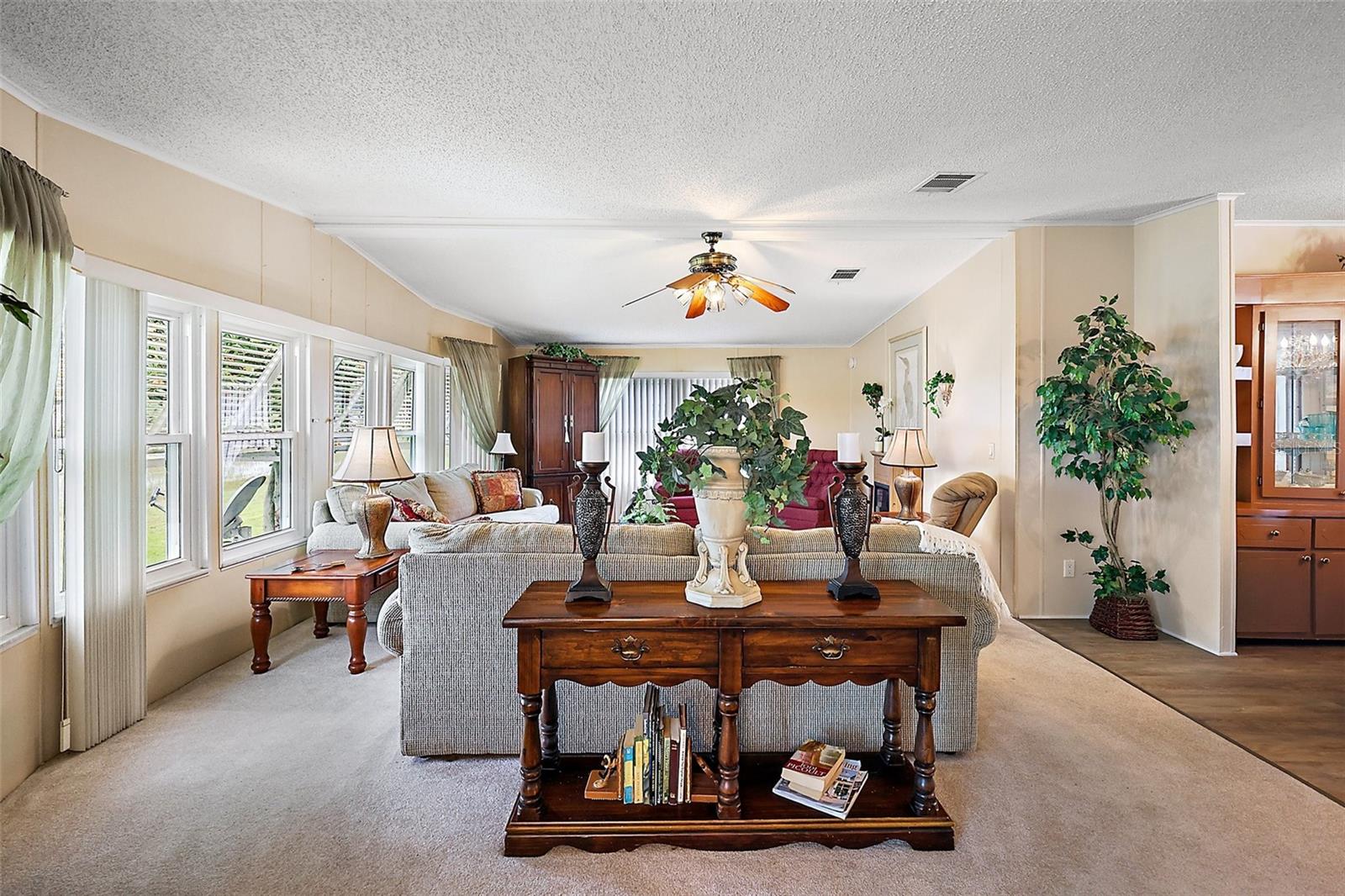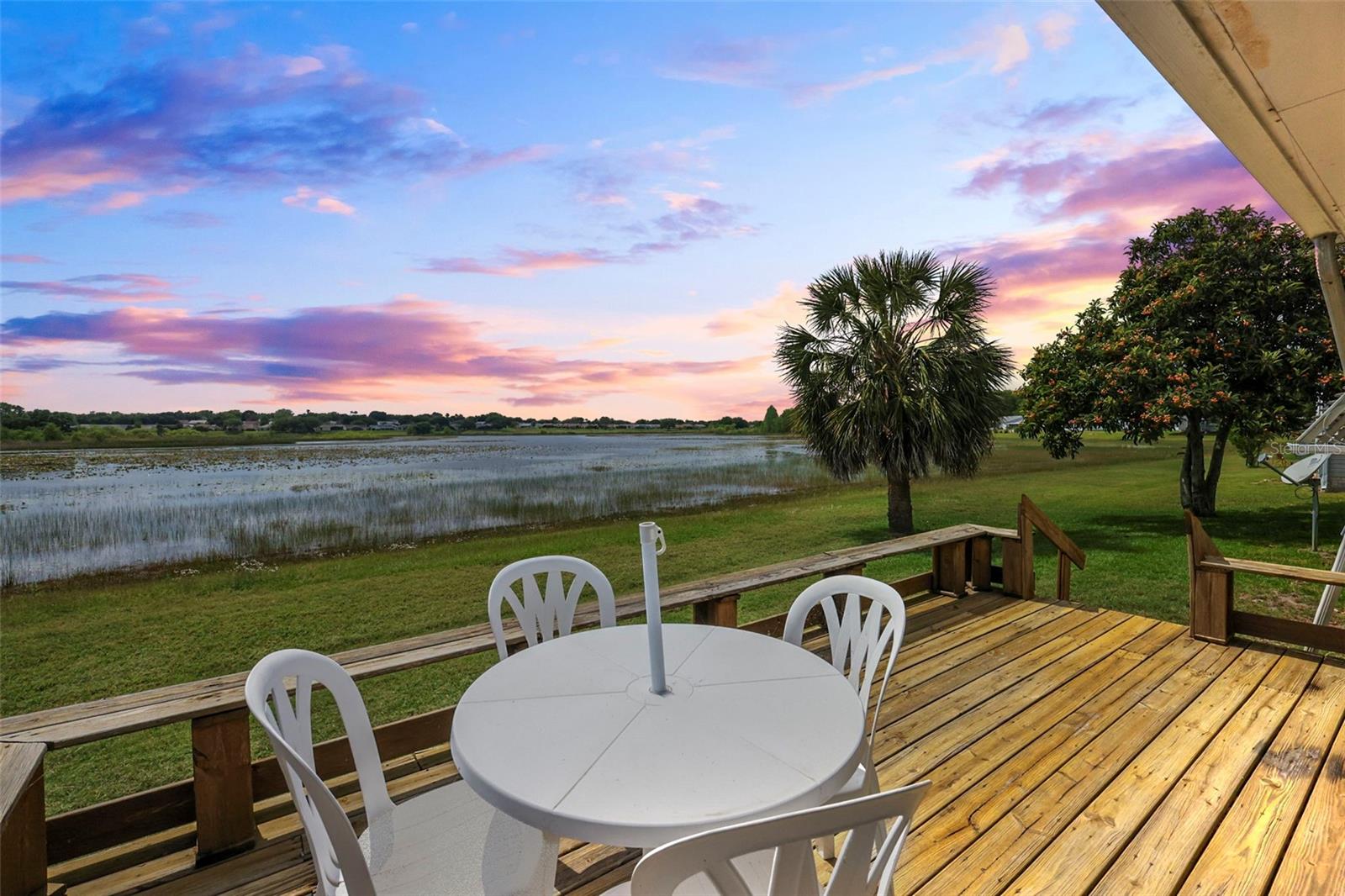 Indulge in the serene lifestyle of The Plantation at Leesburg's 55+ community with this updated waterfront manufactured home. This meticulously maintained 2-bedroom, 2-bathroom retreat boasts stunning sunset views and a tranquil lakefront setting. Kitchen has newer stainless appliances, cabinets and granite counters. Both bathrooms have been updated and new lighting throughout. With a garage for convenience, and a deck perfect for savoring the scenery, this home is an oasis of relaxation. Move-in ready and fully furnished, there's nothing left to do but settle in and embrace the beauty of lakeside living. Roof was update 2017, along with the hvac and new double pane windows. The Plantation at Leesburg is a a gated 55+ community that offers a great lifestyle and is an active community. It boasts 3 activity center, 3 pools with spas, 2 gyms, tennis and pickleballs courts, a driving range and 2 18 hole golf courses, along with many other amenities, clubs, etc.