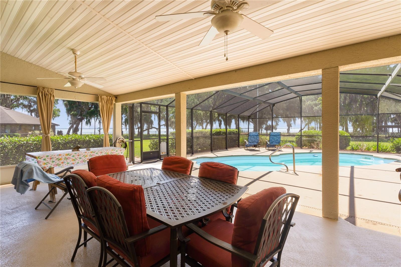 2 LOTS FOR THE PRICE OF ONE!!!!!! Indulge in the ultimate waterfront lifestyle at this fully fenced, remarkable home situated on a cul de sac home site on the tranquil shores of Lake Eustis, an integral part of the illustrious Lake Harris Chain of Lakes. From the moment you arrive, you're greeted by the allure of waterfront living, where every day brings new opportunities for relaxation, recreation, and rejuvenation. As the sun rises over the horizon, casting a golden glow across the water, you'll find yourself captivated by the natural beauty that surrounds you. Step out onto your expansive deck or patio, coffee in hand, and immerse yourself in the serenity of the morning. With unobstructed views stretching as far as the eye can see, each sunrise becomes a cherished moment to start your day on the right note. With an oversized garage, there's ample space to store all two vehicles, water toys, and outdoor gear, ensuring that every adventure is within reach. Plus, the additional home site presents a unique opportunity for expansion or investment, adding even more value to this already exceptional property. So many of the important upgrades have already been done like a newer roof and hvac system, new Renewal by Anderson windows throughout with plantation shutters on those beautiful new energy efficient windows. This isn't just about the views—it's about the lifestyle it affords. Boating enthusiasts will delight in the convenience of a private dock and lift, providing seamless access to the canal waters just steps from your door. Spend your days exploring the interconnected waterways of the Harris Chain, discovering hidden coves, and enjoying leisurely cruises beneath the warm Florida sun. But it's not just about the water—the outdoor amenities of this home are equally impressive. Lounge by the pool, soak up the sun on the deck, or host gatherings with friends and family against the backdrop of the shimmering waters—a true oasis of relaxation and entertainment. From the open-concept living spaces to the luxurious master suite. In essence, this isn't just a home; it's a lifestyle—an invitation to embrace the best that lakefront living has to offer. Whether you're seeking a peaceful retreat, an outdoor enthusiast's paradise, or an investment opportunity with endless potential, this property has it all. Don't miss your chance to make your waterfront dreams a reality—schedule your private showing today and experience the magic for yourself. Nestled on lot 5, this exquisite home and its inviting pool offer a haven of comfort and luxury. But the appeal doesn't end there. Picture this: adjacent to your property lies lot 6, a prime piece of real estate acquired by the owner years ago. According to the seller, lot 6 can be once again split and sold, with an estimated resale value of $150,000 for the vacant lot itself. With this unique opportunity, not only are you acquiring a stunning home and pool but also the potential for additional value and customization. Seize the chance to make this property your own and create the lifestyle you've always dreamed of.