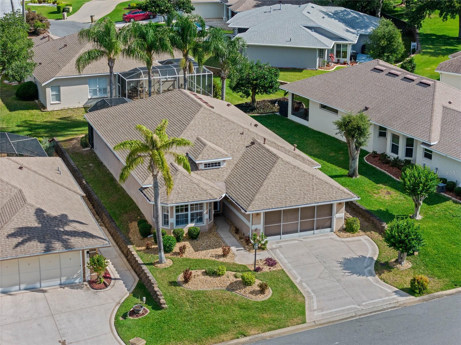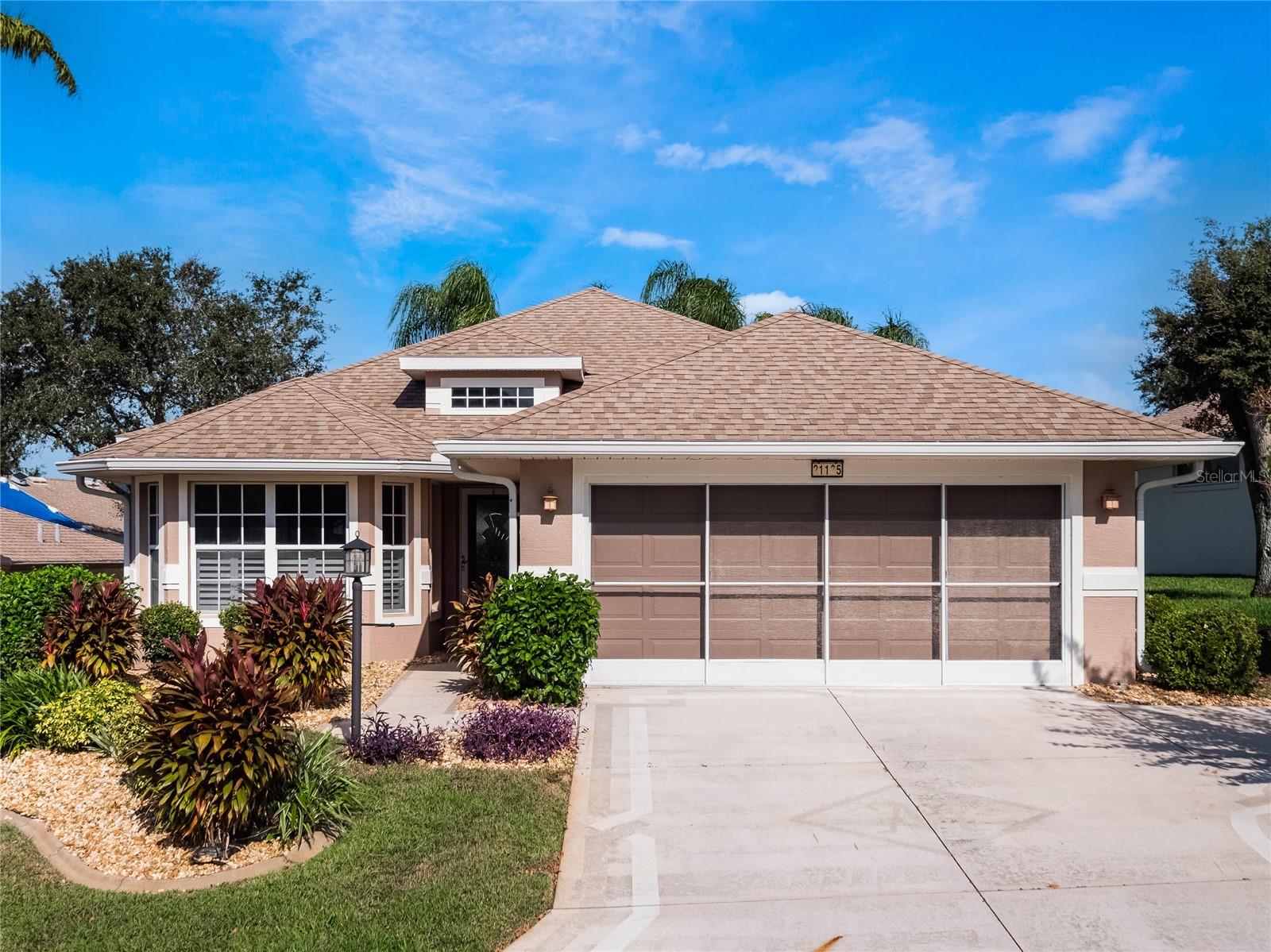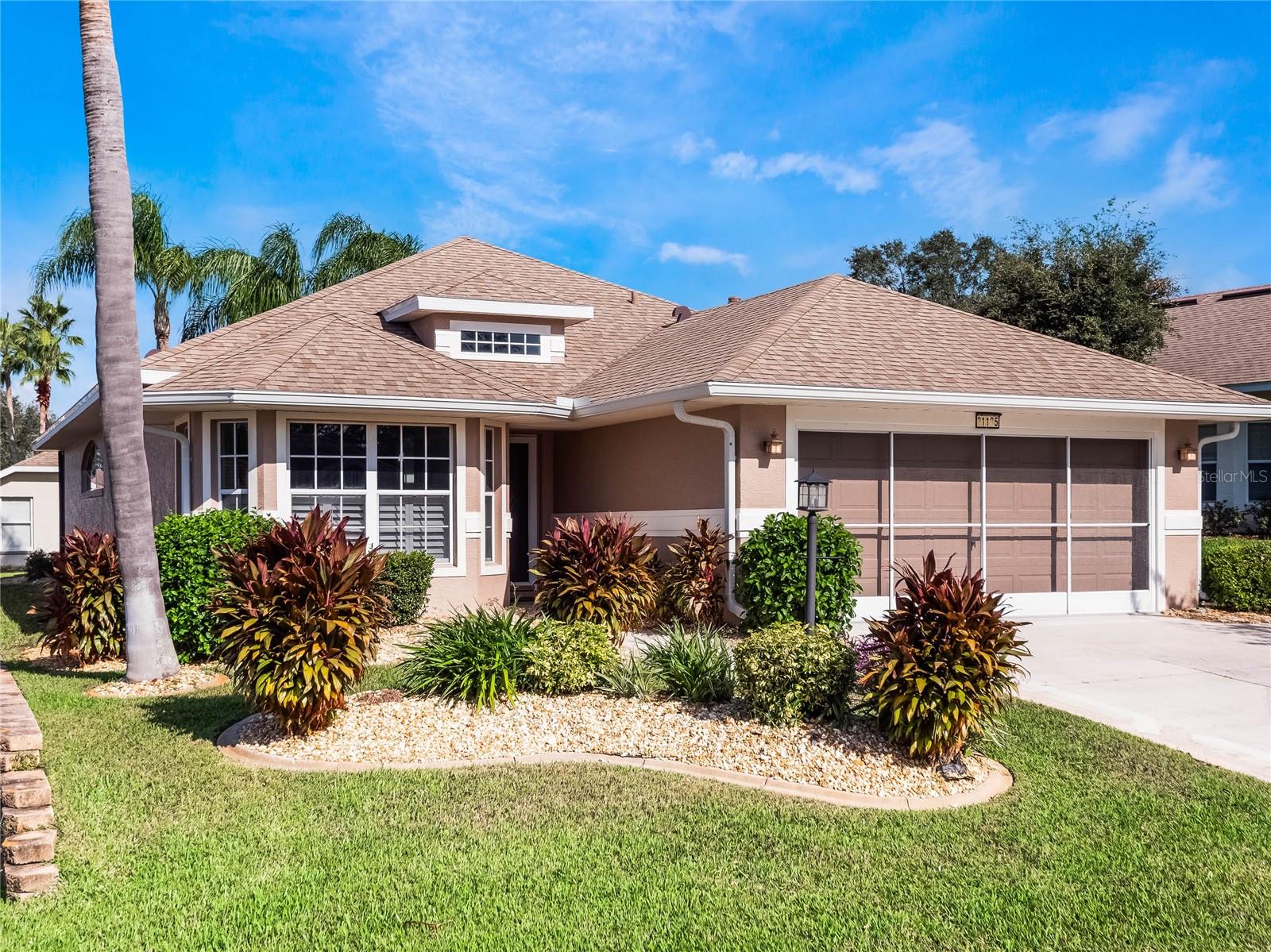 One or more photo(s) has been virtually staged. 2024 Fresh Exterior Paint! And all interior wallpaper has been removed! Crisply painted interior makes for a great improvement! This charming Opal model home in the heart of the gated, golf community of Royal Highlands can be yours! Expanded in size to nearly 1900sf. of under air living area, this home offers it's owner spacious rooms and lots of storage. Featuring CBS Construction, lovely curb appeal, new lanai screens, and a 2019 roof! The 2015 HVAC has been routinely maintained and the home just received a new water heater! You'll enjoy both the 4-season sunroom and the newly screened bird-caged lanai, overlooking palms & gardens. Watch the sunset each evening in all it's glory from your backyard oasis. All three bedrooms have newly installed carpeting! Lastly, this property has a transferrable termite bond! Don't miss out on this great opportunity to live and retire in Royal Highlands. A 55+ active, adult community with two pools, 18-hole golf course with pro-shop and restaurant. The Great Hall hosts dances, live entertainment, theater productions, large functions, and community activities. The HOA has softball, tennis & pickleball courts, shuffleboard, bocce, and more! Crafts, kiln, library and a fitness center are all centrally located in the Recreation Center. Royal Highlands is a short drive to MCO, The Villages, Shopping, Restaurants, Entertainment and Historic Districts. Call for your tour of this great home and community today!
