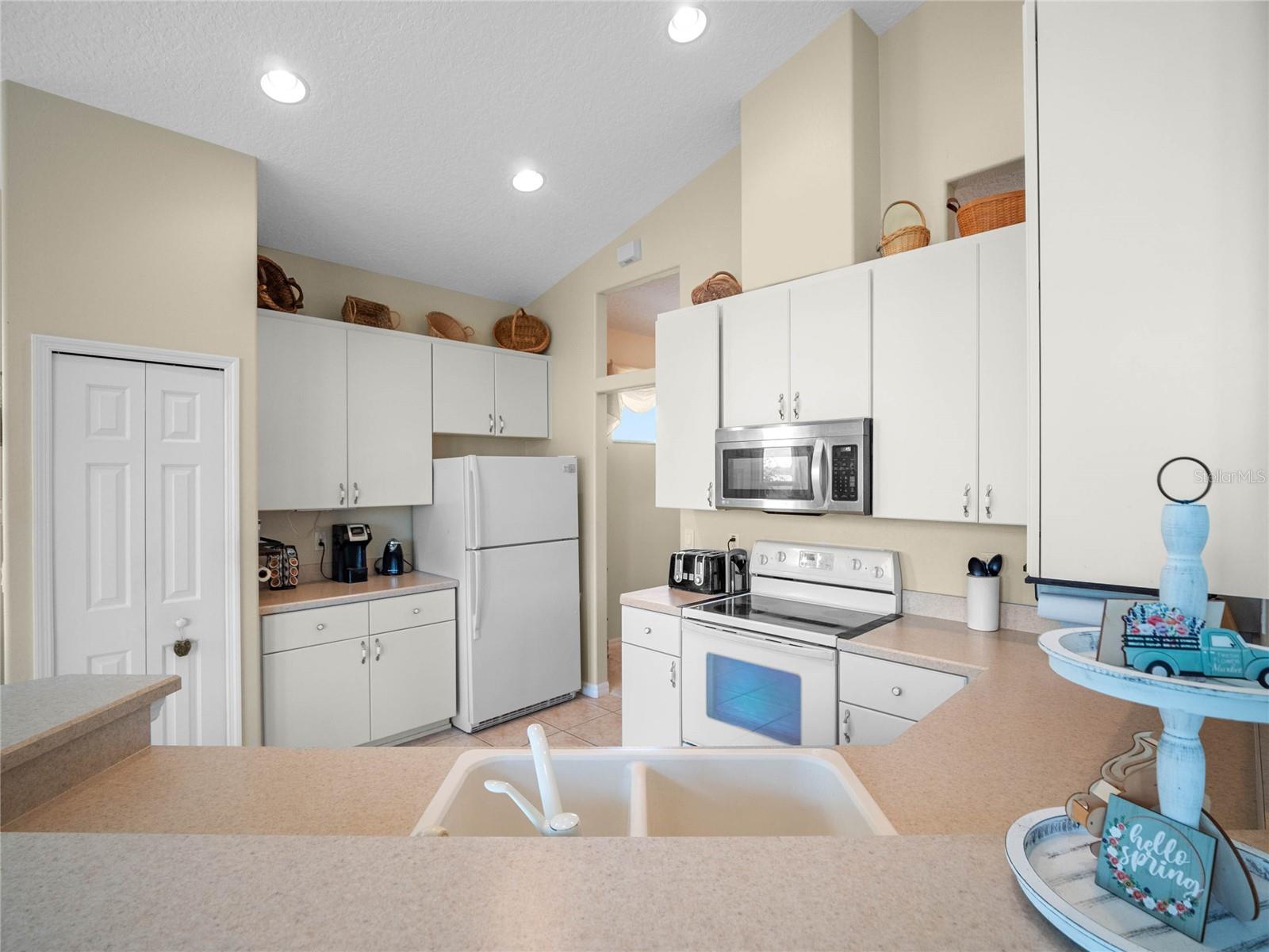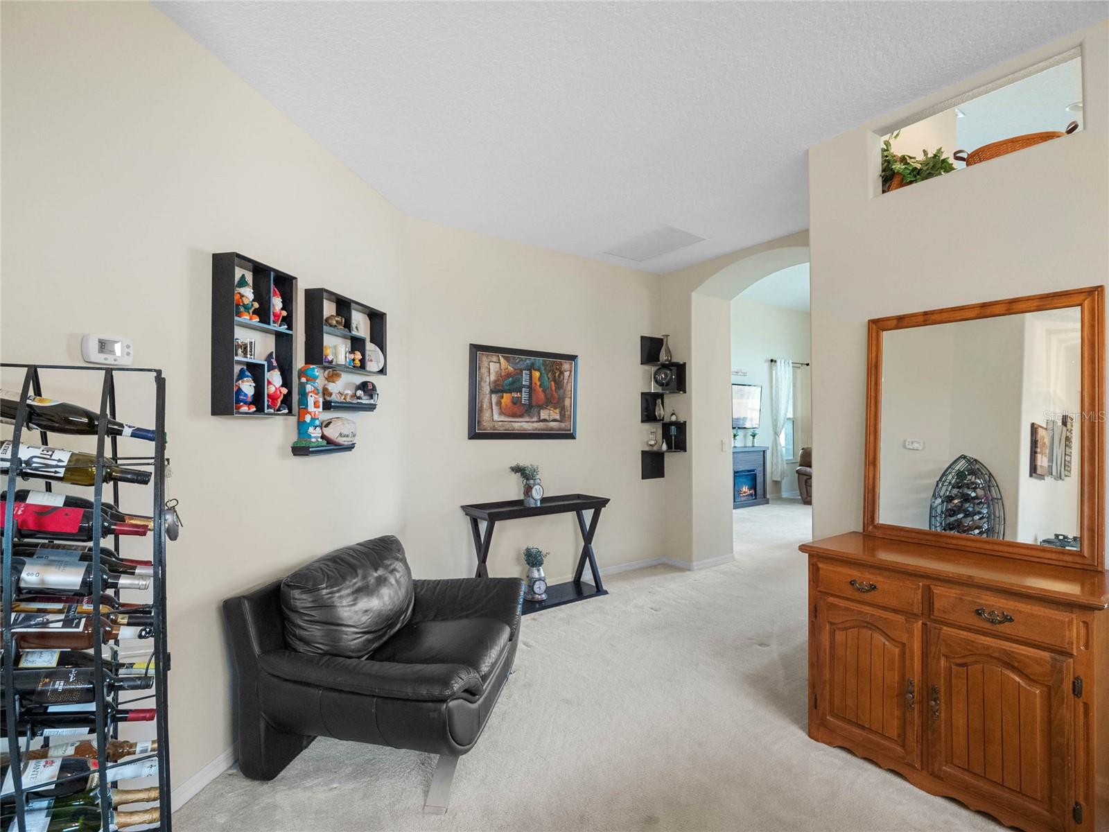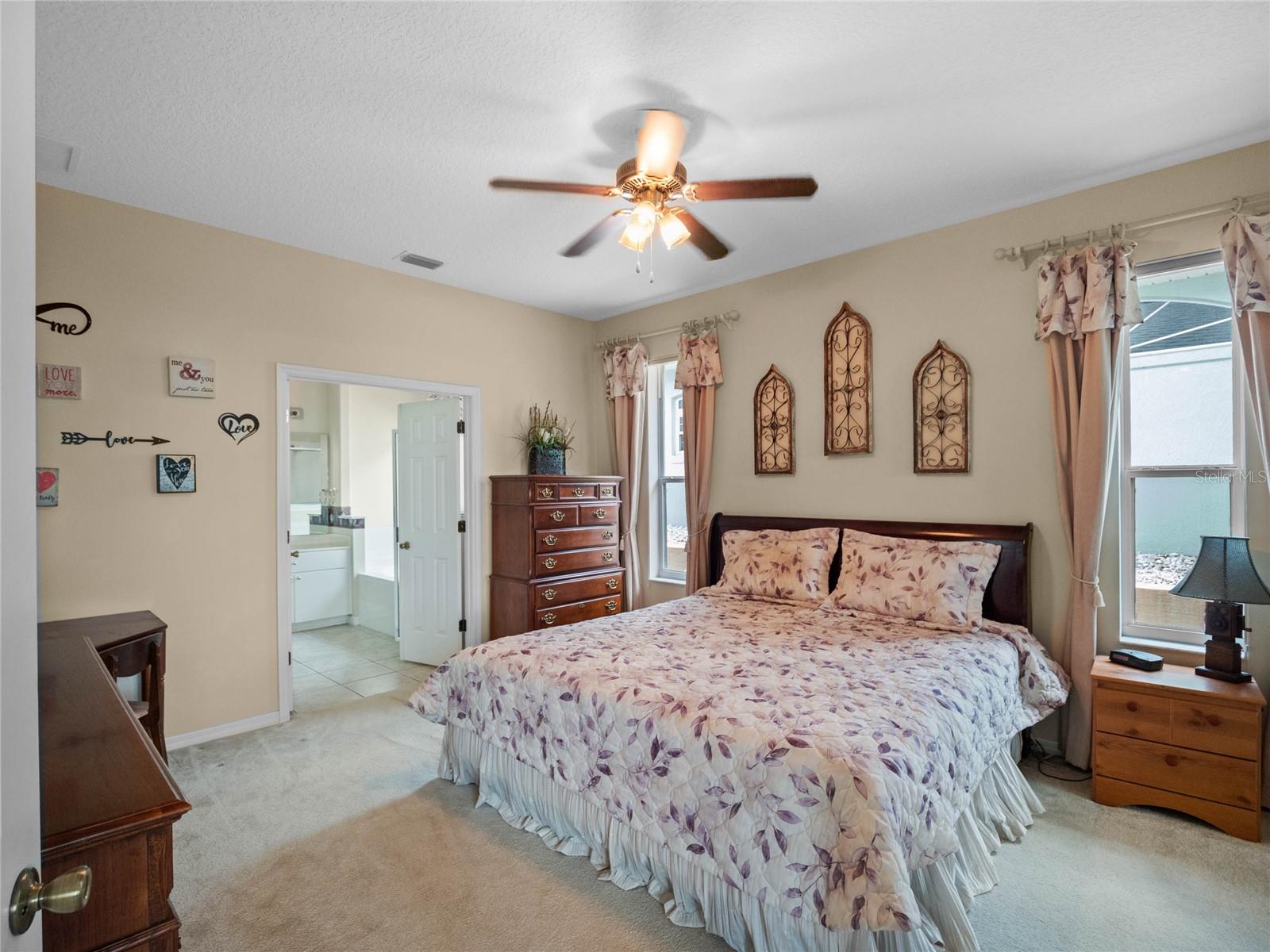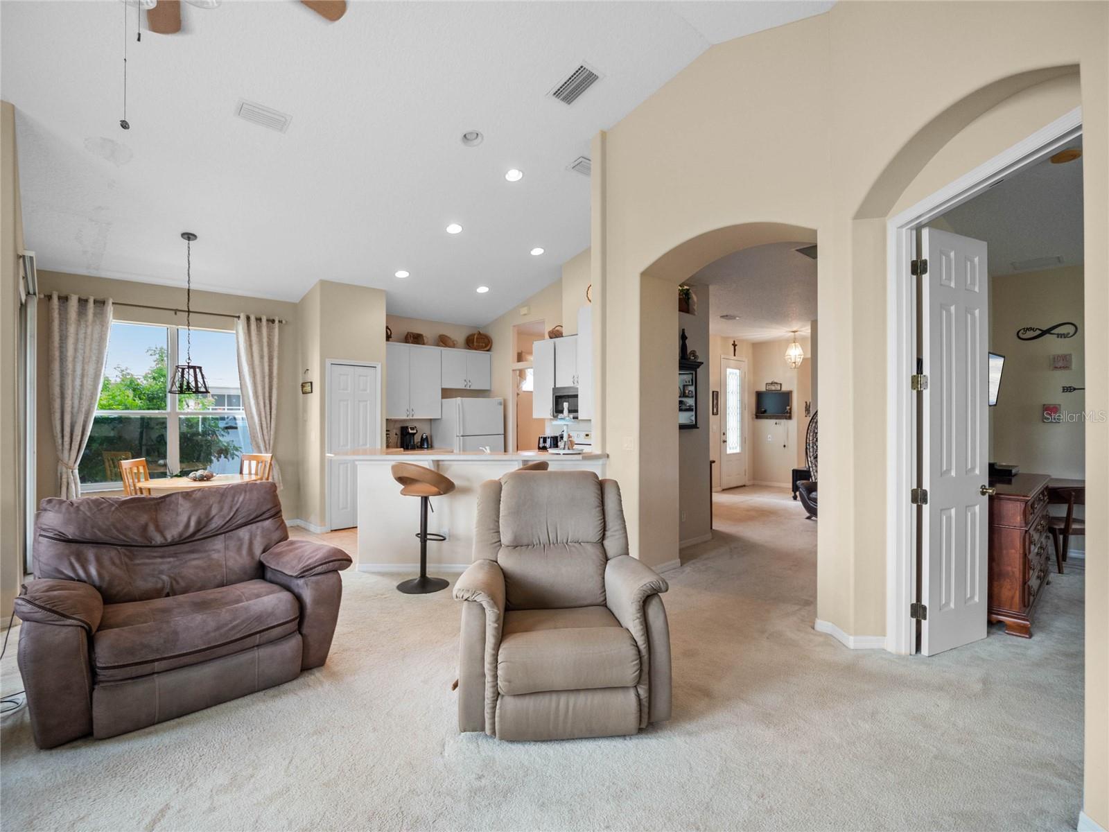 One or more photo(s) has been virtually staged. ***Golf Cart Included in the Purchase!*** Seller offering the buyer a Home Warranty!*** Nestled between the golf course and glorious conservation, with evening sunsets, morning sunrises, it's the perfect place to call home. This 3/2/2+ with golf cart parking, block & stucco Edinborough Model home sits on one of the rolling hills in the sought after 55+ golf community of Royal Highlands. You'll enjoy the vast views of the 16th fairway and green, one of the best course views in the community! Offering 1808sf. of under-air living area and two screened lanai's where you can relax and kick your feet up. Between the two lanai's is a open patio where you can grill and sip wine with visiting friends. The perfect oasis! Inside, the kitchen overlooks the large living room & dinette, with vaulted ceilings. This home has so much natural light thanks to the large windows. Formal dining is featured in this adorable home, along with two guest suites, and a large primary bedroom which includes a sitting or reading nook! Ensuite primary bath lends it owners dual vanities, garden soaker tub, step-in tiled shower, and private commode. If large closets are a must, this one should be on your touring list! Lastly, owners will love the inside laundry, transferrable termite bond, and architectual design with high ceilings and door arches. Brand New 2023 Roof! 2020 HVAC! Call for your tour today! Royal Highlands is centrally located in Lake County, Florida with two pools, fitness center, courts, fishing, crafts, clubs, and activities. Meet your neighbors for dinner at the campus restaurant or grab a bucket of balls and hit the driving range. Close to MCO, shopping, restaurants, medical professionals and entertainment! Come see what retirement living is all about!