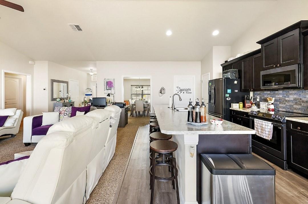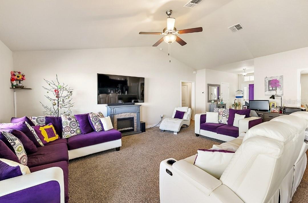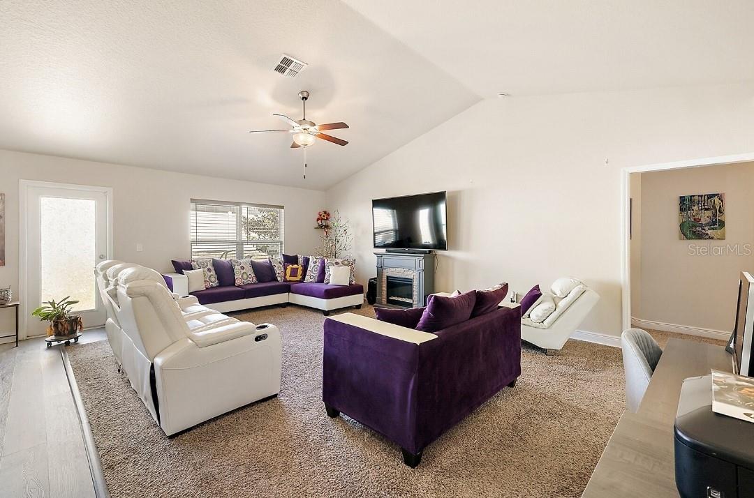***This home can be purchased with an assumable mortgage at 3.625 for qualified buyers!***Owner is offering $5,000 for closing costs.*** This lovely, well-maintained property, in the highly sought after Park Hill subdivision in Leesburg, features 4 bedrooms, 3 full baths, and a small but spacious backyard that holds a shed that can be used as a small workshop or additional storage. Two citrus trees, one lemon, one orange are also planted in the back yard. Additional shed on the side of the home conceals the garbage and recycle bins, but can also be used as storage space. The 2-car garage has epoxy flooring, a belt-drive garage door opener to encourage a quieter access, 2 key fobs, and a 4 door screen enclosure. This home features an open concept floorplan, with strategically placed windows to allow for natural lighting to seep through. The entrance, a spacious foyer, consists of a vinyl floor. Luxury vinyl plank floor designs the kitchen, pantry, and laundry room. The extended kitchen island (11 ft) makes for additional dining or an audience for those preparing meals on. Kitchen appliances include Samsung range, microwave and refrigerator. New washer has one year warranty! Create memories and capture the moments shared at the dinner table with family and friends in the formal dining room! A jack-and-jill bathroom makes for easy access for guests or to allow for a mini master bedroom as bedroom 2 also has a walk-in closet and ceiling fan. Bedroom 4 allows for additional closet space with its dual closets. The master bedroom leads to a large ensuite containing a comfortable bathtub as well as stand-up shower, dual sinks and a generously spaced walk-in closet. TV wall mounts are installed on the walls of the living room, primary bedroom as well as bedrooms 3 and 4. Owned closed circuit cameras by Swann Security (DVR) installed system provides peace of mind when you're on vacation, allowing you to be vigilant from afar. Added measures of security is provided via owned SimpliSafe security system. This home is located minutes from the Lake Square mall, its shops and theater, and its nearby restaurants. It is also minutes from Downtown Leesburg and conveniently located 50 minutes from Orlando. Permit yourself the time to view the property in its entirety to catch a glimpse of the abundant feeling of HOME. https://hmlt.co/7807-sloewood-dr