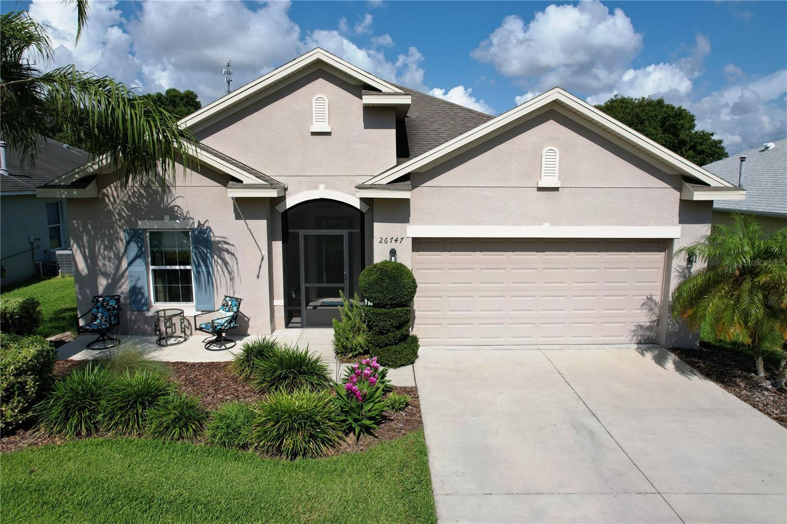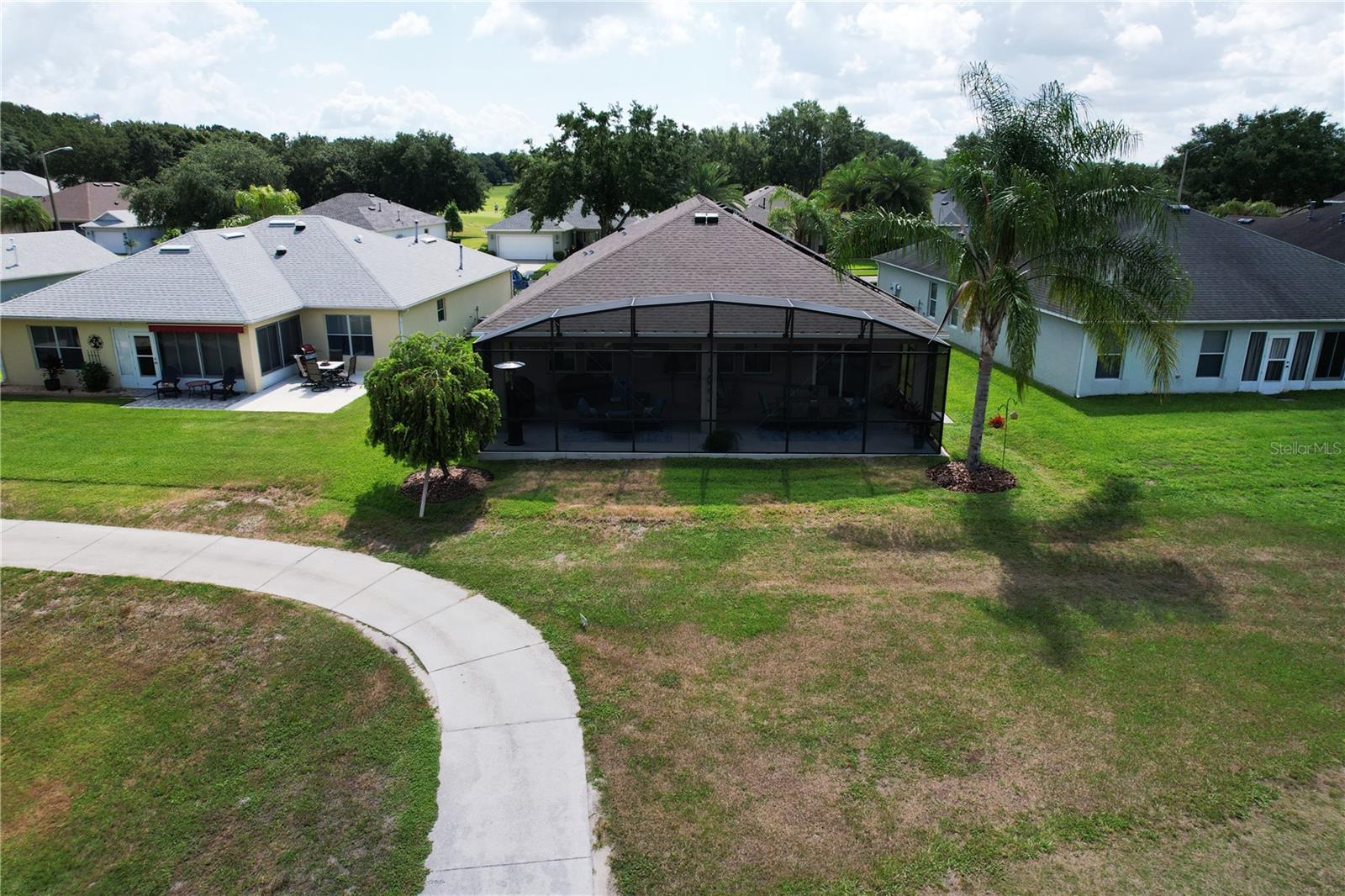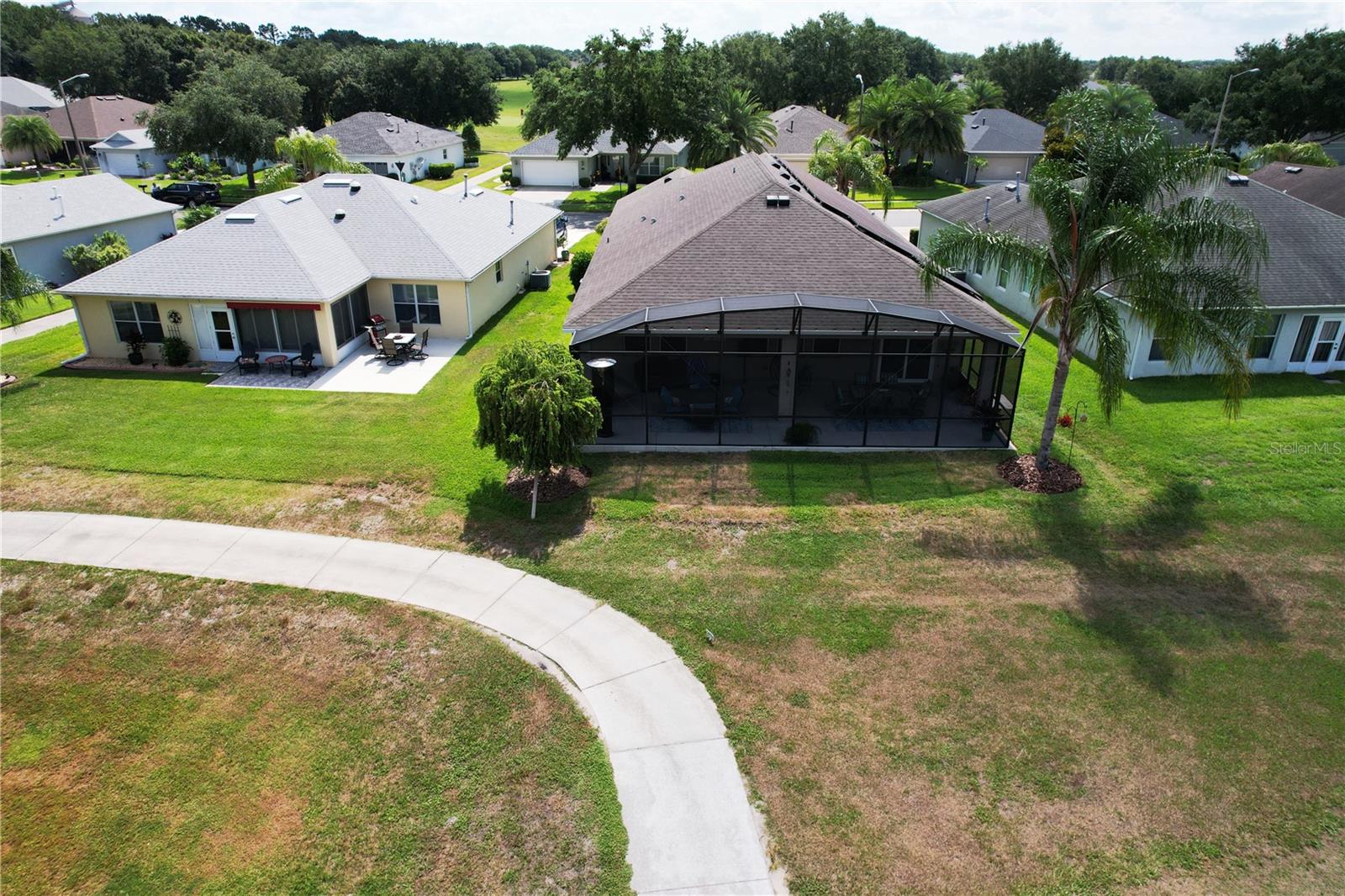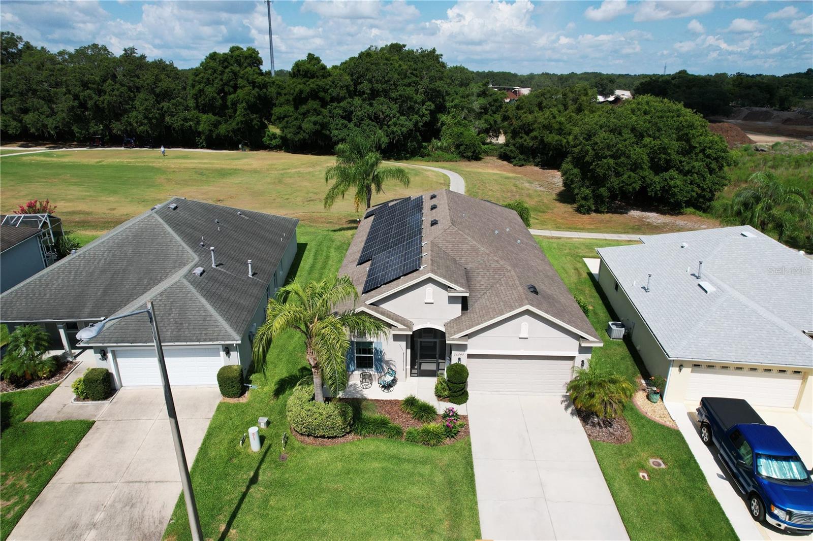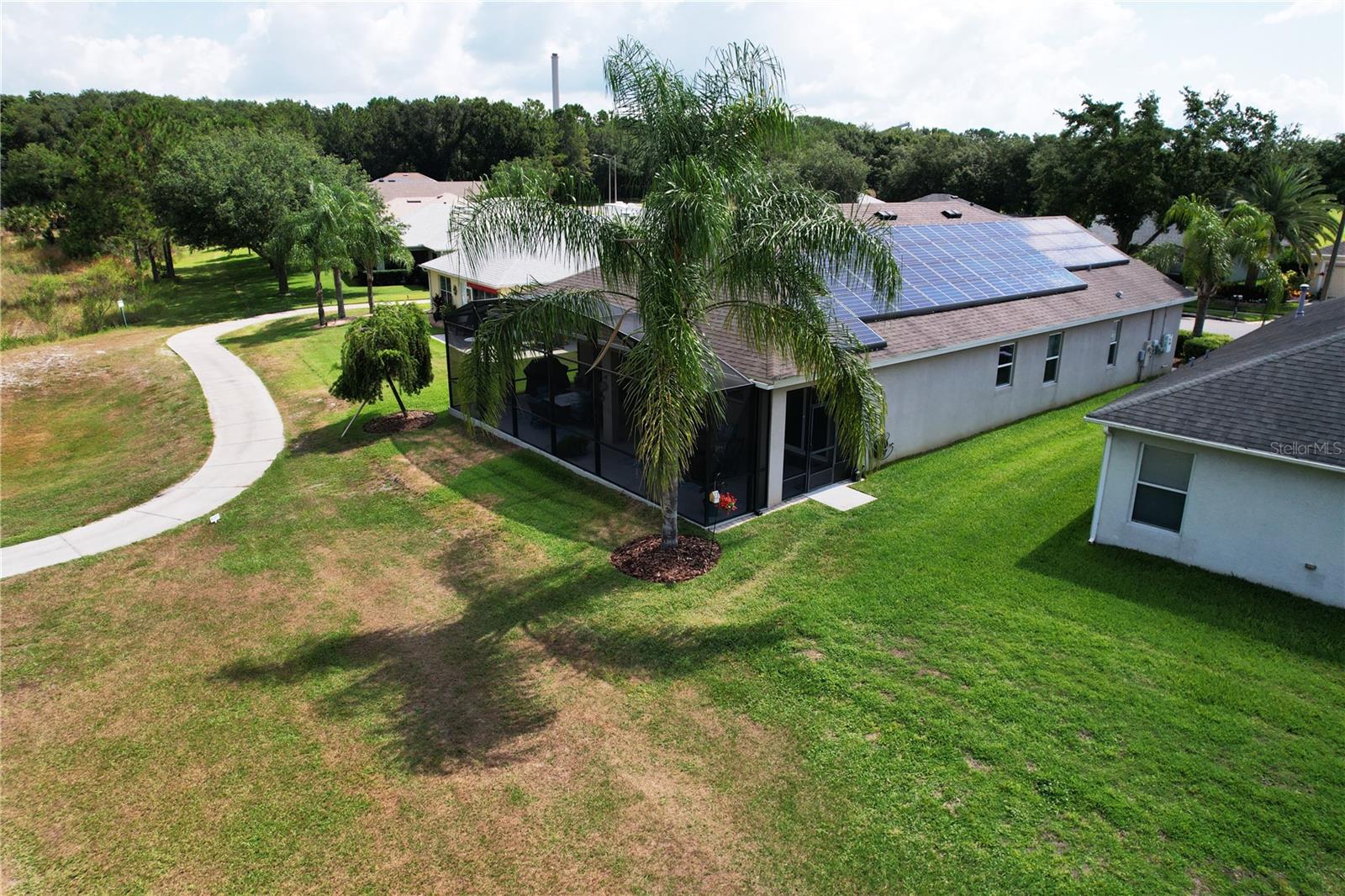 PRICE REDUCED!!!! Welcome to your dream home nestled within the serene ambiance of the Arlington Ridge golf community. This stunning 4-bedroom, 2-bathroom residence invites you into a world of comfort, elegance, and leisure, offering the perfect blend of modern living and natural beauty. Step inside and be greeted by a large inviting foyer, leading you into the heart of the home where a spacious living area awaits. Bathed in natural light streaming through the brand new Pella sliding glass doors and the large windows, this open-concept space is ideal for both relaxation and entertainment. The well-appointed kitchen is a chef's delight, boasting sleek granite countertops, A double oven and all stainless steel appliances, ample cabinetry, and a convenient island breakfast bar. Whether you're whipping up culinary delights or enjoying casual meals with loved ones, this kitchen is sure to inspire your inner chef. Retreat to the luxurious master suite, complete with luxury vinyl floors, offering a peaceful sanctuary to unwind after a long day on the golf course. Complete with a walk-in closet and a spa-like ensuite bathroom featuring dual sinks, and a huge shower... this haven exudes comfort and sophistication. Three additional bedrooms provide versatile spaces for guests, a craft room, or home offices, ensuring everyone has their own private space. A second full bathroom with modern fixtures and finishes serves these bedrooms, providing convenience and functionality for everyday living. One of the highlights of this home is the expansive oversized lanai, where outdoor living meets elegance. Whether you're savoring your morning coffee, dining al fresco, or simply soaking in the breathtaking views of the surrounding greenery, and the golf course...you are located on the 11th tee box. This outdoor oasis is perfect for year-round enjoyment. Another exciting feature are the solar panels. You can set your AC as cold as you like, and it will not affect your solar bill!! Your solar lease payment is less than your neighbors electric payment! Arlington Ridge features an established Gary Koch designed golf course and other amenities created to complement a casual active adult lifestyle, including tennis and pickleball courts, private swimming and fitness facilities and a Village Green with a movie theater, Village Tavern, billiards room, library and Grand Hall for large entertainment and social events. This community has meticulously landscaped grounds and picturesque views at every turn, every day feels like a vacation in this sought after neighborhood. Don't miss this opportunity to experience resort-style living at its finest. Schedule your private tour today and discover the lifestyle you've always dreamed of.