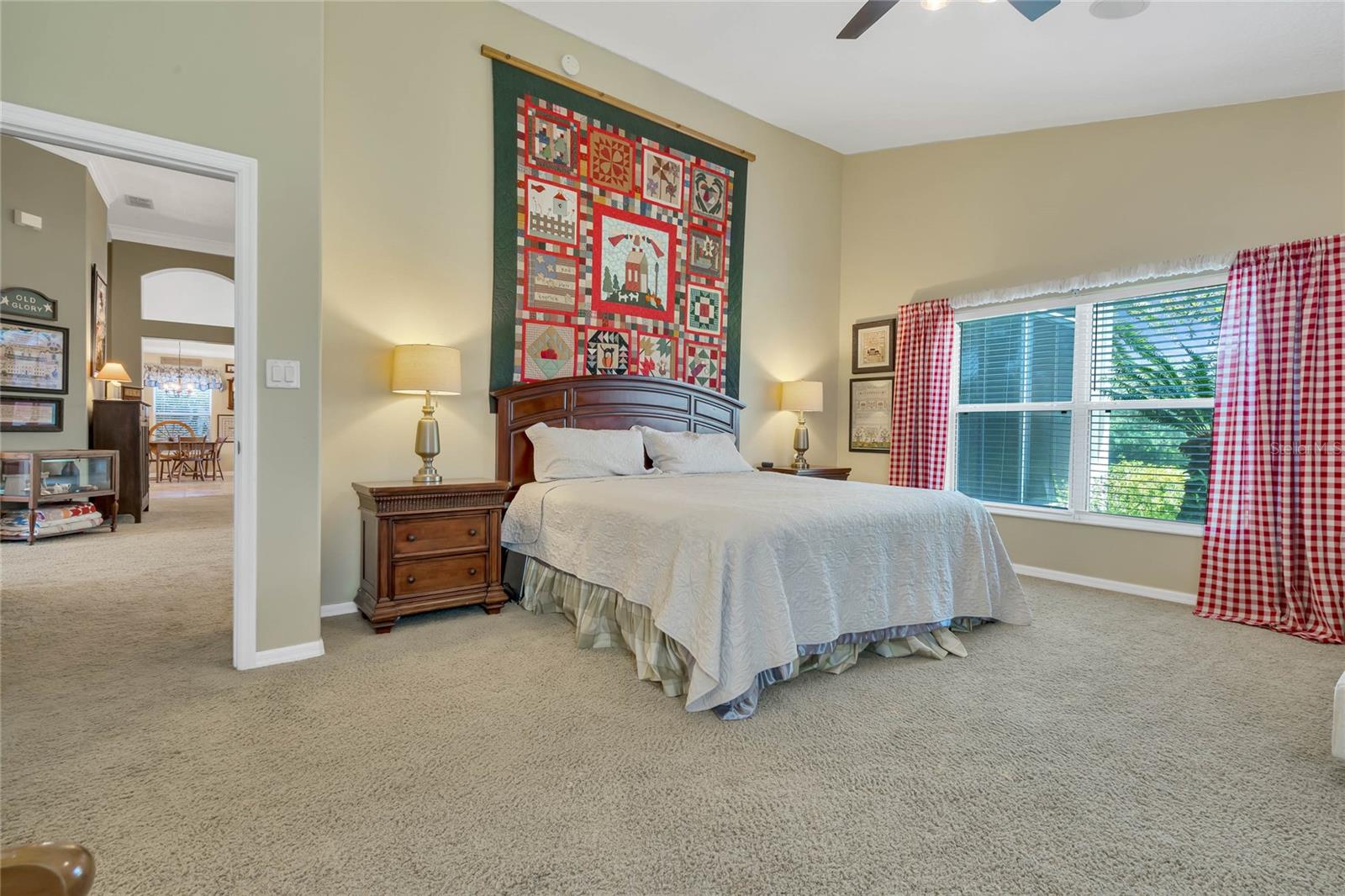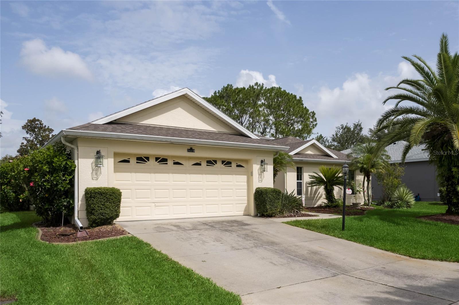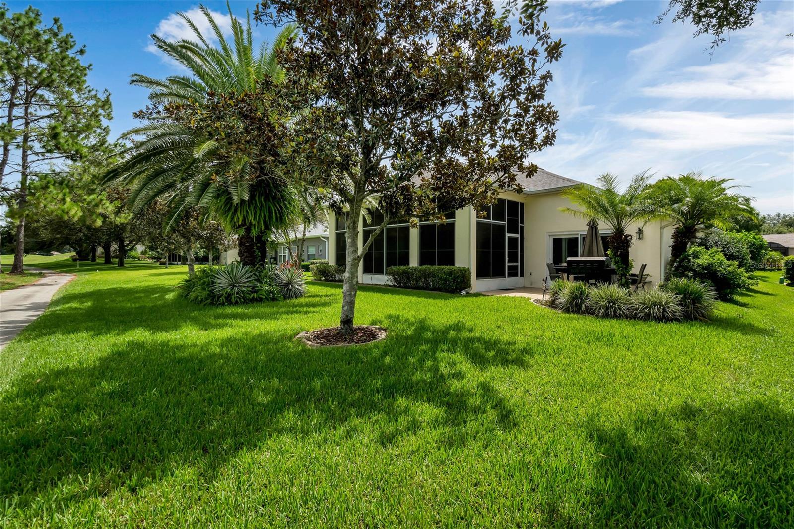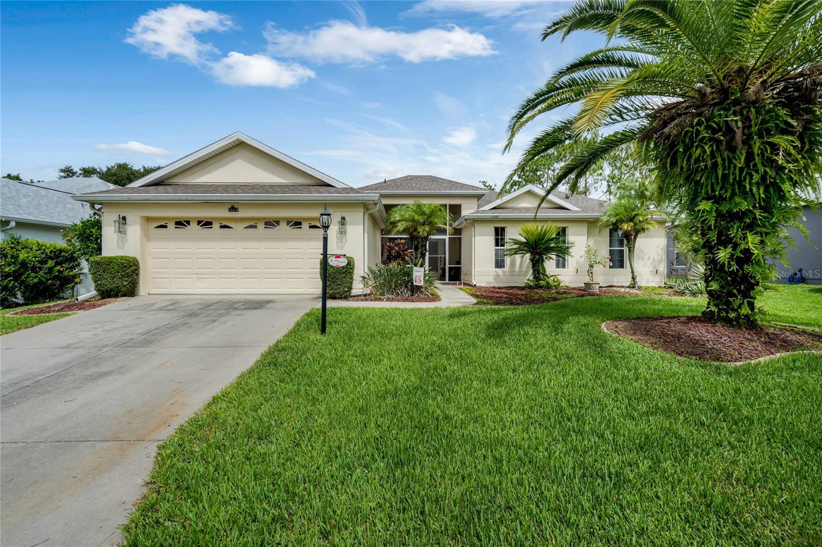 CHECK OUT the new FRESH interior neutral paint to bring a BRIGHTER interior LOOK! This beautiful home has two Master suites with direct GOLF CORSE frontage. Pull up to the curb and take a minute to enjoy the mature landscaping. As you approach the covered and newly screened front porch, prepare to step through the classic leaded glass door with matching side lite and realize this is the home you have been searching for. The foyer has ceramic tile with an inlayed pattern. The great room before you has large sliding glass doors to the lanai which give you a marvelous view of the golf course and literally pull nature into the room to make it part of your décor. This space gives you room for entertaining with a large conversation area and formal dining area. There is a wet bar area and an adjoining powder room. Move into the kitchen which has 42" cherry cabinets, loads of Corian counter space, a work island with additional storage, a pantry and an eating area. Turn around and discover the family room with new sliding doors to the barbecue patio with an infra red grill and shows off that marvelous golf course view again. Move to the opposite end of the house to find a spacious Master suite with windows that provide another view of the golf course. The master bath has huge his and her vanities, a garden Jacuzzi tub, an extra large walk in shower and access to a gigantic walk in closet. Head back toward the foyer and find the 2nd Master suite. A large closet is just out side the door. The Master bath has a double vanity, large shower, linen closet, walk in closet. On the other side of the foyer is an office/study/den near the front door. The 25X12 lanai in this home has new windows and screens. Hook a receiver to the speaker system in this home and enjoy music wherever you wish. The oversized garage is 26X28, has pull down stairs to the attic, shelving on the wall and a refrigerator. NEW roof in 2021, AC 2013 with new coil in handler in 2019 Don't miss this dream home! Start enjoying the wonderful lifestyle you deserve in the Florida sunshine. The Plantation is a gated 55+ community with two 18 hole golf courses, a driving range, 3 activity centers, 3 pools, tennis and pickle ball courts, bocce ball, shuffleboard, softball, horseshoes, fitness centers and more than 100 planned activities each week. HOA Fee is only $135.00 per month.