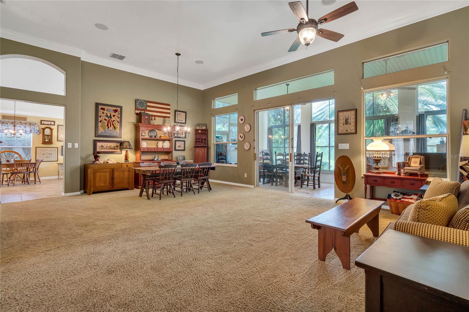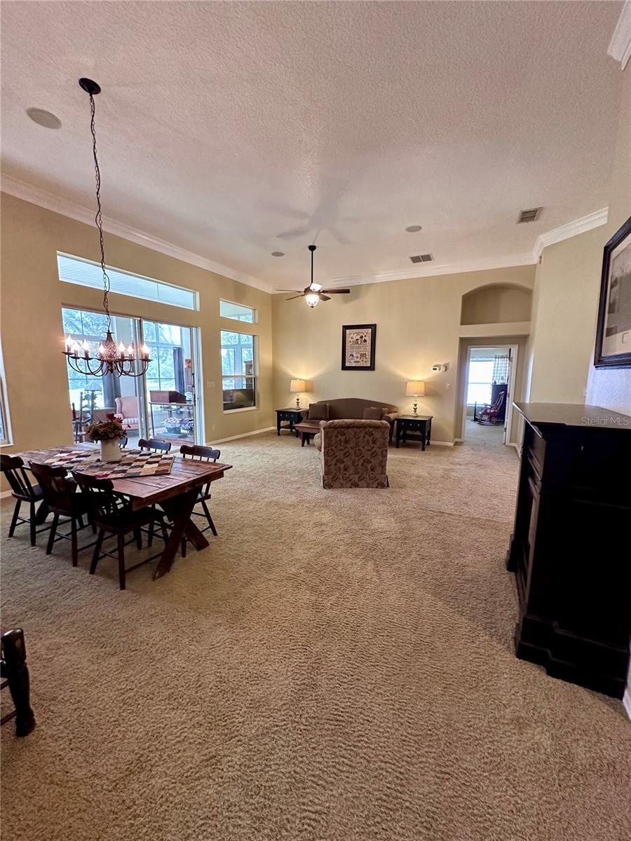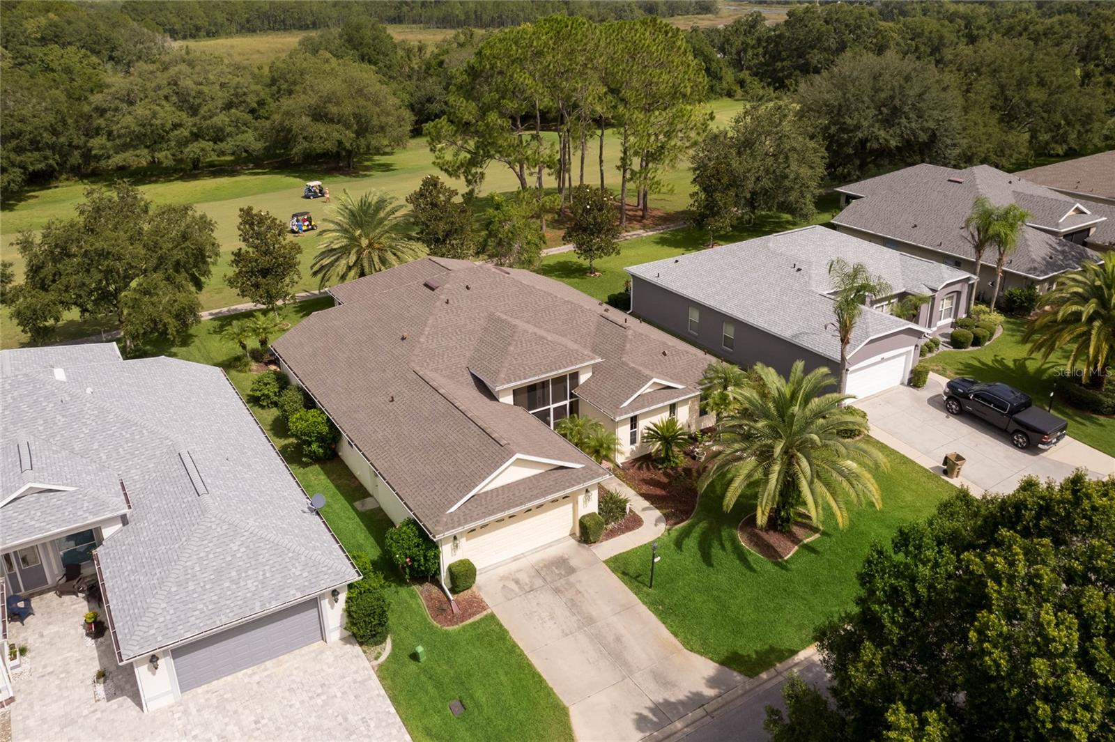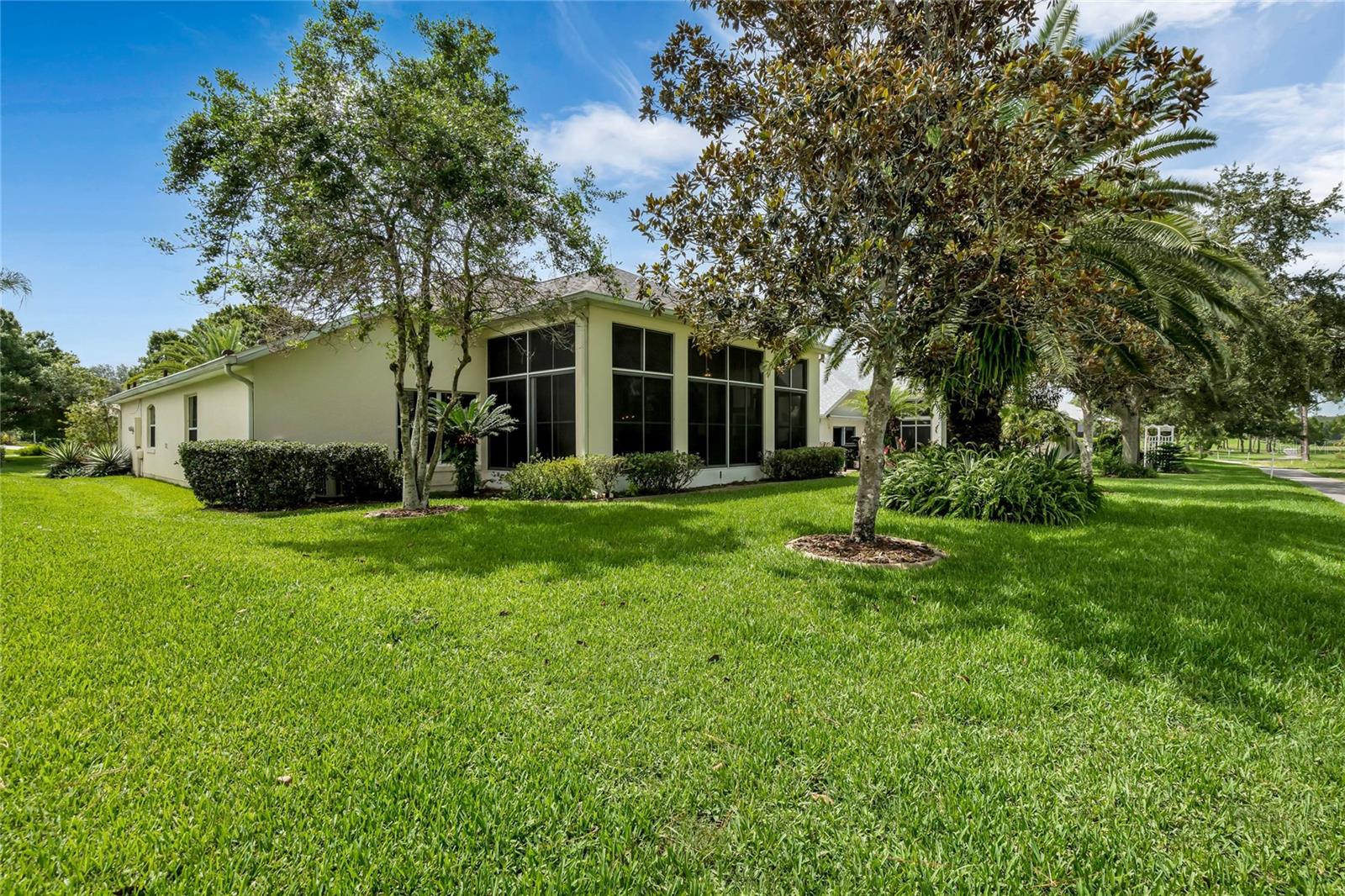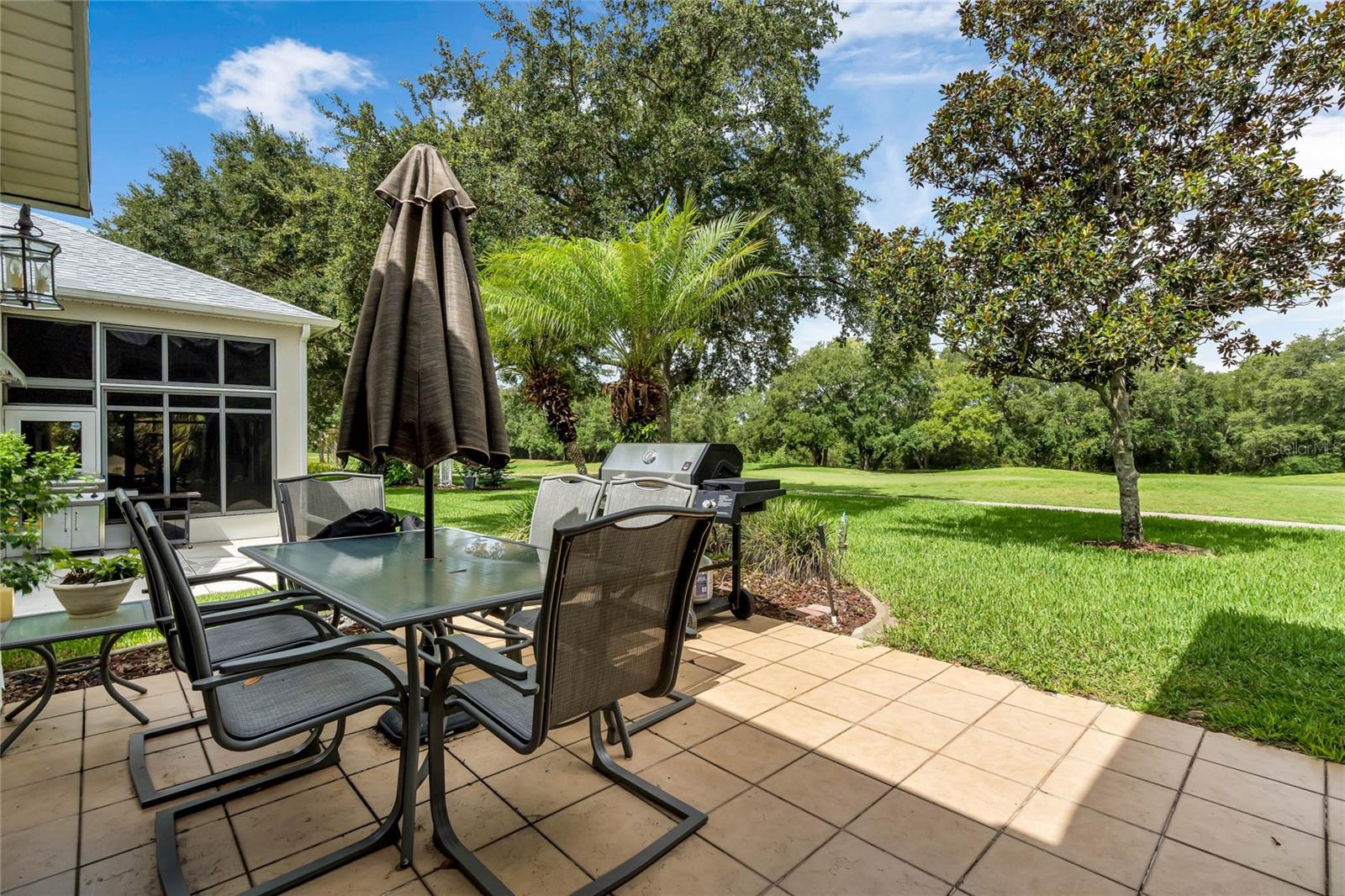 CHECK OUT the new FRESH interior neutral paint to bring a BRIGHTER interior LOOK! This beautiful home has two Master suites with direct GOLF CORSE frontage. Pull up to the curb and take a minute to enjoy the mature landscaping. As you approach the covered and newly screened front porch, prepare to step through the classic leaded glass door with matching side lite and realize this is the home you have been searching for. The foyer has ceramic tile with an inlayed pattern. The great room before you has large sliding glass doors to the lanai which give you a marvelous view of the golf course and literally pull nature into the room to make it part of your décor. This space gives you room for entertaining with a large conversation area and formal dining area. There is a wet bar area and an adjoining powder room. Move into the kitchen which has 42" cherry cabinets, loads of Corian counter space, a work island with additional storage, a pantry and an eating area. Turn around and discover the family room with new sliding doors to the barbecue patio with an infra red grill and shows off that marvelous golf course view again. Move to the opposite end of the house to find a spacious Master suite with windows that provide another view of the golf course. The master bath has huge his and her vanities, a garden Jacuzzi tub, an extra large walk in shower and access to a gigantic walk in closet. Head back toward the foyer and find the 2nd Master suite. A large closet is just out side the door. The Master bath has a double vanity, large shower, linen closet, walk in closet. On the other side of the foyer is an office/study/den near the front door. The 25X12 lanai in this home has new windows and screens. Hook a receiver to the speaker system in this home and enjoy music wherever you wish. The oversized garage is 26X28, has pull down stairs to the attic, shelving on the wall and a refrigerator. NEW roof in 2021, AC 2013 with new coil in handler in 2019 Don't miss this dream home! Start enjoying the wonderful lifestyle you deserve in the Florida sunshine. The Plantation is a gated 55+ community with two 18 hole golf courses, a driving range, 3 activity centers, 3 pools, tennis and pickle ball courts, bocce ball, shuffleboard, softball, horseshoes, fitness centers and more than 100 planned activities each week. HOA Fee is only $135.00 per month.