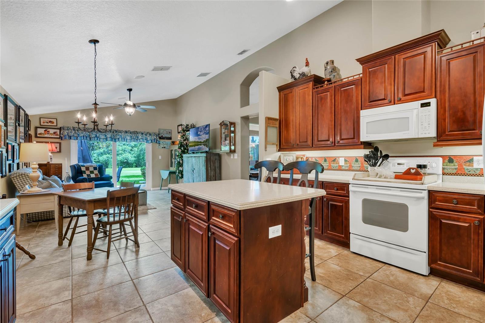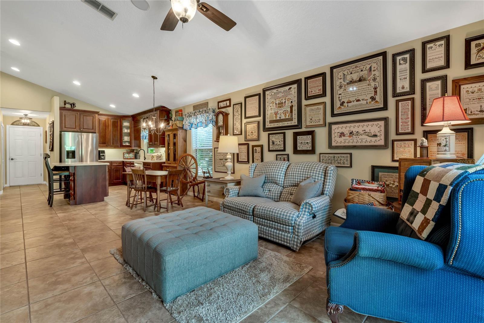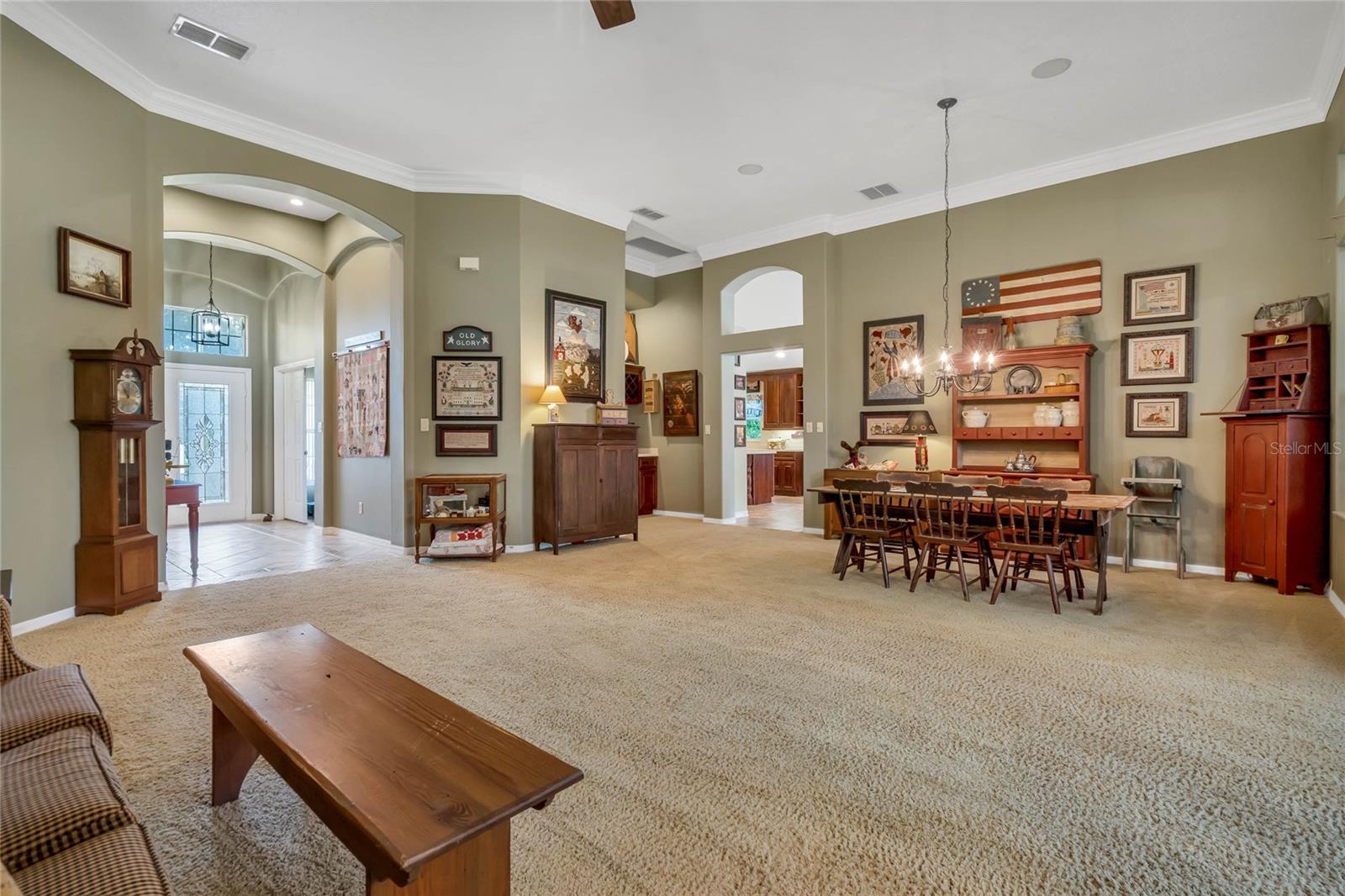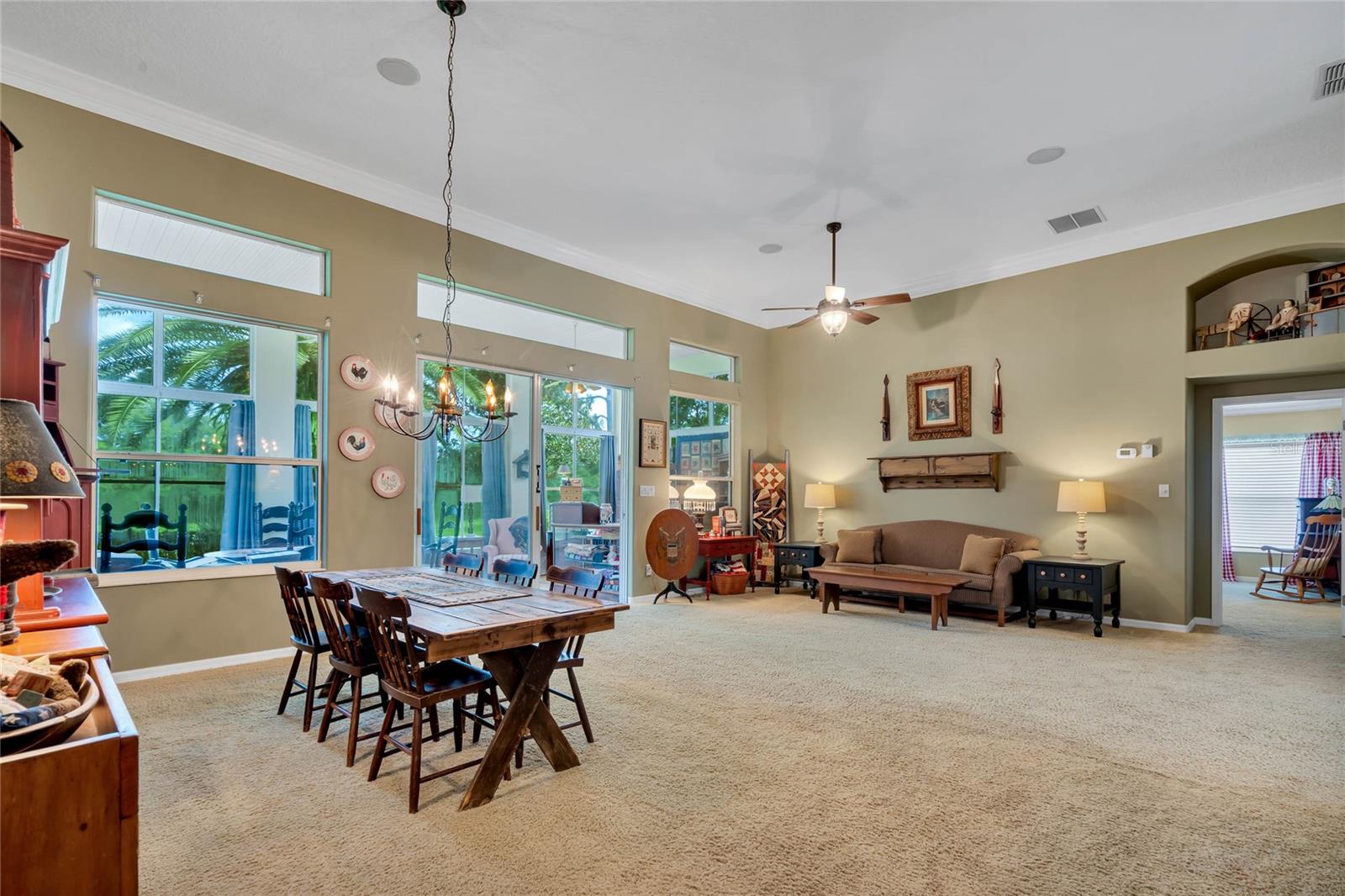 CHECK OUT the new FRESH interior neutral paint to bring a BRIGHTER interior LOOK! This beautiful home has two Master suites with direct GOLF CORSE frontage. Pull up to the curb and take a minute to enjoy the mature landscaping. As you approach the covered and newly screened front porch, prepare to step through the classic leaded glass door with matching side lite and realize this is the home you have been searching for. The foyer has ceramic tile with an inlayed pattern. The great room before you has large sliding glass doors to the lanai which give you a marvelous view of the golf course and literally pull nature into the room to make it part of your décor. This space gives you room for entertaining with a large conversation area and formal dining area. There is a wet bar area and an adjoining powder room. Move into the kitchen which has 42" cherry cabinets, loads of Corian counter space, a work island with additional storage, a pantry and an eating area. Turn around and discover the family room with new sliding doors to the barbecue patio with an infra red grill and shows off that marvelous golf course view again. Move to the opposite end of the house to find a spacious Master suite with windows that provide another view of the golf course. The master bath has huge his and her vanities, a garden Jacuzzi tub, an extra large walk in shower and access to a gigantic walk in closet. Head back toward the foyer and find the 2nd Master suite. A large closet is just out side the door. The Master bath has a double vanity, large shower, linen closet, walk in closet. On the other side of the foyer is an office/study/den near the front door. The 25X12 lanai in this home has new windows and screens. Hook a receiver to the speaker system in this home and enjoy music wherever you wish. The oversized garage is 26X28, has pull down stairs to the attic, shelving on the wall and a refrigerator. NEW roof in 2021, AC 2013 with new coil in handler in 2019 Don't miss this dream home! Start enjoying the wonderful lifestyle you deserve in the Florida sunshine. The Plantation is a gated 55+ community with two 18 hole golf courses, a driving range, 3 activity centers, 3 pools, tennis and pickle ball courts, bocce ball, shuffleboard, softball, horseshoes, fitness centers and more than 100 planned activities each week. HOA Fee is only $135.00 per month.