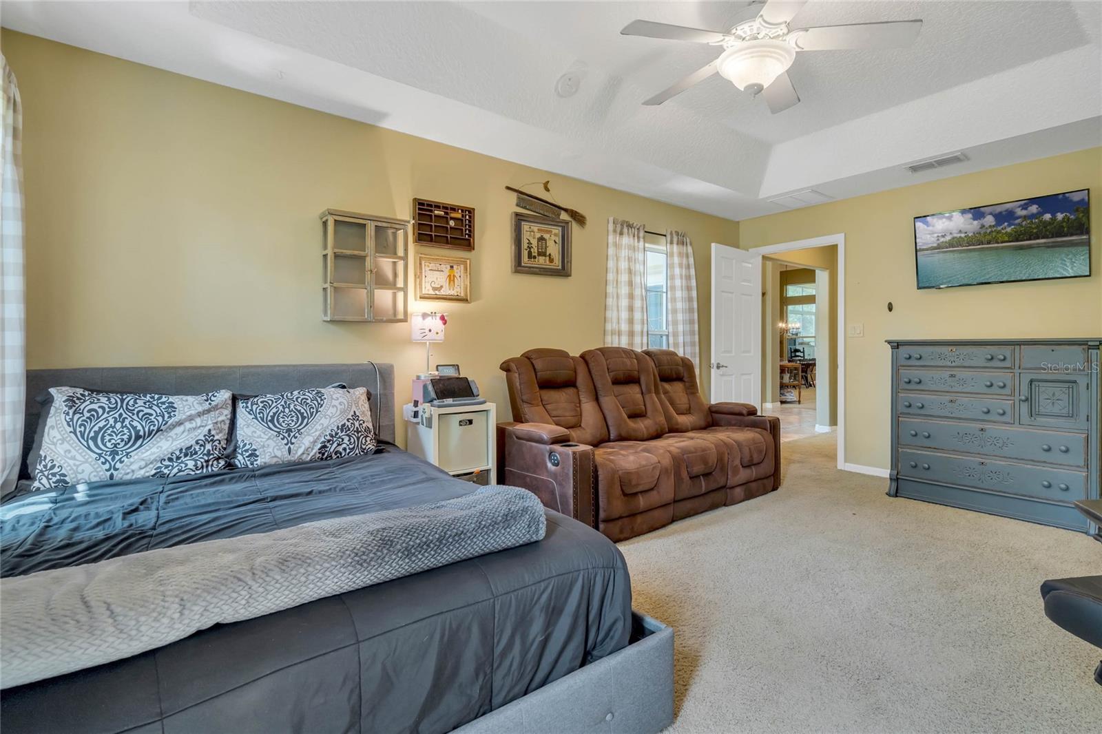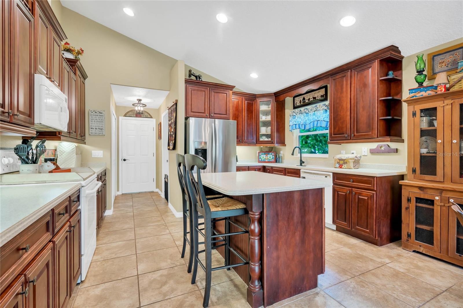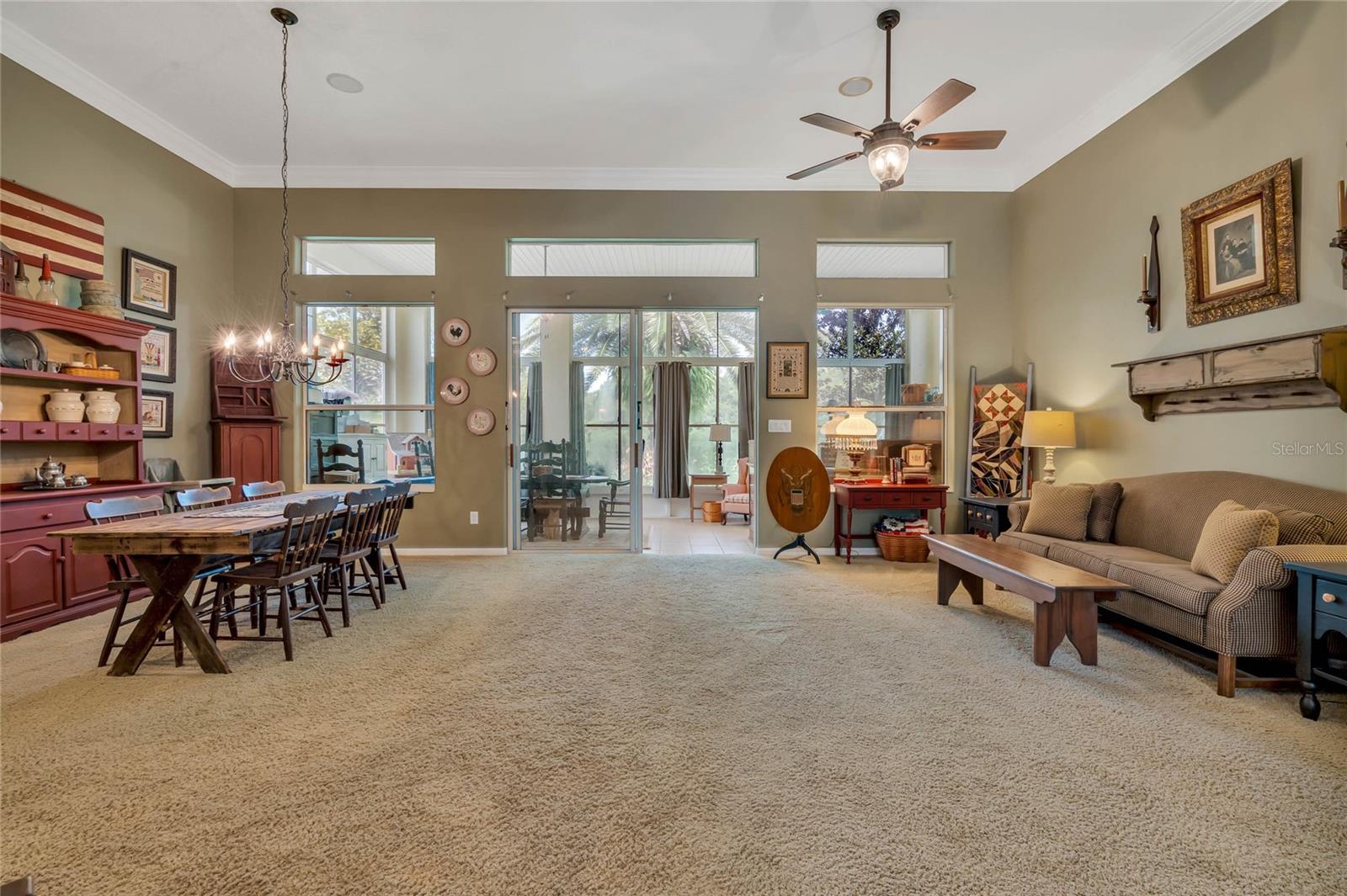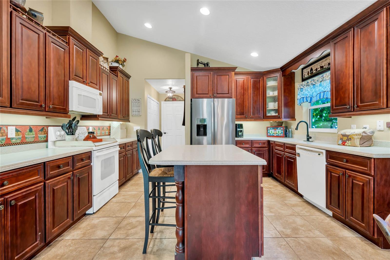 CHECK OUT the new FRESH interior neutral paint to bring a BRIGHTER interior LOOK! This beautiful home has two Master suites with direct GOLF CORSE frontage. Pull up to the curb and take a minute to enjoy the mature landscaping. As you approach the covered and newly screened front porch, prepare to step through the classic leaded glass door with matching side lite and realize this is the home you have been searching for. The foyer has ceramic tile with an inlayed pattern. The great room before you has large sliding glass doors to the lanai which give you a marvelous view of the golf course and literally pull nature into the room to make it part of your décor. This space gives you room for entertaining with a large conversation area and formal dining area. There is a wet bar area and an adjoining powder room. Move into the kitchen which has 42" cherry cabinets, loads of Corian counter space, a work island with additional storage, a pantry and an eating area. Turn around and discover the family room with new sliding doors to the barbecue patio with an infra red grill and shows off that marvelous golf course view again. Move to the opposite end of the house to find a spacious Master suite with windows that provide another view of the golf course. The master bath has huge his and her vanities, a garden Jacuzzi tub, an extra large walk in shower and access to a gigantic walk in closet. Head back toward the foyer and find the 2nd Master suite. A large closet is just out side the door. The Master bath has a double vanity, large shower, linen closet, walk in closet. On the other side of the foyer is an office/study/den near the front door. The 25X12 lanai in this home has new windows and screens. Hook a receiver to the speaker system in this home and enjoy music wherever you wish. The oversized garage is 26X28, has pull down stairs to the attic, shelving on the wall and a refrigerator. NEW roof in 2021, AC 2013 with new coil in handler in 2019 Don't miss this dream home! Start enjoying the wonderful lifestyle you deserve in the Florida sunshine. The Plantation is a gated 55+ community with two 18 hole golf courses, a driving range, 3 activity centers, 3 pools, tennis and pickle ball courts, bocce ball, shuffleboard, softball, horseshoes, fitness centers and more than 100 planned activities each week. HOA Fee is only $135.00 per month.