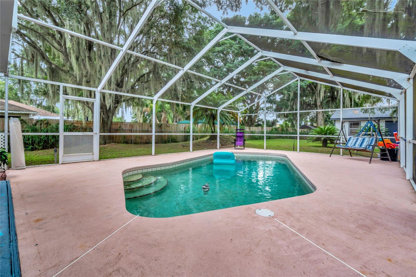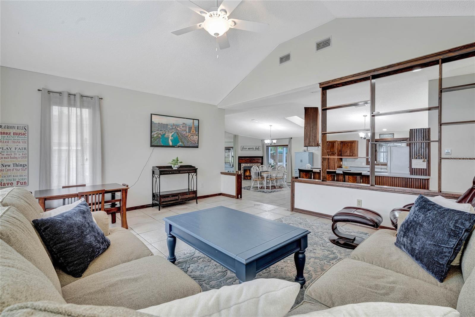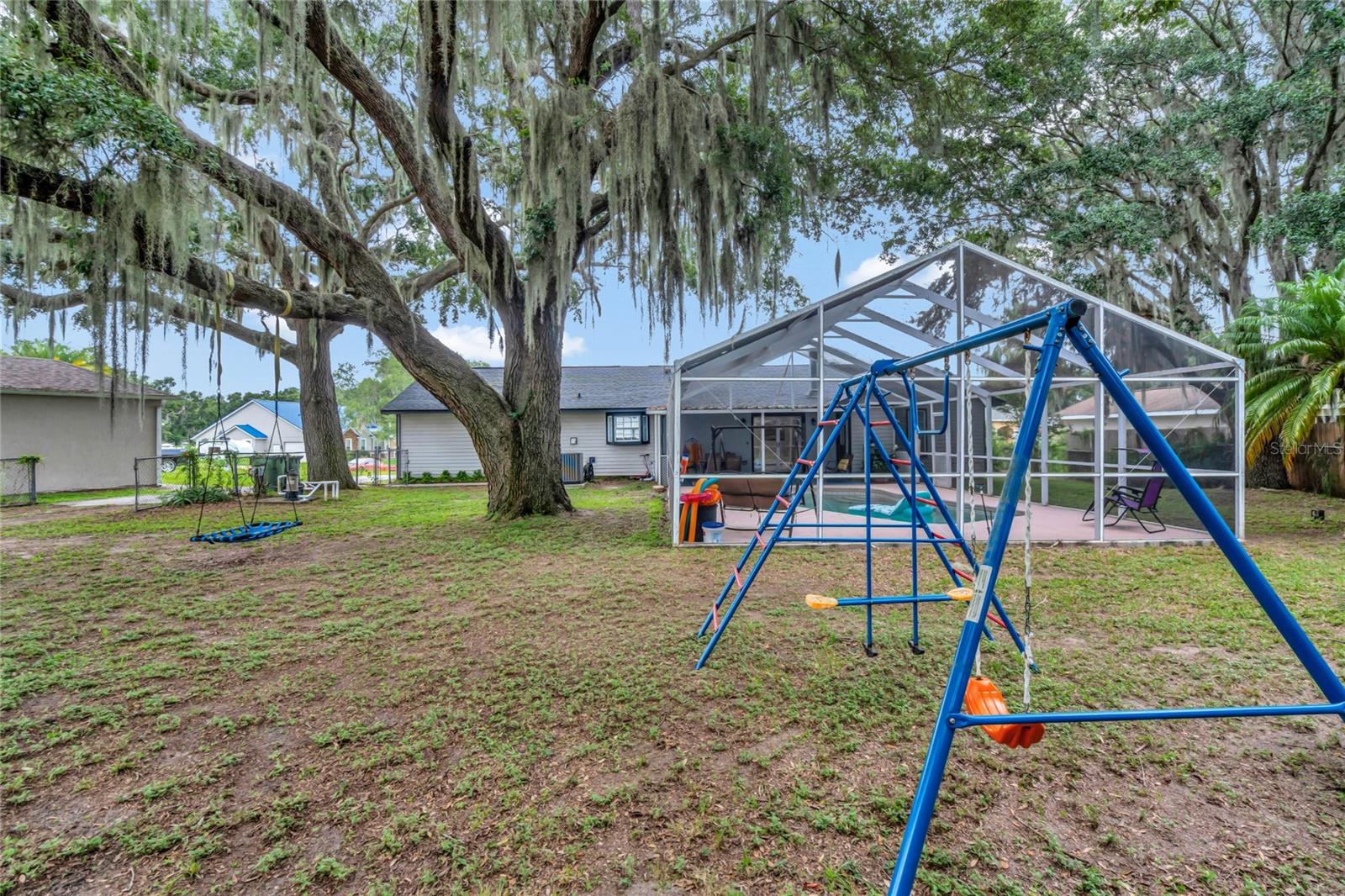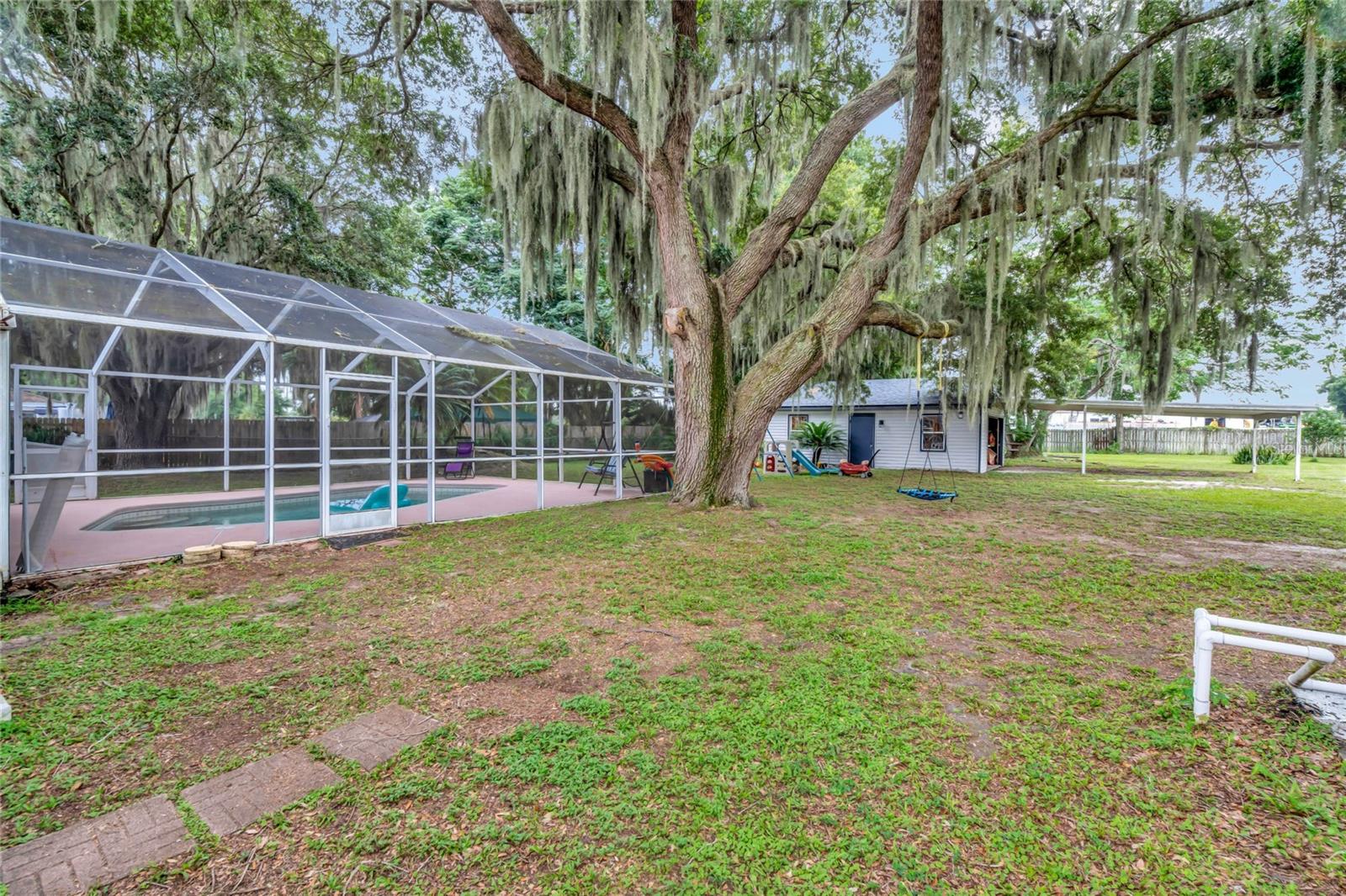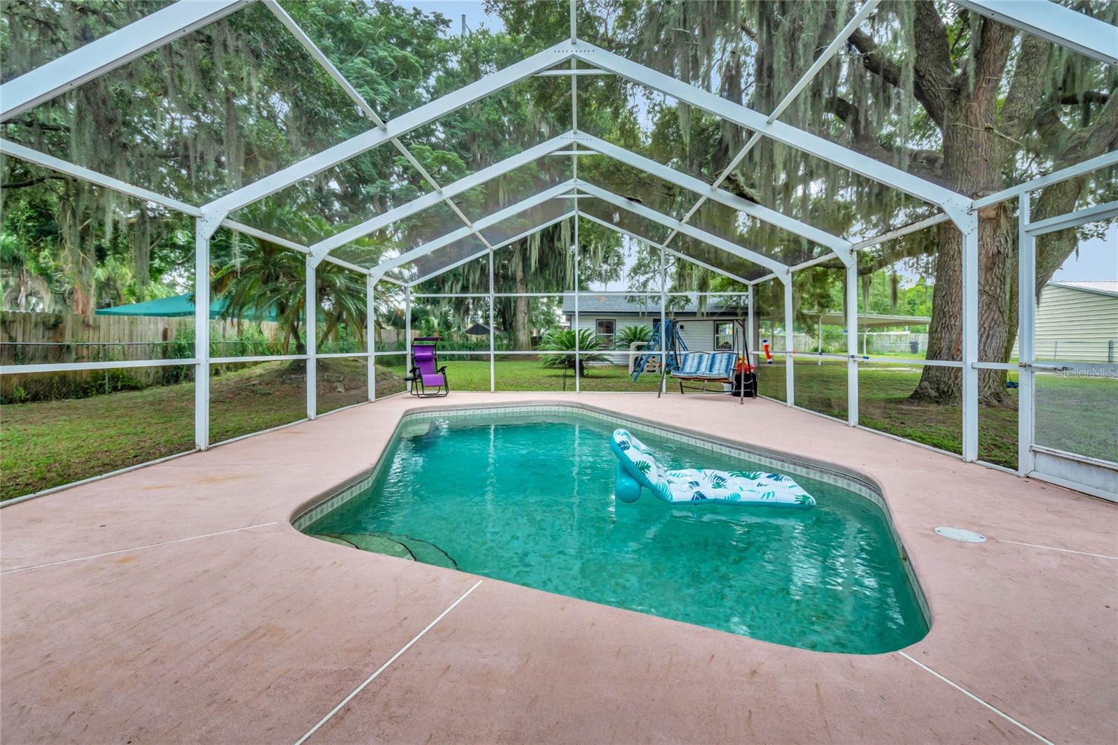 DREAM HOME ALERT! RV PARKING - BOAT PARKING - CHAIN OF LAKES PRIVATE ACCESS - POOL 2yr old new ROOF - 3 yr old new HVAC & DUCTS/with returns - 4 yr old HOT WATER HEATER Welcome to this stunning 3 bedroom plus bonus room/office/den, 2 bathroom home with an open split floor plan, complete with a screened in-ground pool and lanai. Situated on a spacious 0.57 acre lot, packed with amenities this large property still has plenty of room for a garden or other hobbies. This property also boasts a detached workshop/garage, providing ample space for all your hobbies and even a garden. Located in the coveted Water's Edge neighborhood, this home offers convenient access to Lake Griffin (part of the Harris Chain of Lakes) via private dock and boat ramp just a block away. Inside, the master suite includes a large office/flex room, while one of the spare bedrooms features a spacious loft, perfect for visitors or additional storage. The generous open floor plan encompasses a centrally located kitchen with an attached bar top, a dining area, a living room, and a step-up family room. Whether you're hosting an intimate gathering or a larger event, this layout accommodates it all. Natural light floods the main living area through a skylight and numerous large windows, enhancing the welcoming ambiance. For cozy evenings, a fireplace awaits in the living space. The 657-square-foot detached workshop/garage, equipped with electricity, is a hobbyist's dream, offering endless possibilities, from woodworking to car maintenance or boat storage. Automatic LED flood lights illuminate both the garage and the house, lighting up the yard from dusk to dawn. The chain-linked fence along the back of the house ensures the safety of your furry friends and all your cherished possessions. Ample parking is available both on the street and on the property. Additional features include a newer AC system for a comfortable indoor climate, a newer water heater (approx. 5 years old), a new roof (installed in 2022) providing peace of mind, updated plumbing in the kitchen, laundry room, and both bathrooms, as well as a reverse osmosis water filtration system for drinking water. For added convenience, the property includes generator hook-ups, ready for your generator to keep essential appliances and services running during power outages. This unique property in a beautiful neighborhood offers endless possibilities. Don't miss your chance to explore it in person!