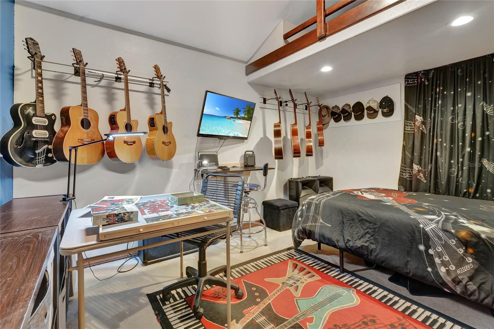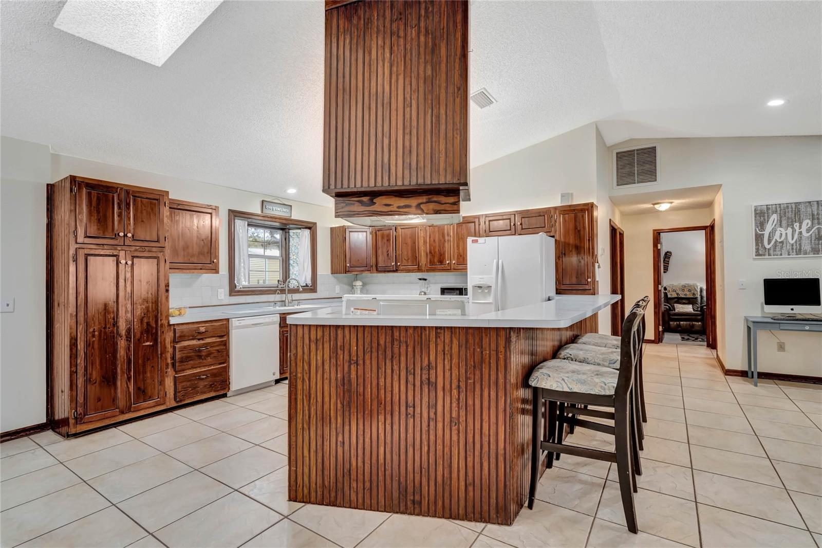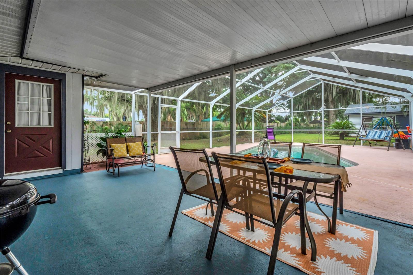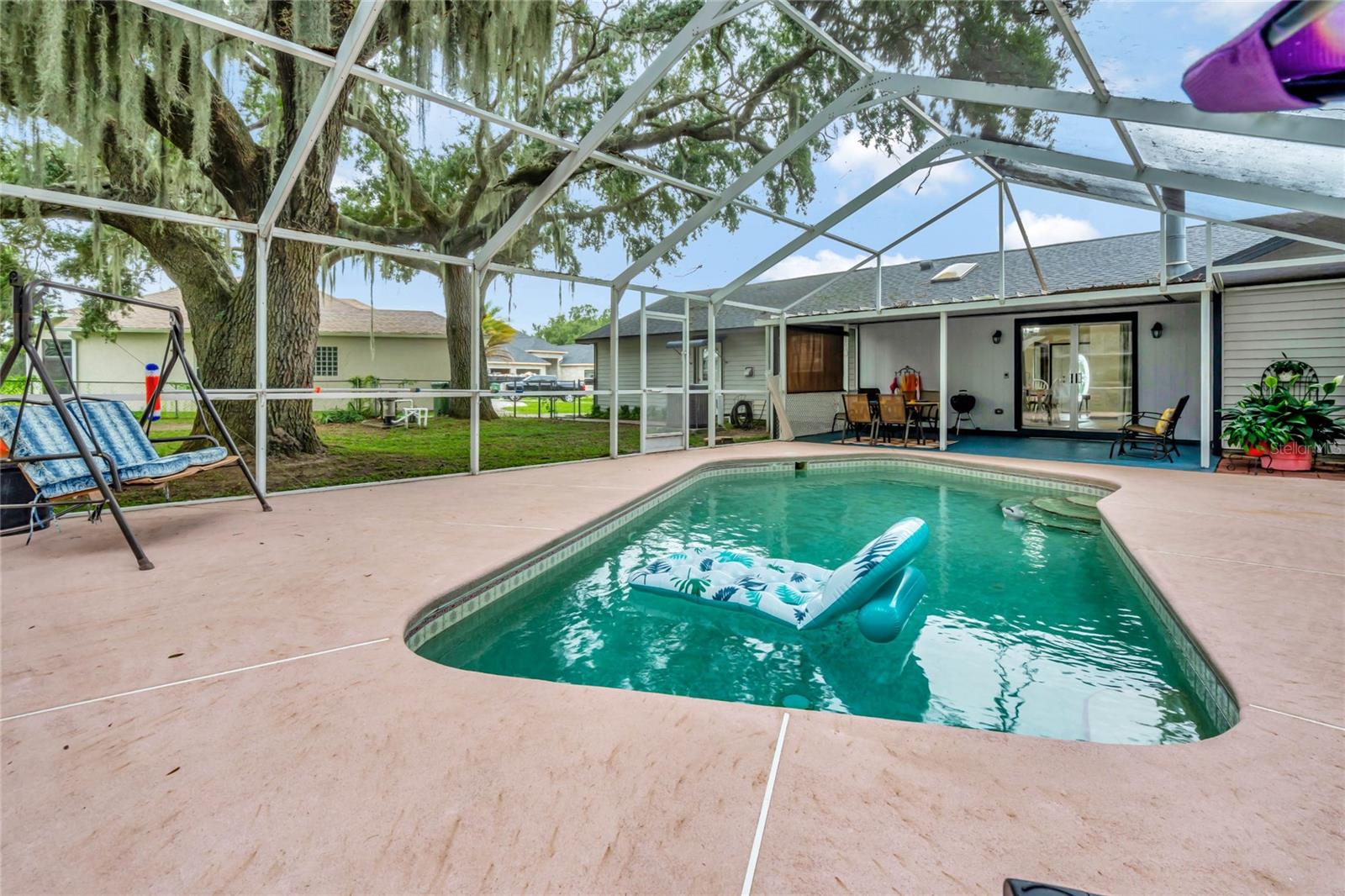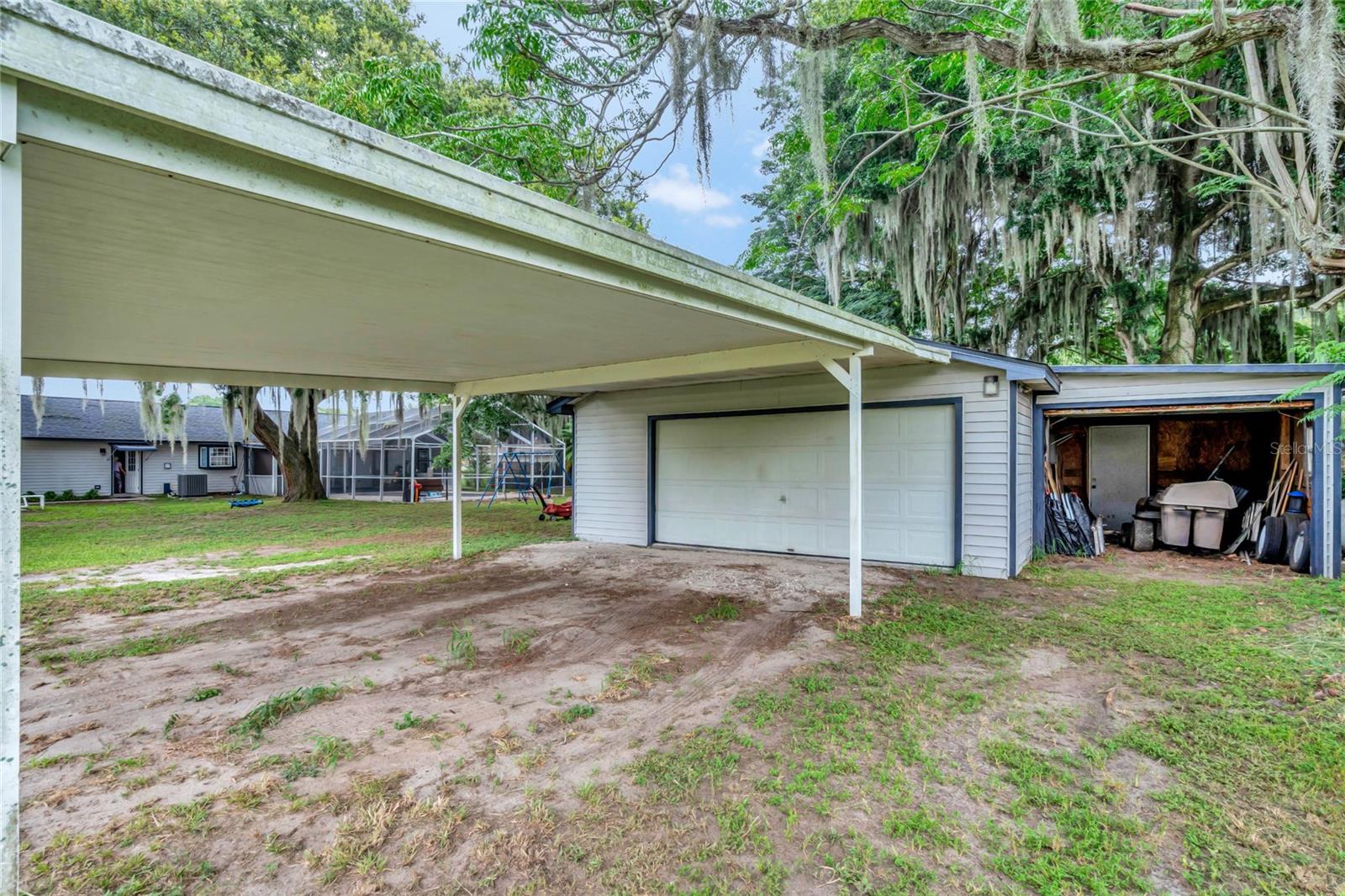 DREAM HOME ALERT! RV PARKING - BOAT PARKING - CHAIN OF LAKES PRIVATE ACCESS - POOL 2yr old new ROOF - 3 yr old new HVAC & DUCTS/with returns - 4 yr old HOT WATER HEATER Welcome to this stunning 3 bedroom plus bonus room/office/den, 2 bathroom home with an open split floor plan, complete with a screened in-ground pool and lanai. Situated on a spacious 0.57 acre lot, packed with amenities this large property still has plenty of room for a garden or other hobbies. This property also boasts a detached workshop/garage, providing ample space for all your hobbies and even a garden. Located in the coveted Water's Edge neighborhood, this home offers convenient access to Lake Griffin (part of the Harris Chain of Lakes) via private dock and boat ramp just a block away. Inside, the master suite includes a large office/flex room, while one of the spare bedrooms features a spacious loft, perfect for visitors or additional storage. The generous open floor plan encompasses a centrally located kitchen with an attached bar top, a dining area, a living room, and a step-up family room. Whether you're hosting an intimate gathering or a larger event, this layout accommodates it all. Natural light floods the main living area through a skylight and numerous large windows, enhancing the welcoming ambiance. For cozy evenings, a fireplace awaits in the living space. The 657-square-foot detached workshop/garage, equipped with electricity, is a hobbyist's dream, offering endless possibilities, from woodworking to car maintenance or boat storage. Automatic LED flood lights illuminate both the garage and the house, lighting up the yard from dusk to dawn. The chain-linked fence along the back of the house ensures the safety of your furry friends and all your cherished possessions. Ample parking is available both on the street and on the property. Additional features include a newer AC system for a comfortable indoor climate, a newer water heater (approx. 5 years old), a new roof (installed in 2022) providing peace of mind, updated plumbing in the kitchen, laundry room, and both bathrooms, as well as a reverse osmosis water filtration system for drinking water. For added convenience, the property includes generator hook-ups, ready for your generator to keep essential appliances and services running during power outages. This unique property in a beautiful neighborhood offers endless possibilities. Don't miss your chance to explore it in person!