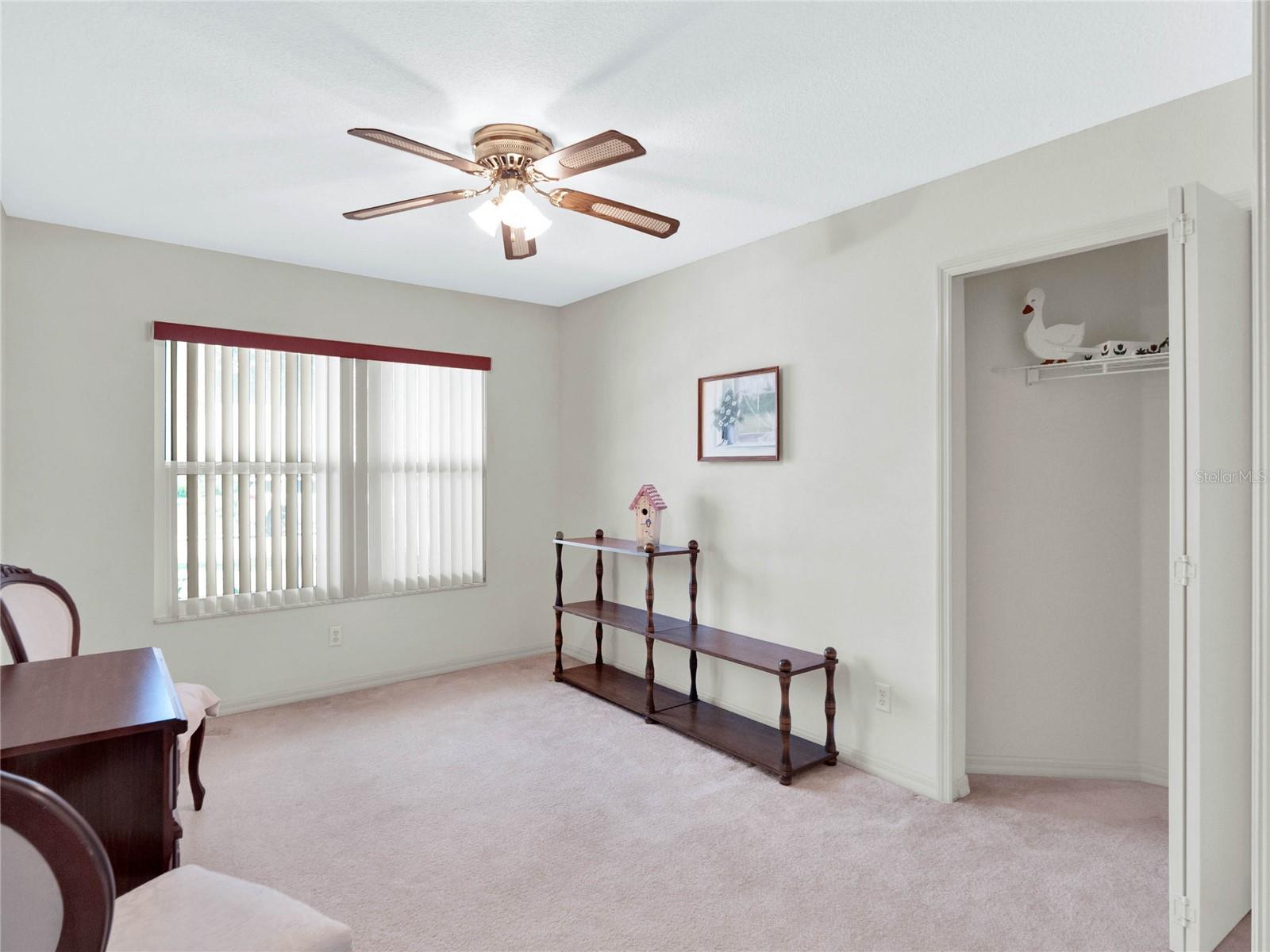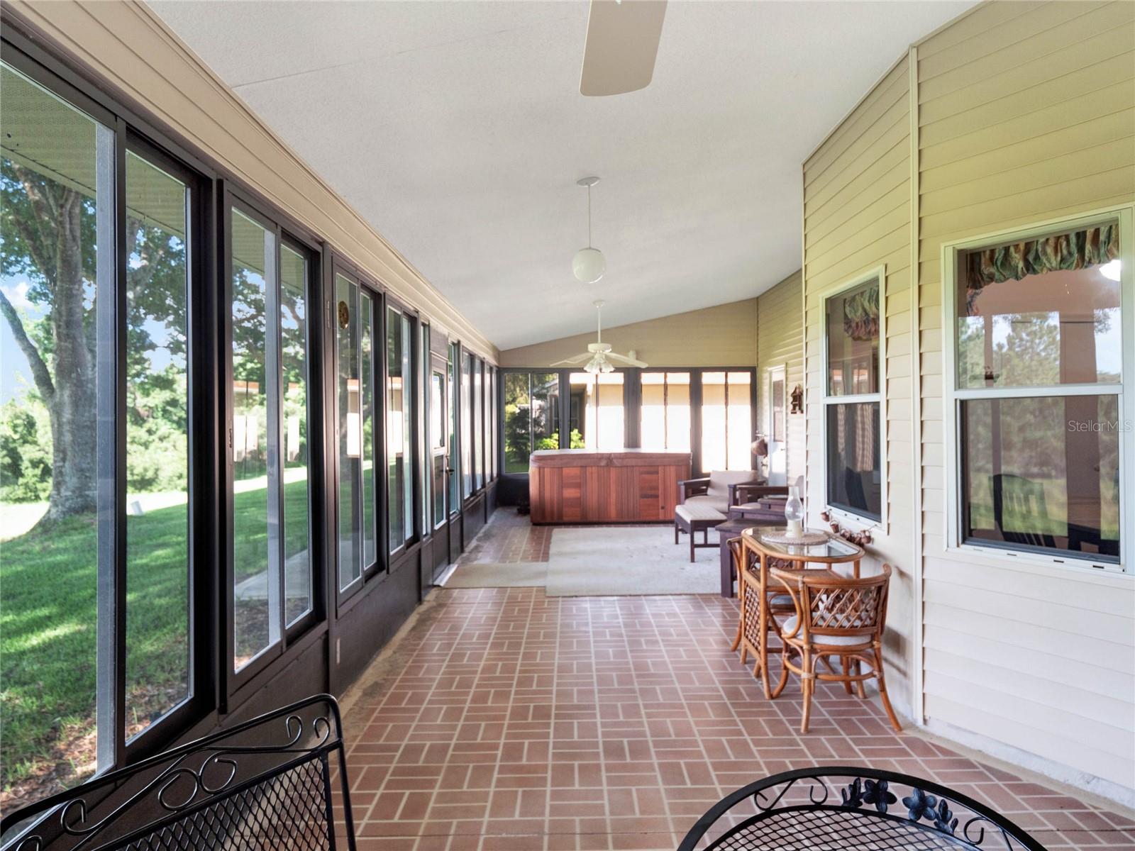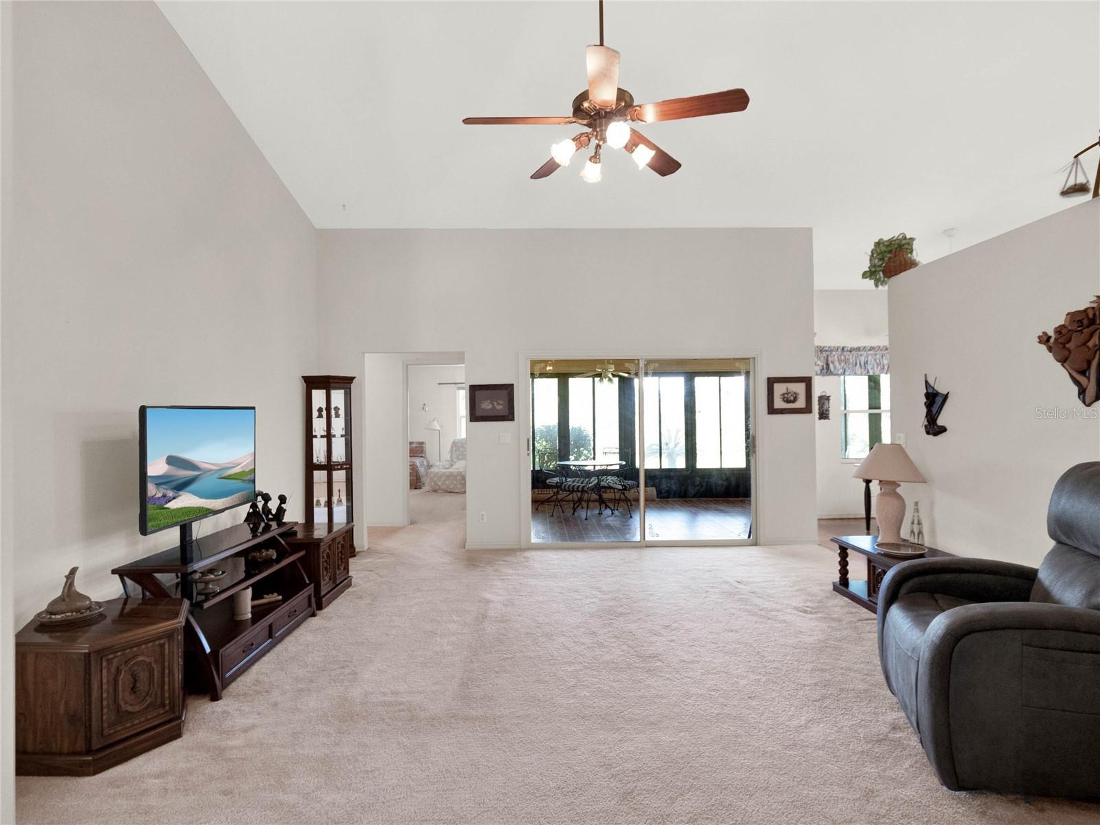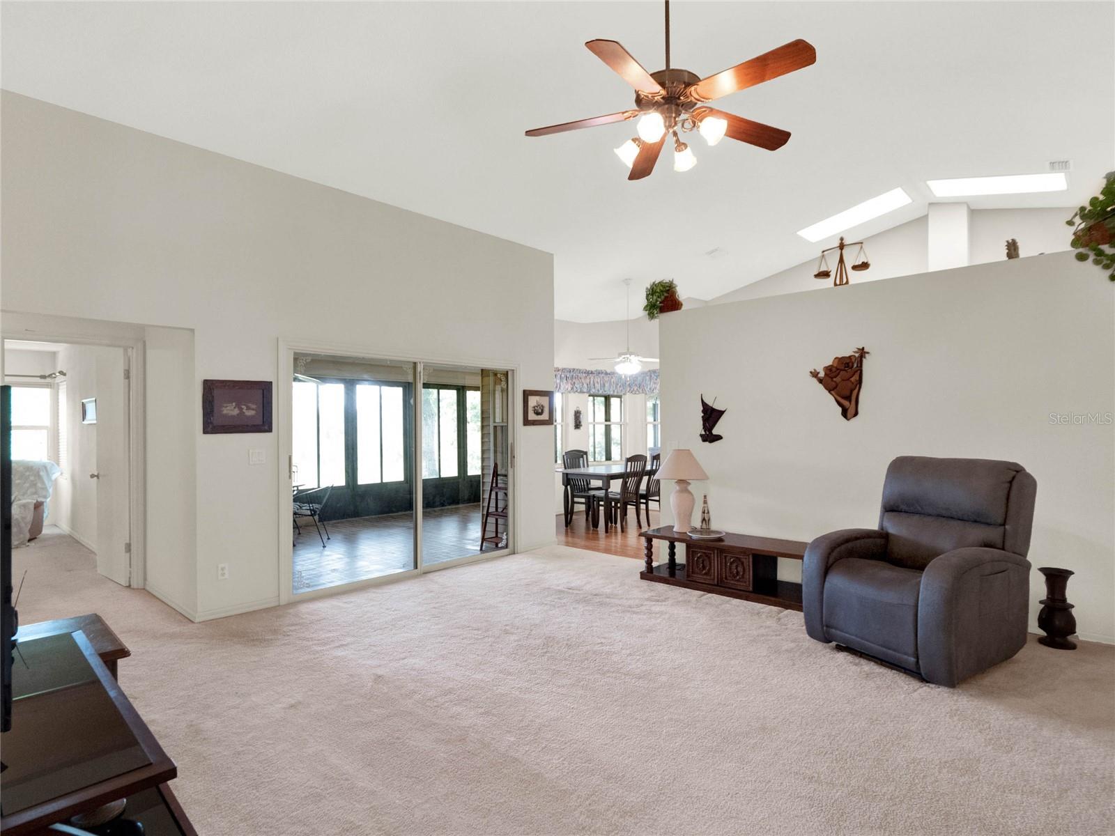 Great price and lot with this incredible custom-built 2202 sq. ft. split floor plan home. Step inside to discover a spacious bonus room with versatile potential. This room could be a den, media room, office, craft room, or a studio-style 5th bedroom with views of the front greenspace. The living room is the central hub of this home with access through sliders to the expansive Florida room that has convenient access to the primary bathroom, creating a private retreat surrounded by Florida's natural beauty and wildlife. Outdoors enjoy an open-air patio with a designated gas line for grilling. The well-appointed kitchen features laminate floors, ample cabinet and countertop space, and a charming eat-in area with conservation views. The primary bedroom has an over-sized closet and a convenient ensuite bathroom with large vanity and shower. With two bedrooms on one side of the home, and two additional bedrooms on the other. It is perfectly set up for multi-generational living, or plenty of privacy for visiting friends and family. The home has an inside utility room and the garage offers a side entry door, peg board walls, storage or workspace and a garage door screen. With this custom floorplan, it is sure to be one you have never seen before in the community! Notable features include HVAC 2023, GARAGE DOOR 2023, WATER HEATER 2016, WINDOWS 2016, and much more! This home is located in Highland Lakes, a popular and active 55+ community with acres of shady mature landscaping and conservation views to enjoy walks and bike rides. Stay active year-round with a heated indoor pool, or enjoy the sunshine at the outdoor pool, tennis courts, horseshoe pits, bocce ball, meeting/card room, fitness room, shuffleboard courts, indoor pickleball courts, community events, billiards, ping pong, library, craft room, nature trails, catch and release fishing, softball team/field, covered outdoor pavilion with grills and metal/woodworking shop available. Community has a fenced RV/boat storage lot with over 250 spaces at no additional fee and SO MUCH MORE!