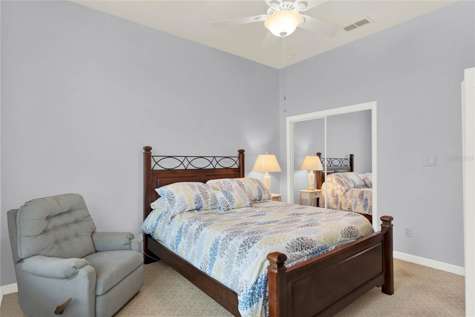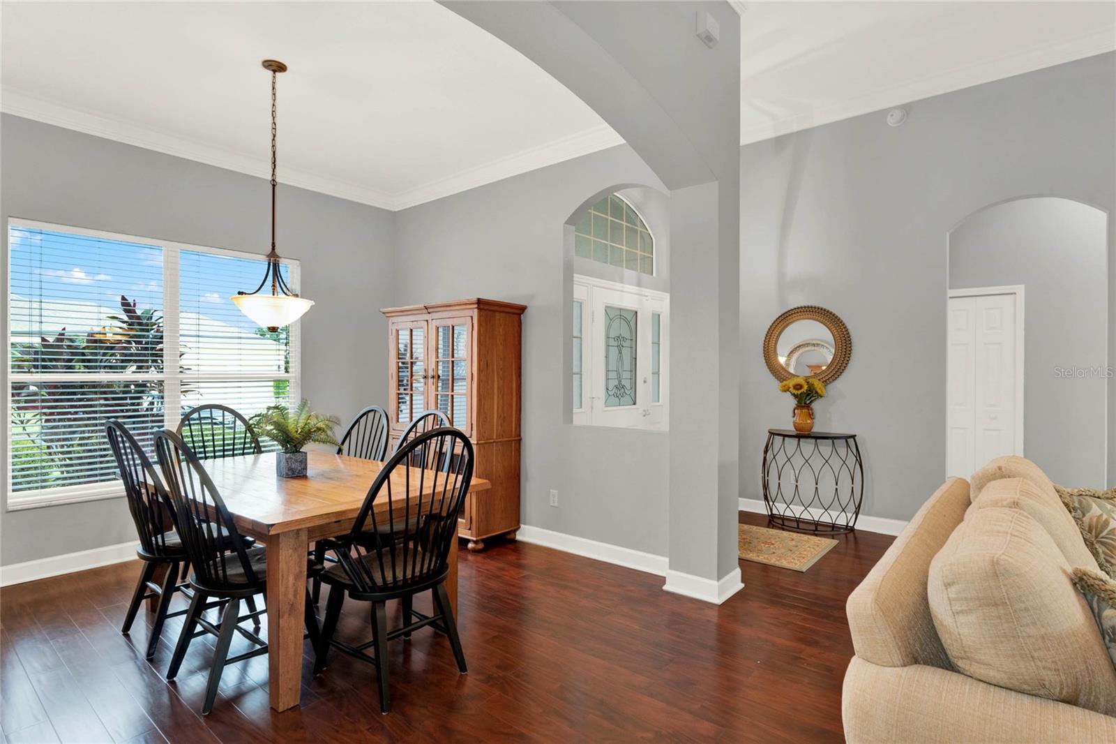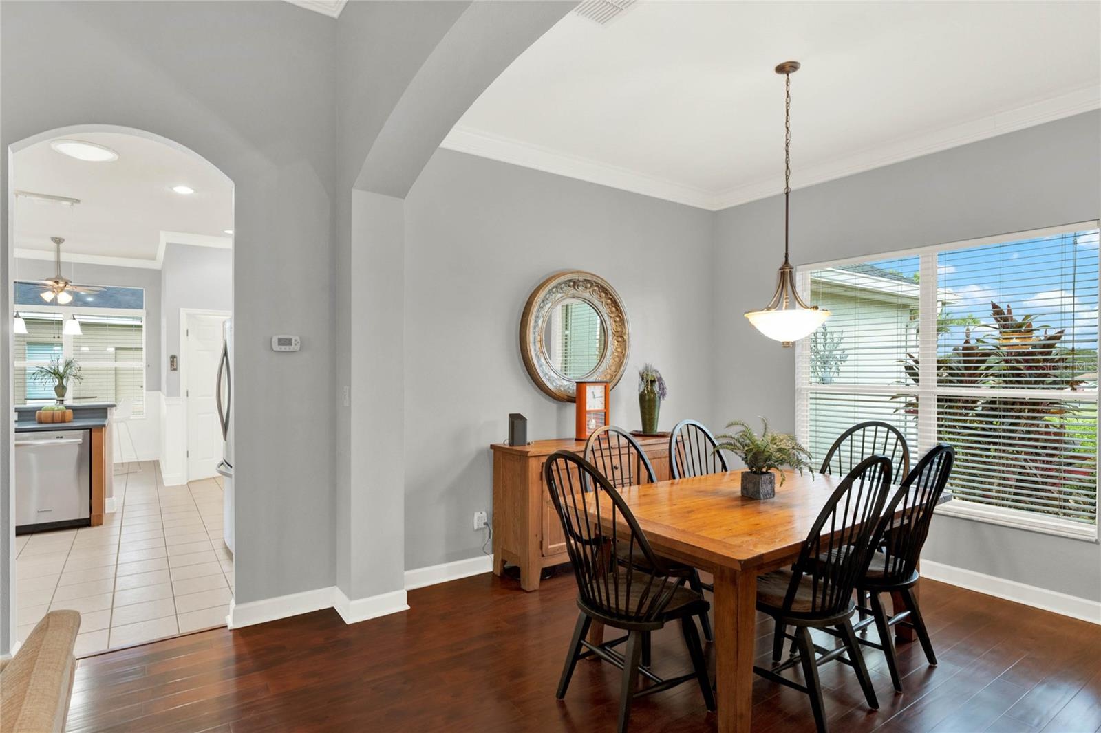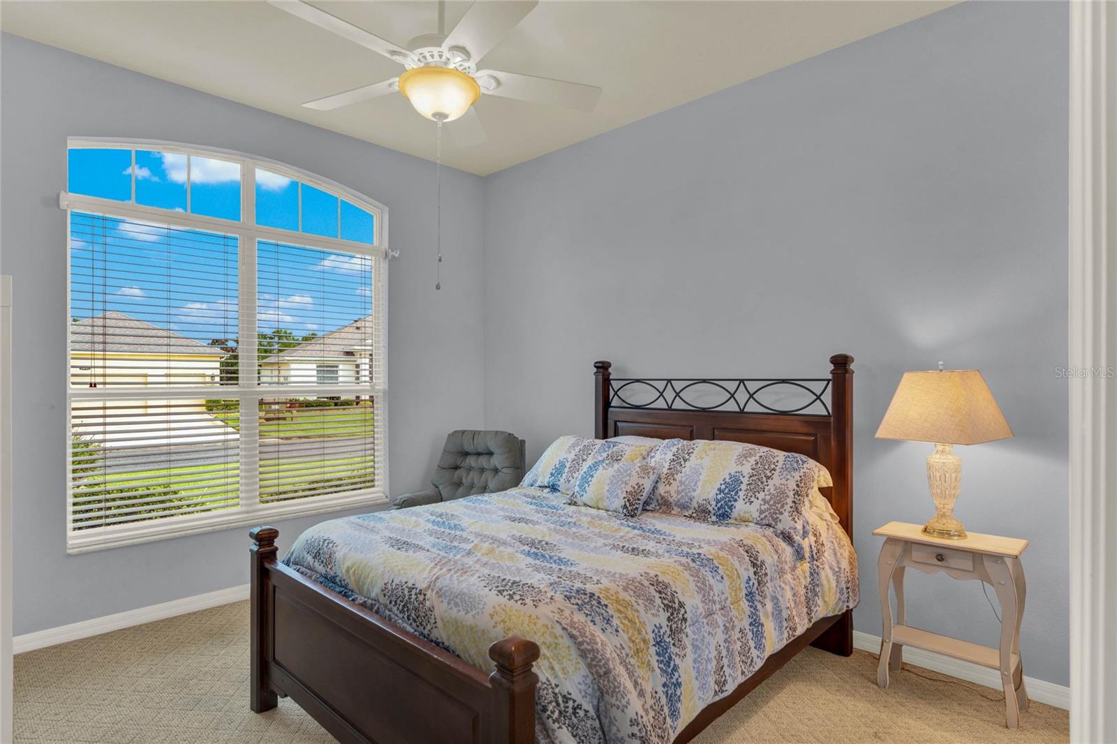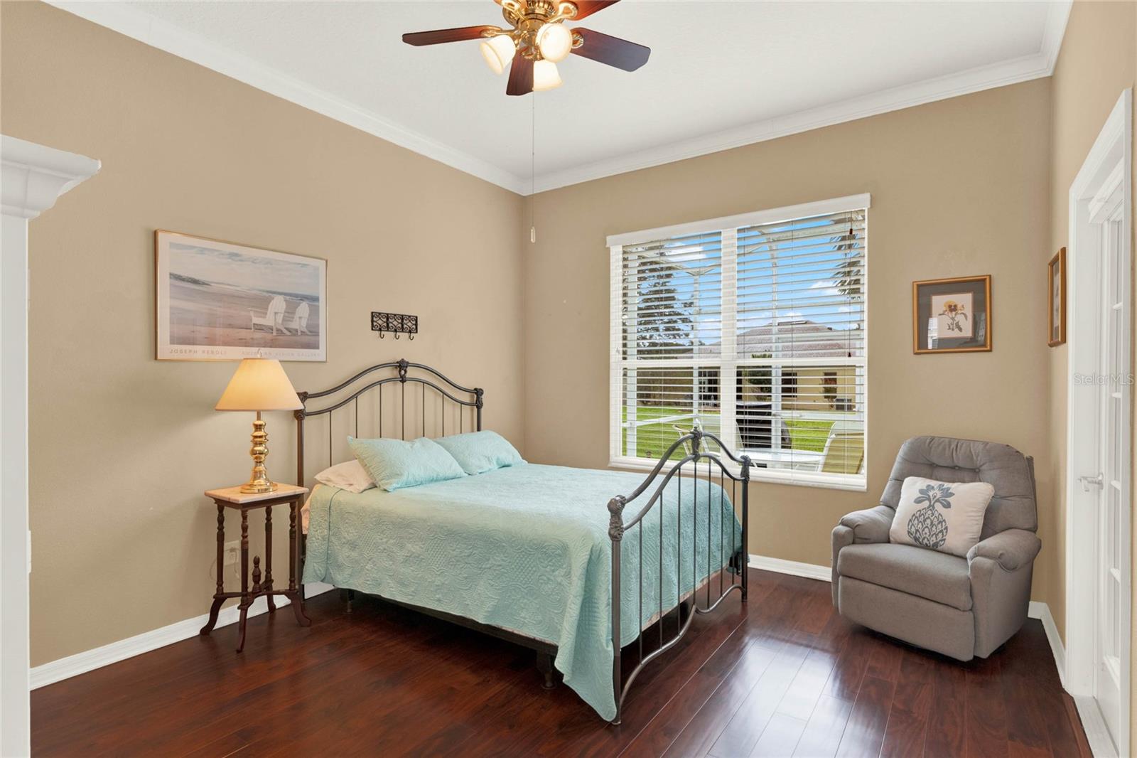 When you arrive to the 2 bed plus den 2 bath home you’ll immediately be impressed with the lush landscaping and open green space on this oversized lot. Enter through a screened entry to over 2,300 square feet of well-appointed living space, , arched entryways, crown molding and Florida sunshine filling the home. The kitchen includes Corian countertops, stainless steel appliances, tiled backsplash, eat-in bar with pendant lighting and adjacent breakfast nook. Extend your entertainment into the recently renovated and spacious Florida Room overlooking the beautifully landscaped backyard. The master suite includes a sitting area and oversized walk in closet and the master bath with dual split vanity, cultured marble countertops and glass enclosed walk-in shower. The den can be used as a hobby room, office, or can be used as a third bedroom. Oversized garage with electronic screen has 2 pull downs for attic access that gives you plenty of storage. Located close to the south entrance for added convenience. The Plantation at Leesburg offers 24 hour guard gated security with endless amenities for 55+ residents. Three clubhouses and two 18-hole golf courses offer something for everyone. Amenities include 3 pool areas, hot tub, pickleball, a softball field with men and women’s community teams, tennis, bocce ball, archery range, and much more. This community also features the on site restaurant so you can stay close for great food and drinks. HOME COMES TURN KEY FURNISHED INCLUDING A 4 SEATER GOLF CART
