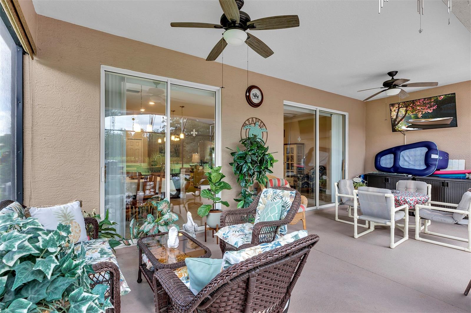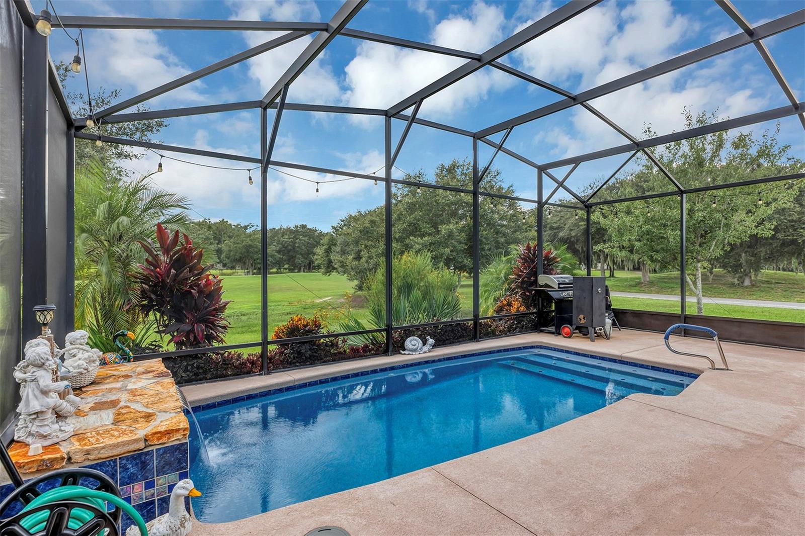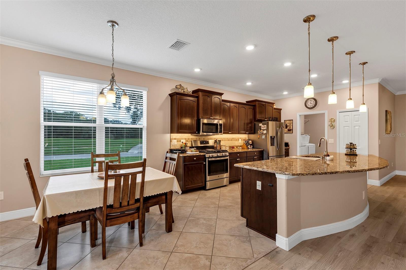 Affordable Golf-Front, Pool Home living in a Guard Gated Active Adult Golf Community. Discover a lifestyle of comfort and leisure you've waited for your whole life for in this charming golf-front, pool home located in the popular, high-demand Arlington Ridge Guard Gated Golf Community With a low HOA of $117 per month, Built in 2018, this 3 bedroom 2 bath 2,001 square foot home with 2 Car + Golf Cart Garages. Home boasts modern design and low-maintenance stucco construction, open-concept floor plan and 9 foot ceilings enhance the sense of space and inviting atmosphere and overlooks the golf course. This modern design has rounded corners on sheetrock, all hard low-maintenance flooring consisting of NO CARPET only tile and BRAND NEW! luxury vinyl plank flooring throughout the home. Kitchen is open to great room w/ high ceiling & crown molding and dining room are perfect for entertaining and features ample wood cabinetry, granite counters, Large Vanda style bowed island with bar-top and abundant natural light. The range and fridge are included. The master bedroom offers trayed ceiling a scenic view of the golf course and features an en-suite bath with dual vanities w/ granite tops, a walk-in Roman shower, walk-in closet, and a private water toilet closet. A 900+ s.f. screened lanai and hard to find private lot overlooking the golf course are perfect for entertaining or simply relaxing with room to add a year round outdoor kitchen. Watch your spouse and friends golf while enjoying your favorite drink. The backyard is private, no golfers in your backyard If you're looking for paradise, You've found it. Benefit from huge discounts on homeowner's insurance due to the home's high construction standards being built to wind code, high elevation for flood protection, and a low wind zone, also qualifying for additional insurance discounts. The low HOA of $117/month includes, Wi-Fi router for signal coverage throughout the home, 200+ cable TV channels, and 250-megabyte high-speed internet. Two DVRs are also included for recording your favorite shows which is all included in the low HOA of $117/month making this community even more affordable than nearby communities This sought-after community offers a range of amenities, including an 18-hole golf course where you can get a tee time year round, driving range, putting greens, lighted tennis and pickleball courts, heated swimming pools, hot tub, fitness facilities, billiards, a restaurant, tavern, and a free movie theater. The community is golf cart-friendly, with sidewalks for strolls and low-speed limit streets perfect for bicycling. Enjoy the convenience to grocery stores, restaurants, banks, and pharmacies within a 5-minute drive. Emergency services are just 10 minutes away, and a free boat ramp and fishing pier on a 15,000-acre lake are nearby. Community is 20 minutes from malls, restaurants, and a 12-screen movie theater, 45 minutes from Orlando, Major theme parks, and the airport, 90 minutes to Daytona Beach & Atlantic Ocean and Gulf of Mexico Clearwater SJS 2024©
