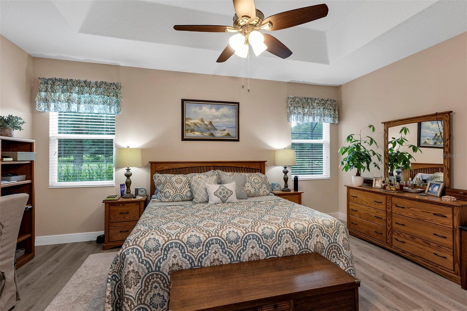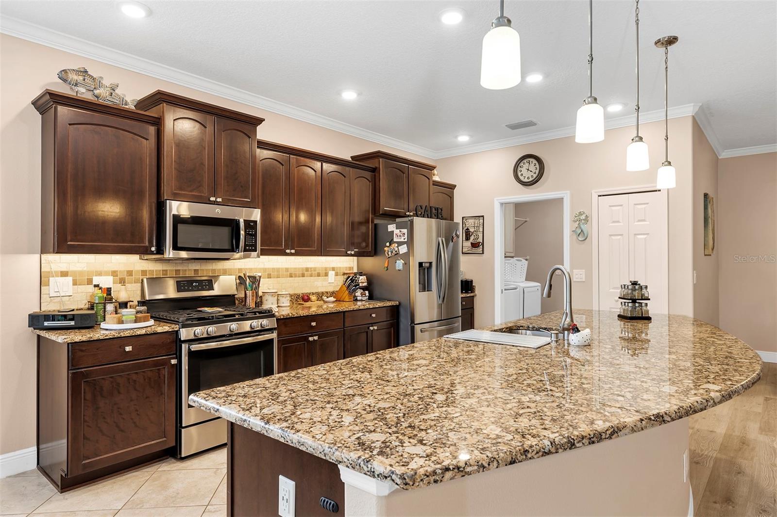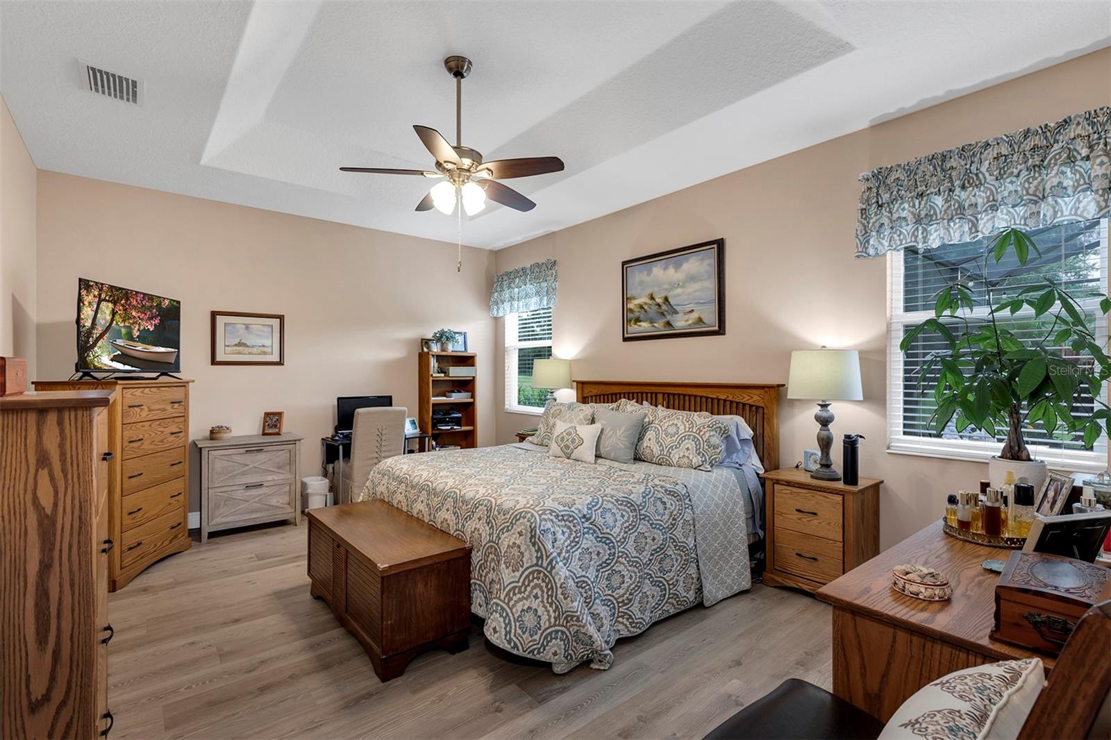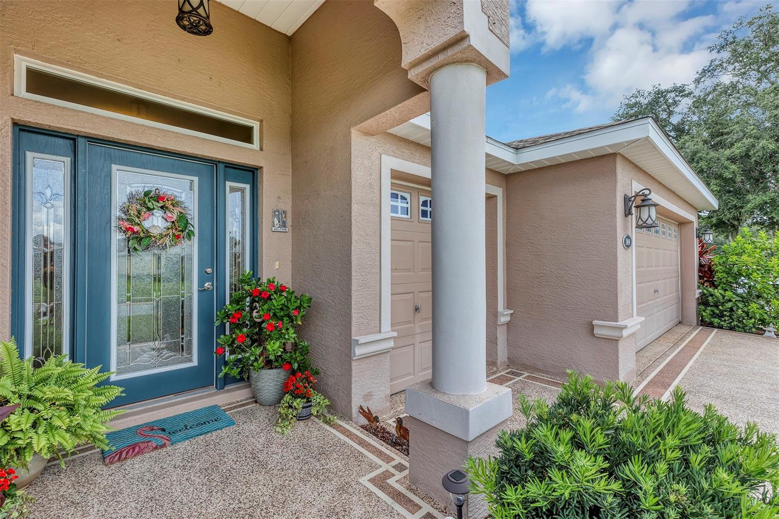 Affordable Golf-Front, Pool Home living in a Guard Gated Active Adult Golf Community. Discover a lifestyle of comfort and leisure you've waited for your whole life for in this charming golf-front, pool home located in the popular, high-demand Arlington Ridge Guard Gated Golf Community With a low HOA of $117 per month, Built in 2018, this 3 bedroom 2 bath 2,001 square foot home with 2 Car + Golf Cart Garages. Home boasts modern design and low-maintenance stucco construction, open-concept floor plan and 9 foot ceilings enhance the sense of space and inviting atmosphere and overlooks the golf course. This modern design has rounded corners on sheetrock, all hard low-maintenance flooring consisting of NO CARPET only tile and BRAND NEW! luxury vinyl plank flooring throughout the home. Kitchen is open to great room w/ high ceiling & crown molding and dining room are perfect for entertaining and features ample wood cabinetry, granite counters, Large Vanda style bowed island with bar-top and abundant natural light. The range and fridge are included. The master bedroom offers trayed ceiling a scenic view of the golf course and features an en-suite bath with dual vanities w/ granite tops, a walk-in Roman shower, walk-in closet, and a private water toilet closet. A 900+ s.f. screened lanai and hard to find private lot overlooking the golf course are perfect for entertaining or simply relaxing with room to add a year round outdoor kitchen. Watch your spouse and friends golf while enjoying your favorite drink. The backyard is private, no golfers in your backyard If you're looking for paradise, You've found it. Benefit from huge discounts on homeowner's insurance due to the home's high construction standards being built to wind code, high elevation for flood protection, and a low wind zone, also qualifying for additional insurance discounts. The low HOA of $117/month includes, Wi-Fi router for signal coverage throughout the home, 200+ cable TV channels, and 250-megabyte high-speed internet. Two DVRs are also included for recording your favorite shows which is all included in the low HOA of $117/month making this community even more affordable than nearby communities This sought-after community offers a range of amenities, including an 18-hole golf course where you can get a tee time year round, driving range, putting greens, lighted tennis and pickleball courts, heated swimming pools, hot tub, fitness facilities, billiards, a restaurant, tavern, and a free movie theater. The community is golf cart-friendly, with sidewalks for strolls and low-speed limit streets perfect for bicycling. Enjoy the convenience to grocery stores, restaurants, banks, and pharmacies within a 5-minute drive. Emergency services are just 10 minutes away, and a free boat ramp and fishing pier on a 15,000-acre lake are nearby. Community is 20 minutes from malls, restaurants, and a 12-screen movie theater, 45 minutes from Orlando, Major theme parks, and the airport, 90 minutes to Daytona Beach & Atlantic Ocean and Gulf of Mexico Clearwater SJS 2024©