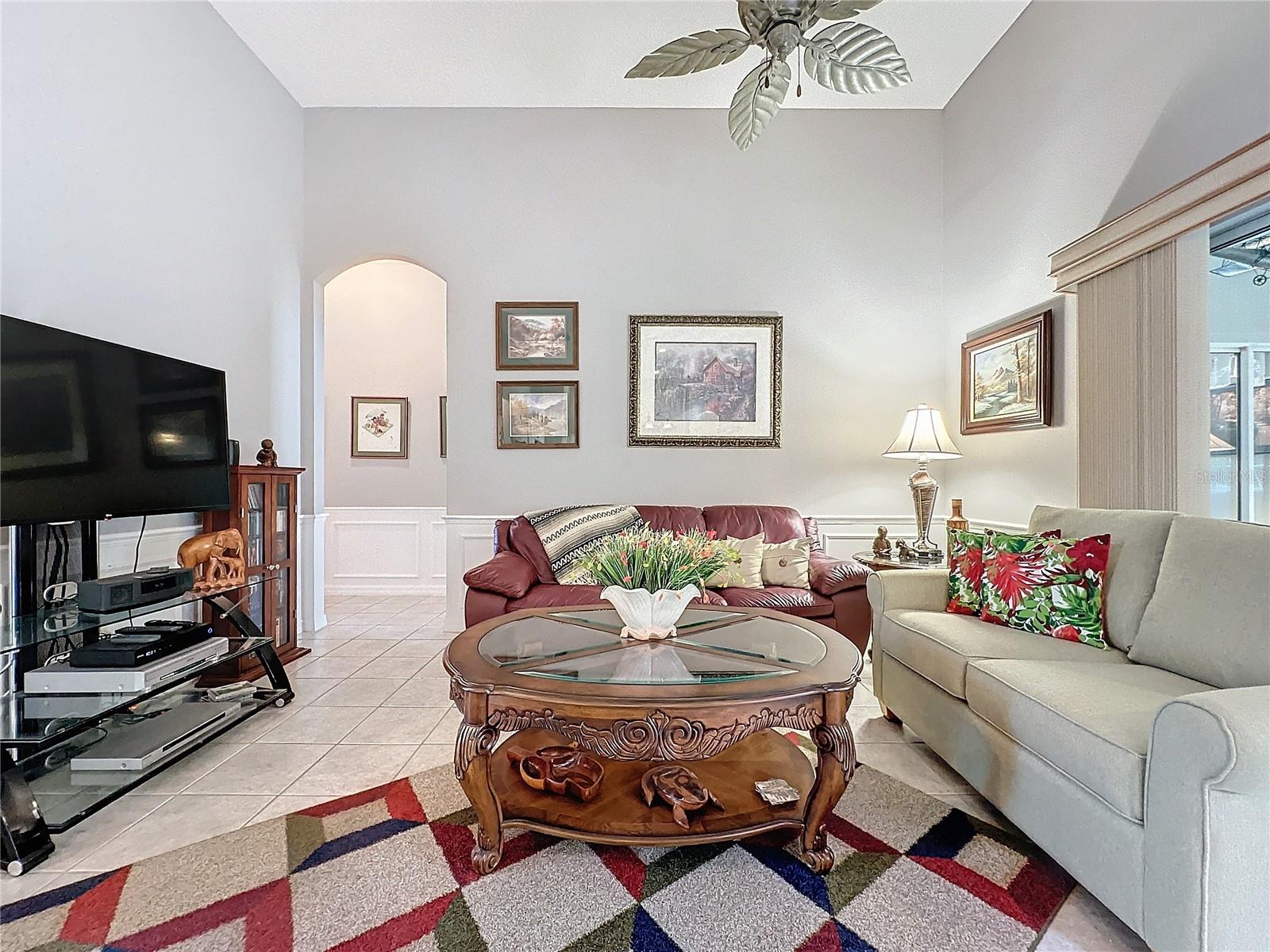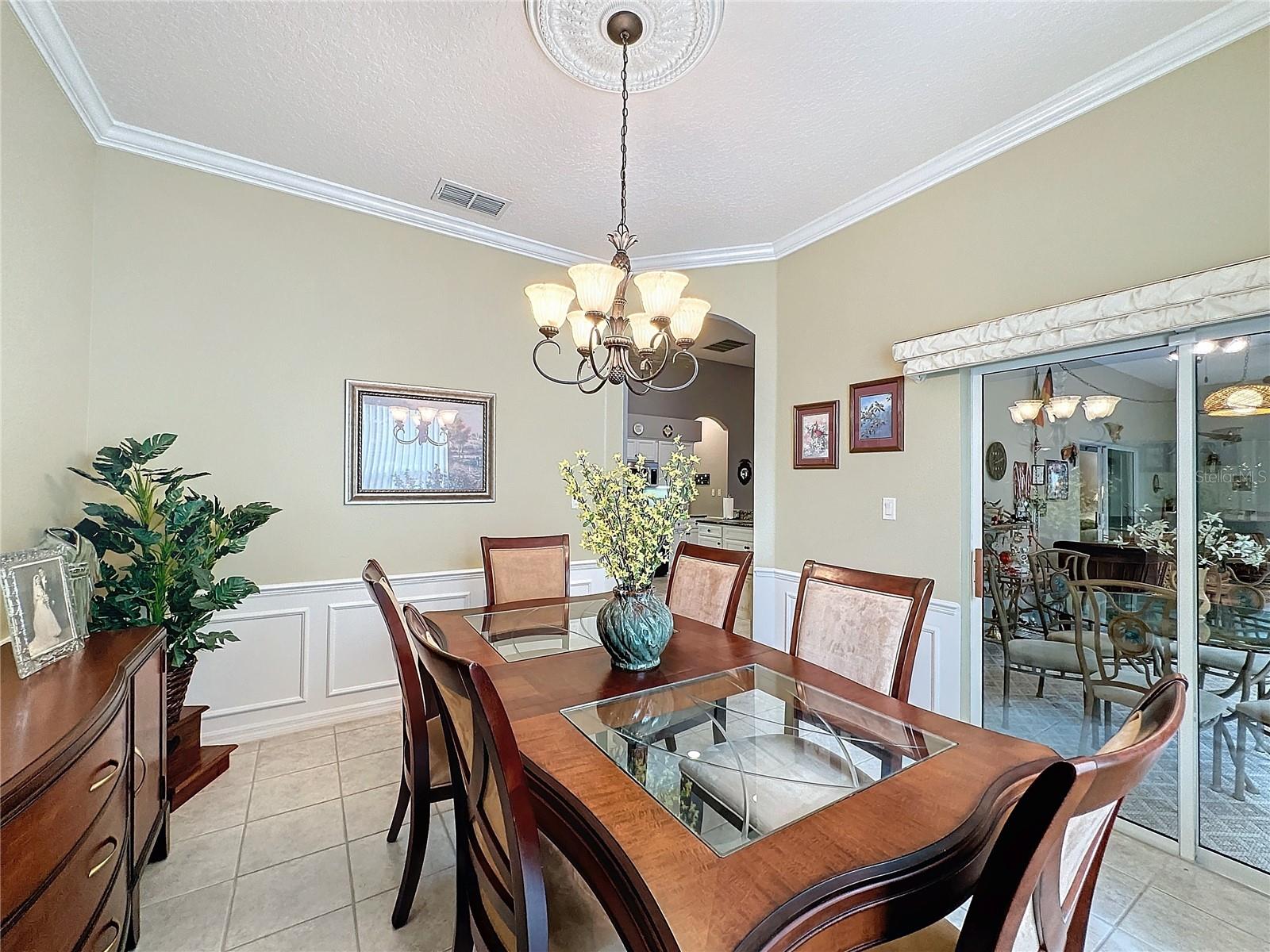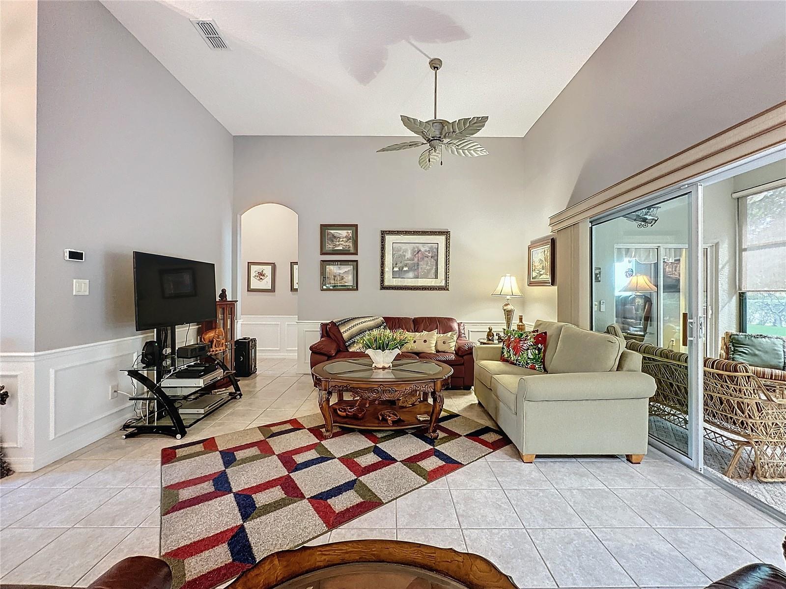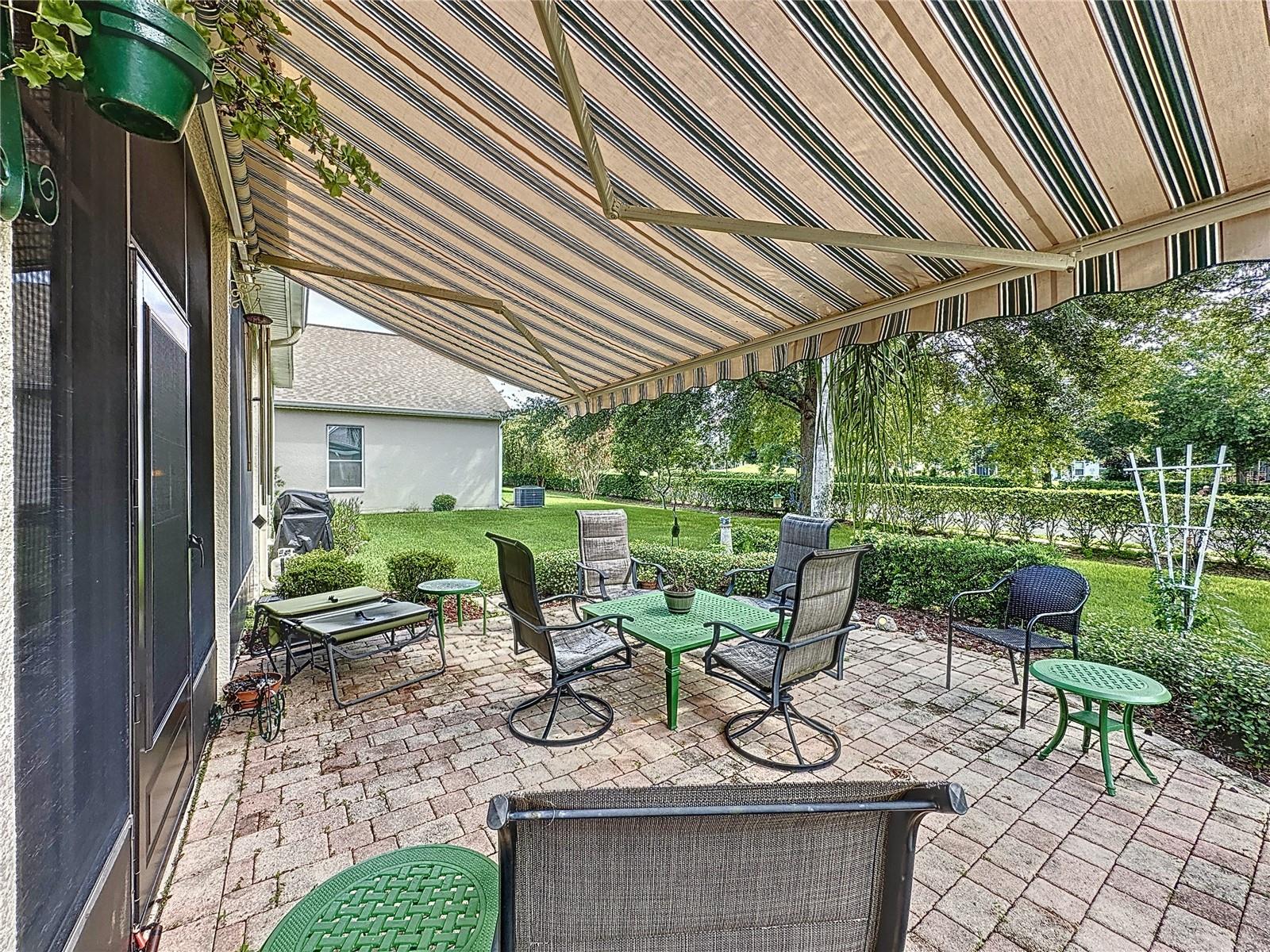 Welcome to 24112 Robinwood, in the Riverside Village at Plantation at Leesburg. This beautifully maintained Ixora Model looks like a model home. From the minute you walk into this home you are struck by its attention to detail. The foyer, great room, dining room and hall feature custom chair rail and wainscoting,while the dining room and den have custom crown moulding. The white kitchen cabinets are contrasted with granite countertops and stainless steel and black appliances. The kitchen also features a walk in pantry. This is a perfect house for entertaining with it's open floorplan and full size formal dining room. The floors throughout the main living area are ceramic tile. The fully enclosed 290 sq. ft. lanai is air conditioned and heated and is NOT included in the 1714 Sq.ft. of living space stated in public records. The lanai looks out onto a private backyard with a paver patio and awning. The large Owner's suite has 2 walk in closets that lead into a large bathroom with 2 separate vanities and a large stall shower.The bedrooms and den feature hardwood/laminte floors. The 2 car garage also has a tandem area for workshop or golfcart. The Plantation is a 55+ golf course community located in Leesburg, FL. It haas 3 clubhouses, 3 pools and spas, fitness centers, an event center, (2) 18 hole golf courses, a driving range,Pro shop, restaurant, tennis and pickleball courts, bocci ball, softball and many more clubs and activities. Motivated Seller!