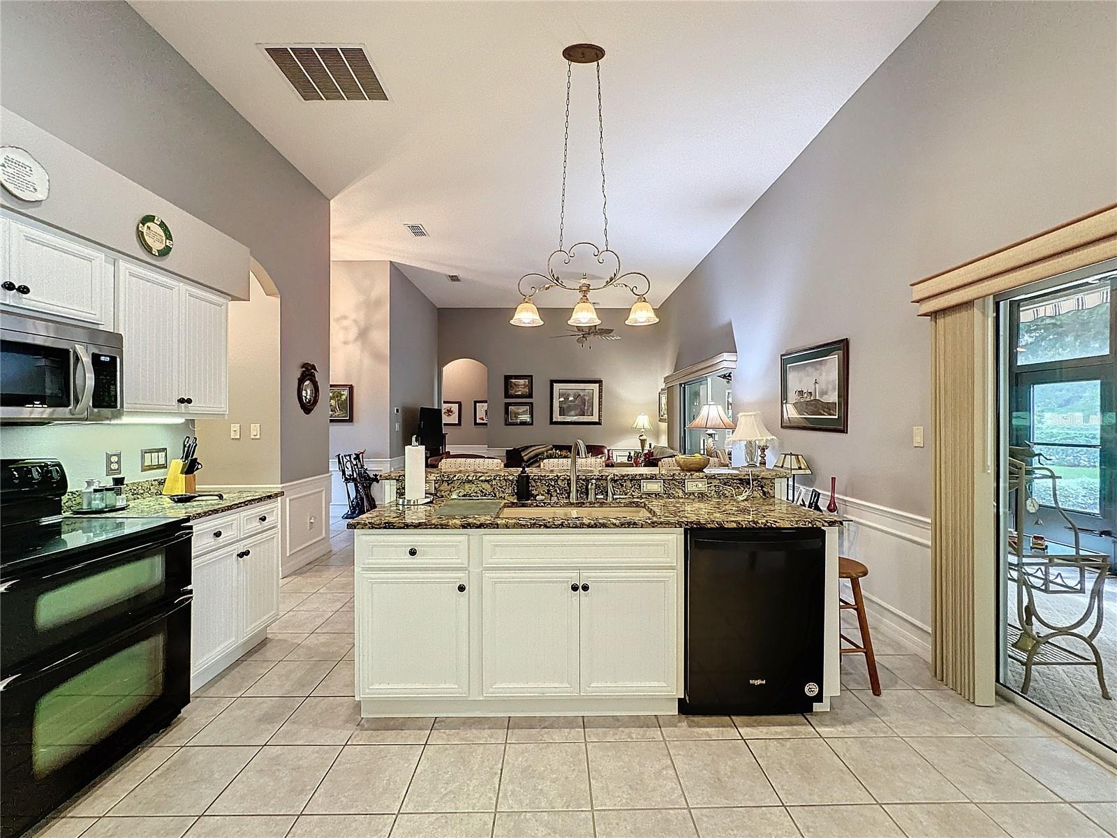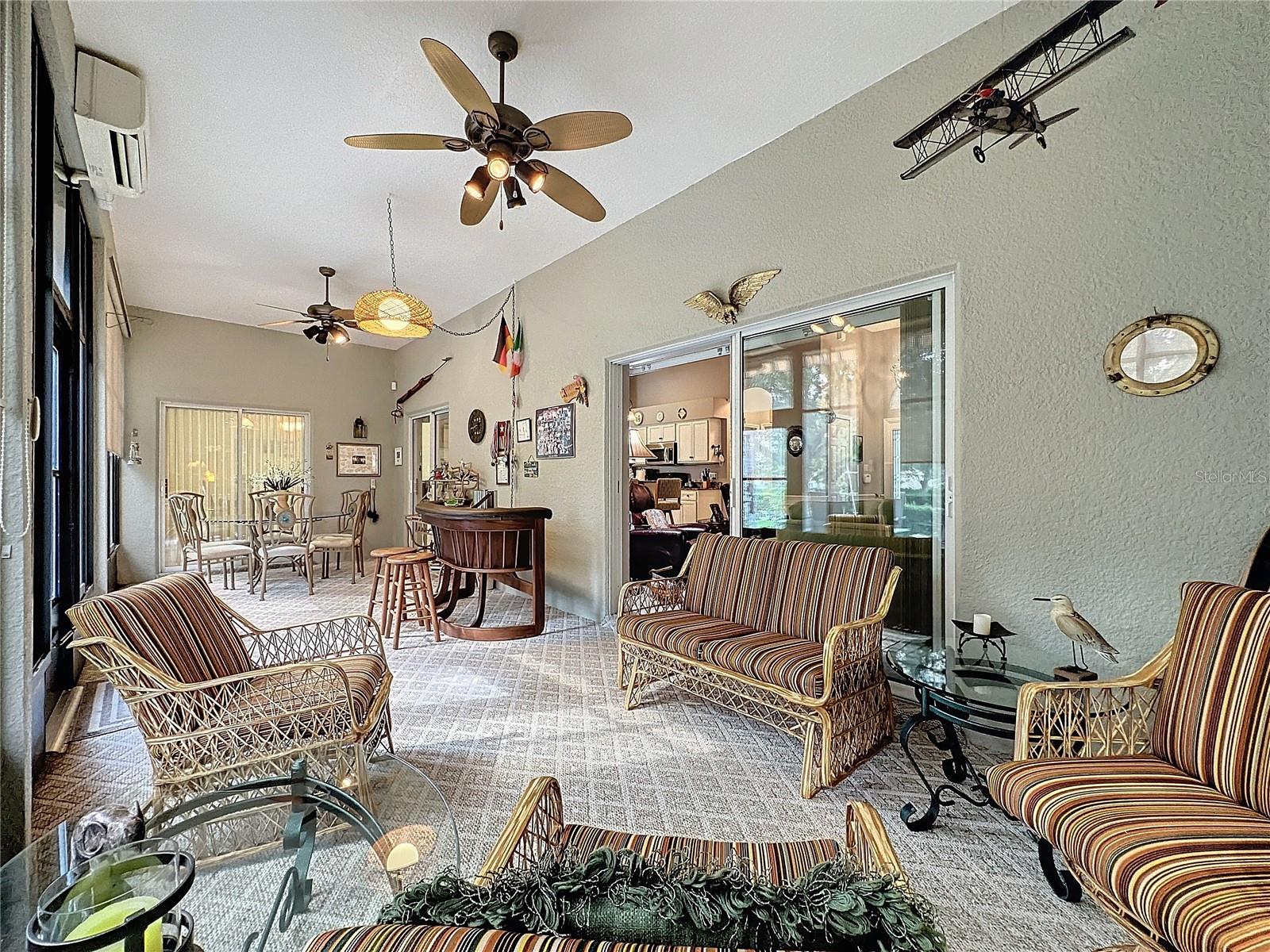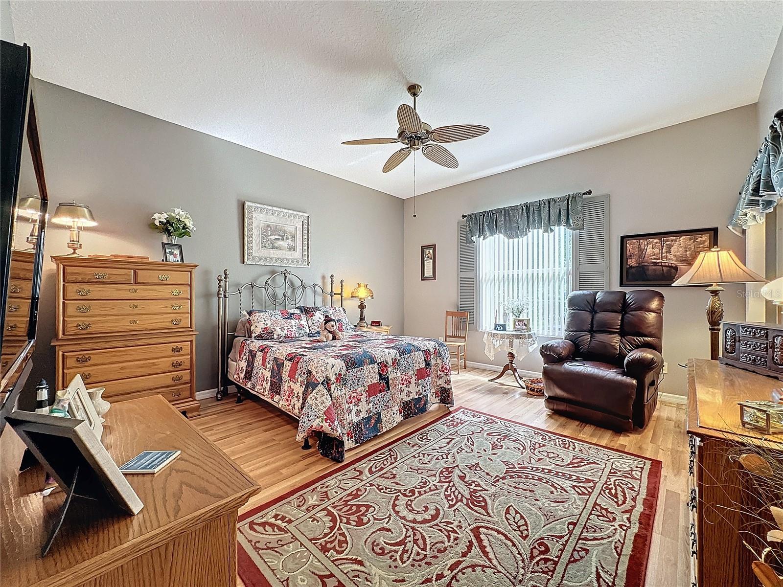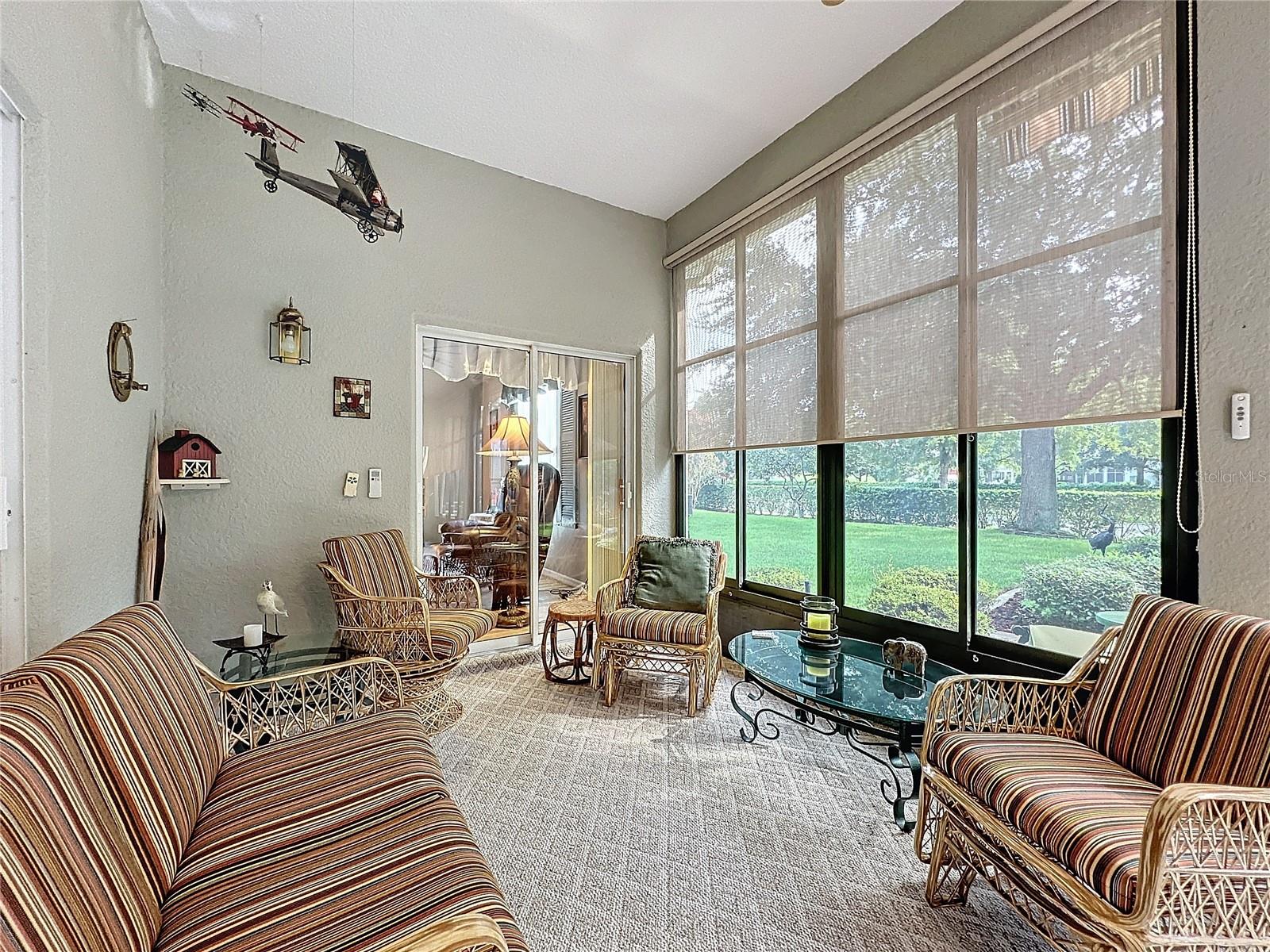 Welcome to 24112 Robinwood, in the Riverside Village at Plantation at Leesburg. This beautifully maintained Ixora Model looks like a model home. From the minute you walk into this home you are struck by its attention to detail. The foyer, great room, dining room and hall feature custom chair rail and wainscoting,while the dining room and den have custom crown moulding. The white kitchen cabinets are contrasted with granite countertops and stainless steel and black appliances. The kitchen also features a walk in pantry. This is a perfect house for entertaining with it's open floorplan and full size formal dining room. The floors throughout the main living area are ceramic tile. The fully enclosed 290 sq. ft. lanai is air conditioned and heated and is NOT included in the 1714 Sq.ft. of living space stated in public records. The lanai looks out onto a private backyard with a paver patio and awning. The large Owner's suite has 2 walk in closets that lead into a large bathroom with 2 separate vanities and a large stall shower.The bedrooms and den feature hardwood/laminte floors. The 2 car garage also has a tandem area for workshop or golfcart. The Plantation is a 55+ golf course community located in Leesburg, FL. It haas 3 clubhouses, 3 pools and spas, fitness centers, an event center, (2) 18 hole golf courses, a driving range,Pro shop, restaurant, tennis and pickleball courts, bocci ball, softball and many more clubs and activities. Motivated Seller!