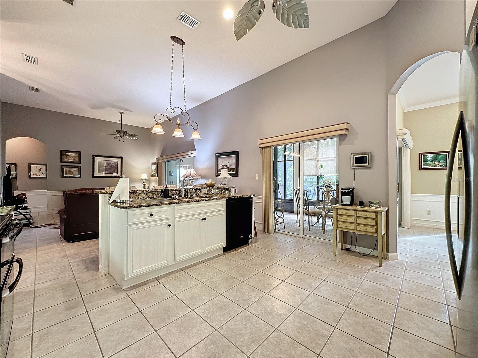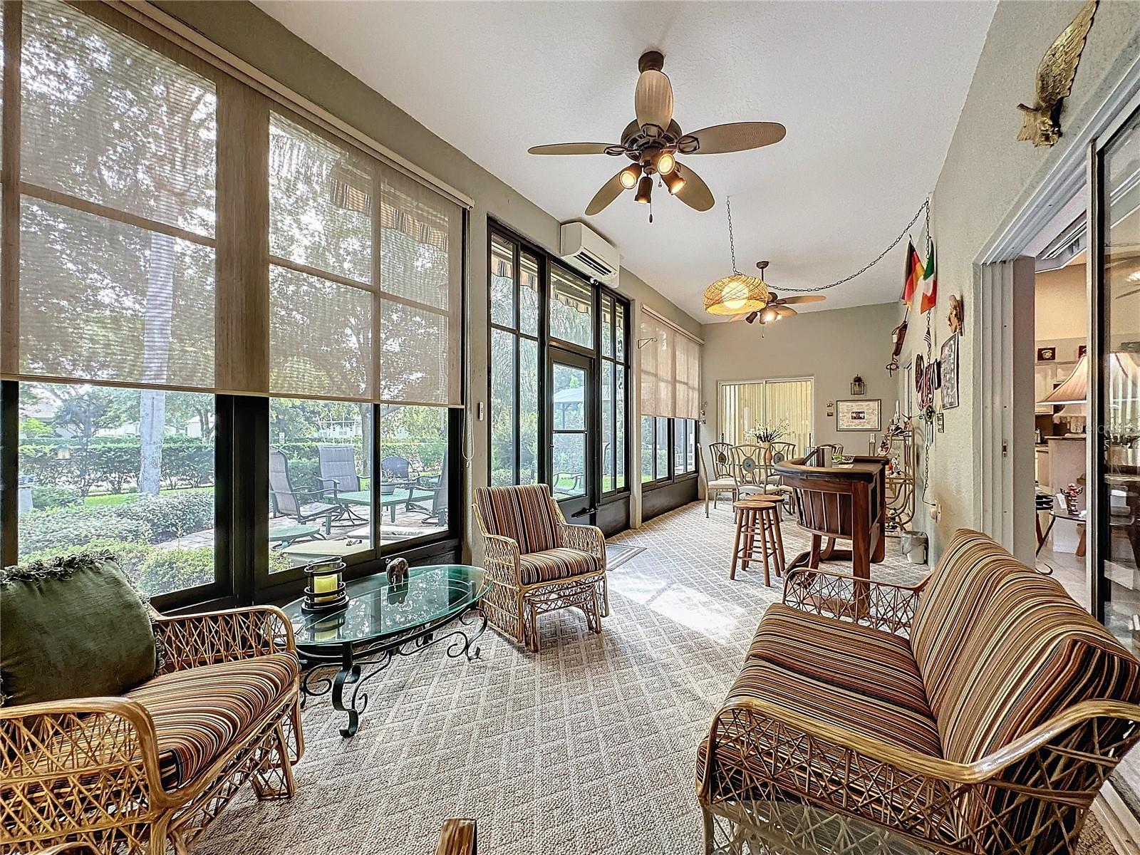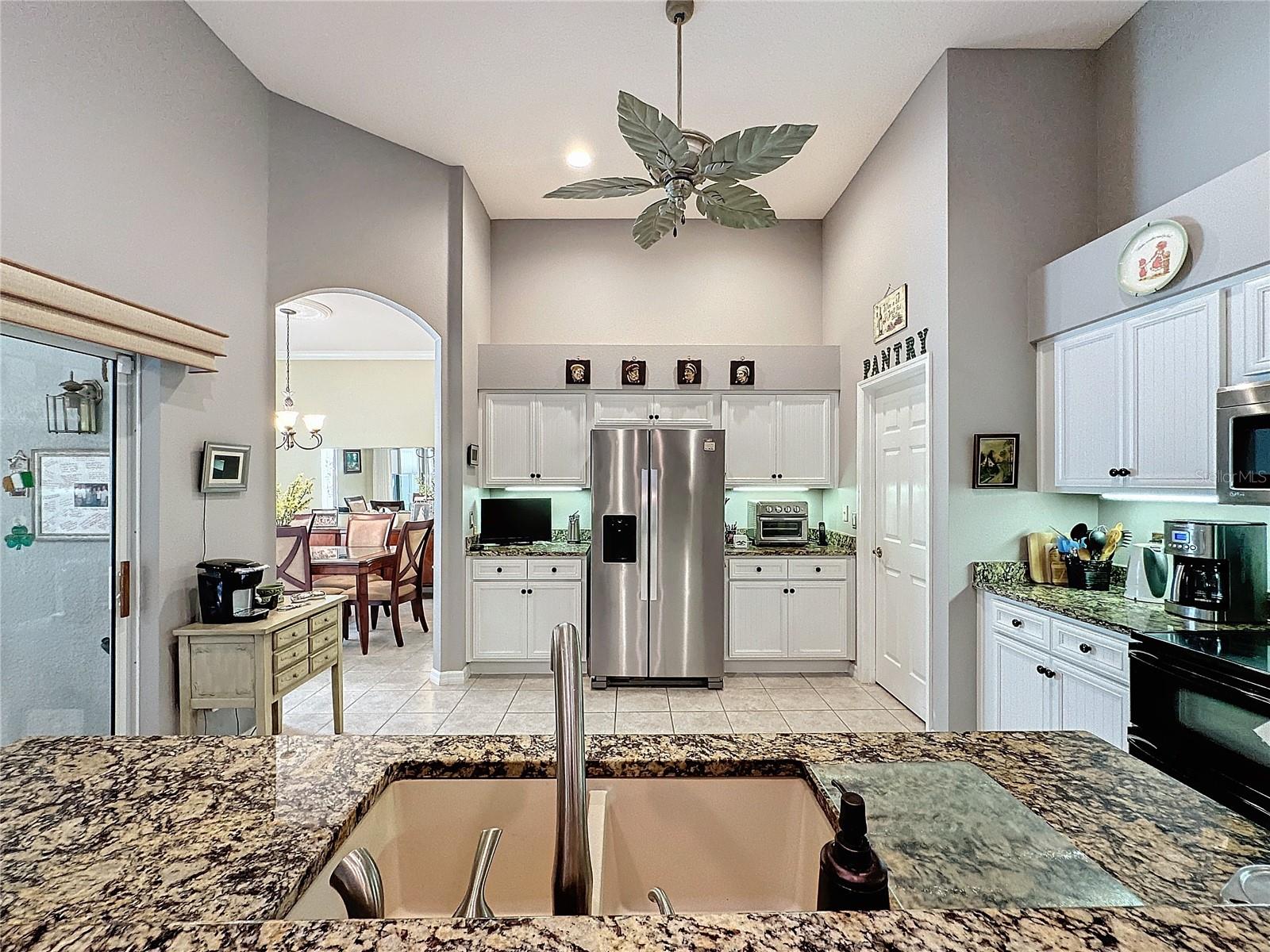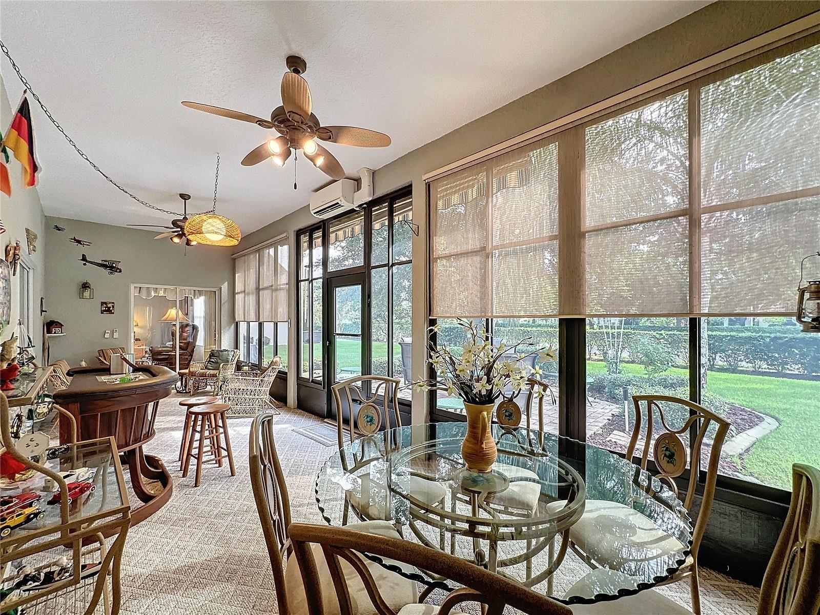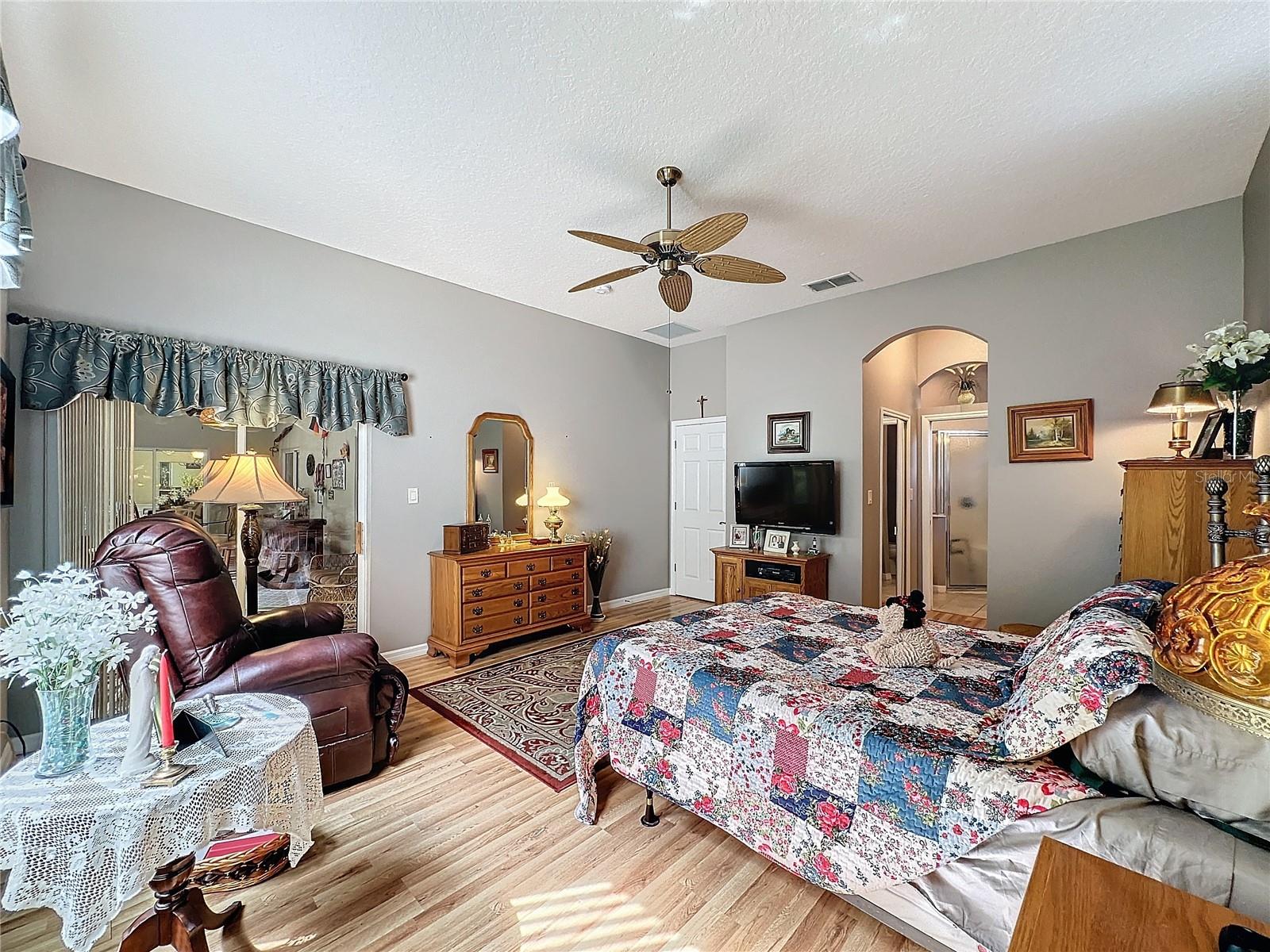 Welcome to 24112 Robinwood, in the Riverside Village at Plantation at Leesburg. This beautifully maintained Ixora Model looks like a model home. From the minute you walk into this home you are struck by its attention to detail. The foyer, great room, dining room and hall feature custom chair rail and wainscoting,while the dining room and den have custom crown moulding. The white kitchen cabinets are contrasted with granite countertops and stainless steel and black appliances. The kitchen also features a walk in pantry. This is a perfect house for entertaining with it's open floorplan and full size formal dining room. The floors throughout the main living area are ceramic tile. The fully enclosed 290 sq. ft. lanai is air conditioned and heated and is NOT included in the 1714 Sq.ft. of living space stated in public records. The lanai looks out onto a private backyard with a paver patio and awning. The large Owner's suite has 2 walk in closets that lead into a large bathroom with 2 separate vanities and a large stall shower.The bedrooms and den feature hardwood/laminte floors. The 2 car garage also has a tandem area for workshop or golfcart. The Plantation is a 55+ golf course community located in Leesburg, FL. It haas 3 clubhouses, 3 pools and spas, fitness centers, an event center, (2) 18 hole golf courses, a driving range,Pro shop, restaurant, tennis and pickleball courts, bocci ball, softball and many more clubs and activities. Motivated Seller!