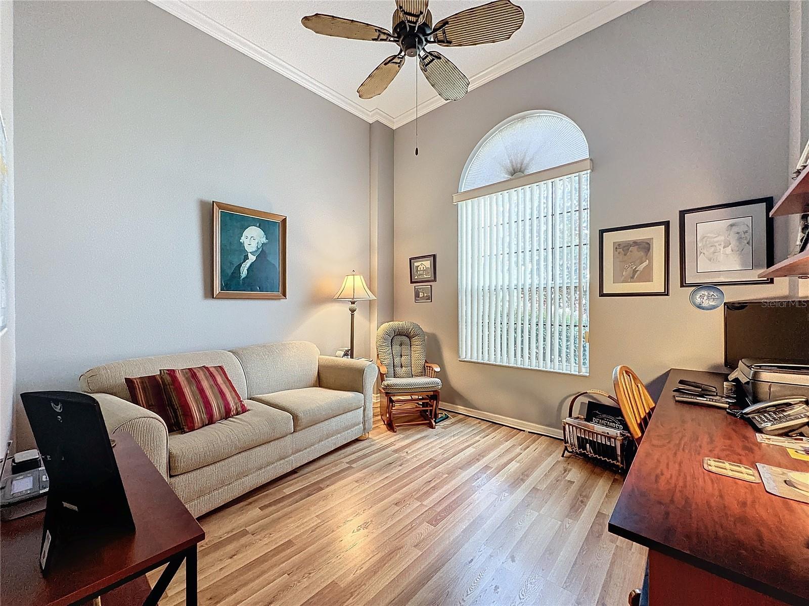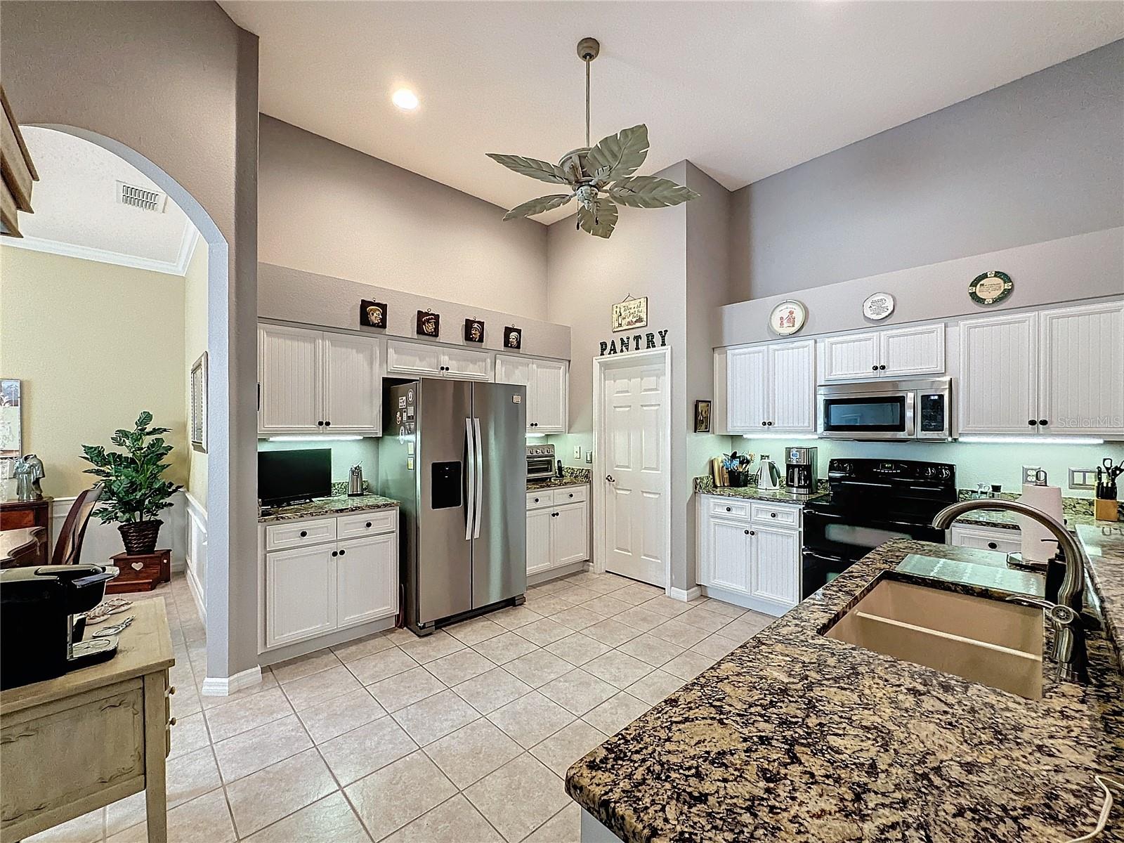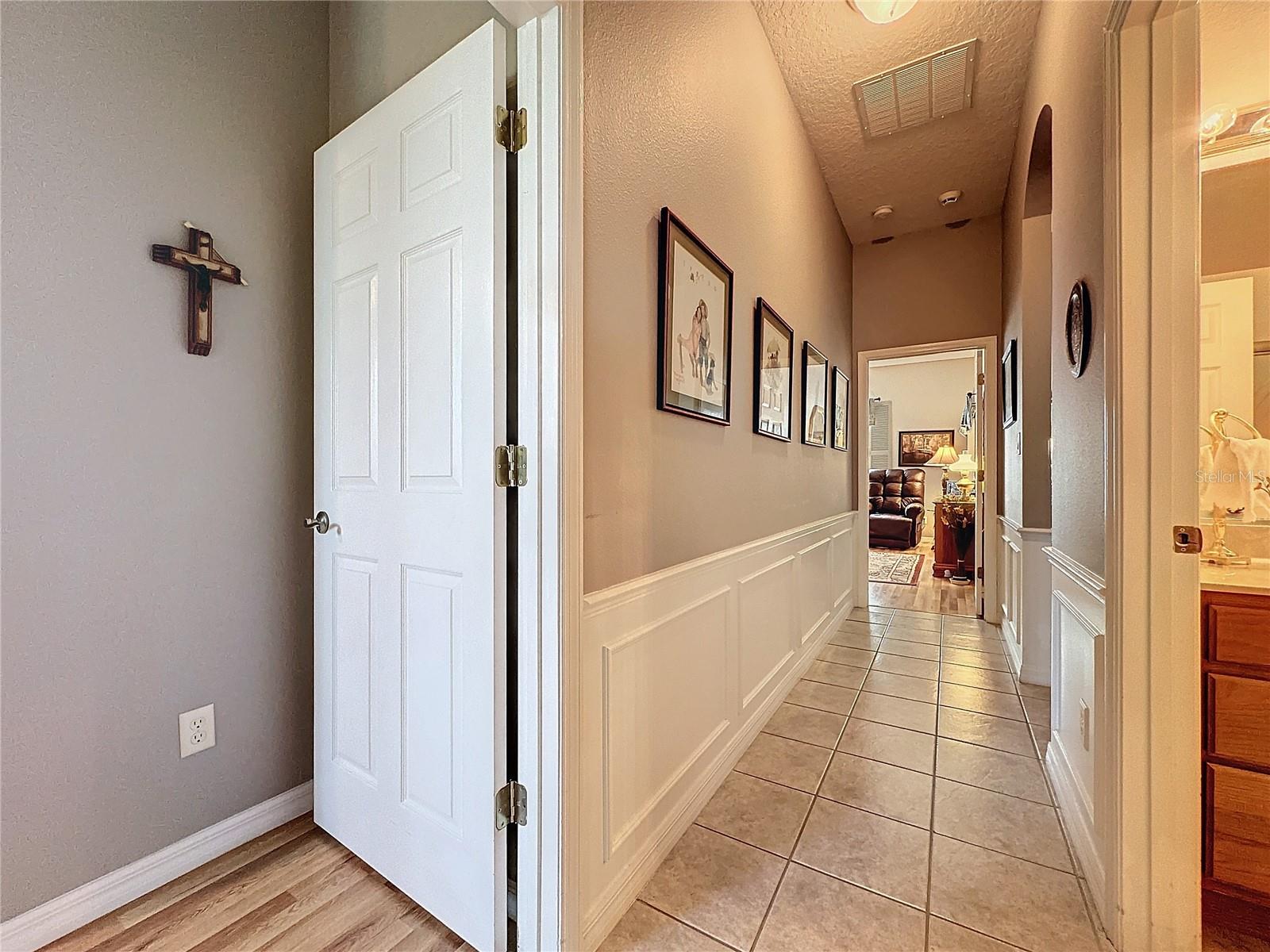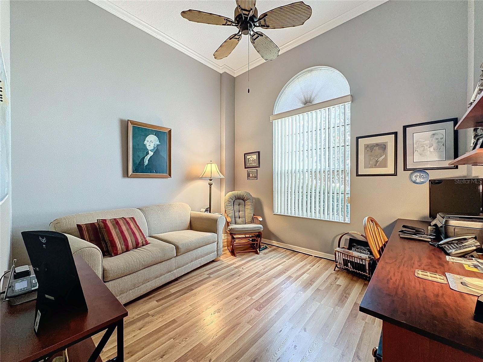 Welcome to 24112 Robinwood, in the Riverside Village at Plantation at Leesburg. This beautifully maintained Ixora Model looks like a model home. From the minute you walk into this home you are struck by its attention to detail. The foyer, great room, dining room and hall feature custom chair rail and wainscoting,while the dining room and den have custom crown moulding. The white kitchen cabinets are contrasted with granite countertops and stainless steel and black appliances. The kitchen also features a walk in pantry. This is a perfect house for entertaining with it's open floorplan and full size formal dining room. The floors throughout the main living area are ceramic tile. The fully enclosed 290 sq. ft. lanai is air conditioned and heated and is NOT included in the 1714 Sq.ft. of living space stated in public records. The lanai looks out onto a private backyard with a paver patio and awning. The large Owner's suite has 2 walk in closets that lead into a large bathroom with 2 separate vanities and a large stall shower.The bedrooms and den feature hardwood/laminte floors. The 2 car garage also has a tandem area for workshop or golfcart. The Plantation is a 55+ golf course community located in Leesburg, FL. It haas 3 clubhouses, 3 pools and spas, fitness centers, an event center, (2) 18 hole golf courses, a driving range,Pro shop, restaurant, tennis and pickleball courts, bocci ball, softball and many more clubs and activities. Motivated Seller!