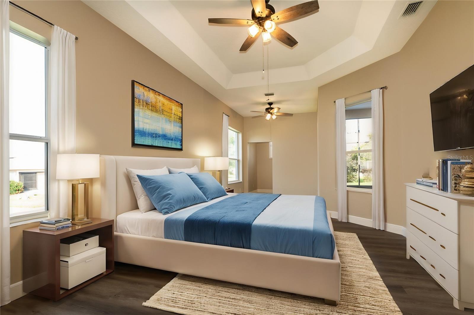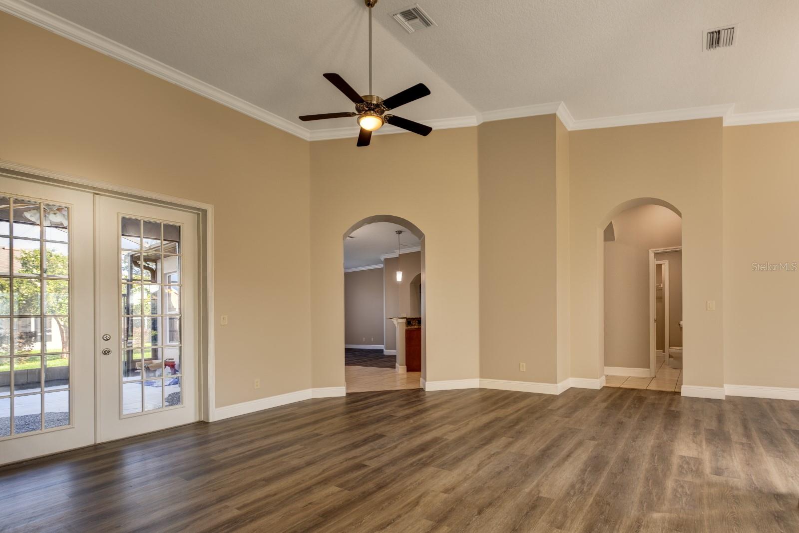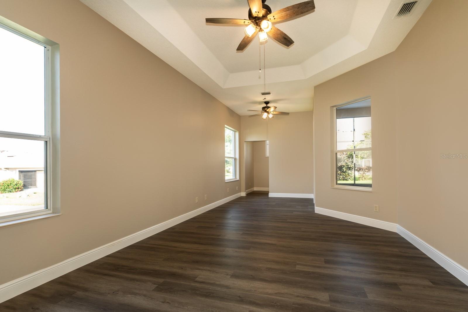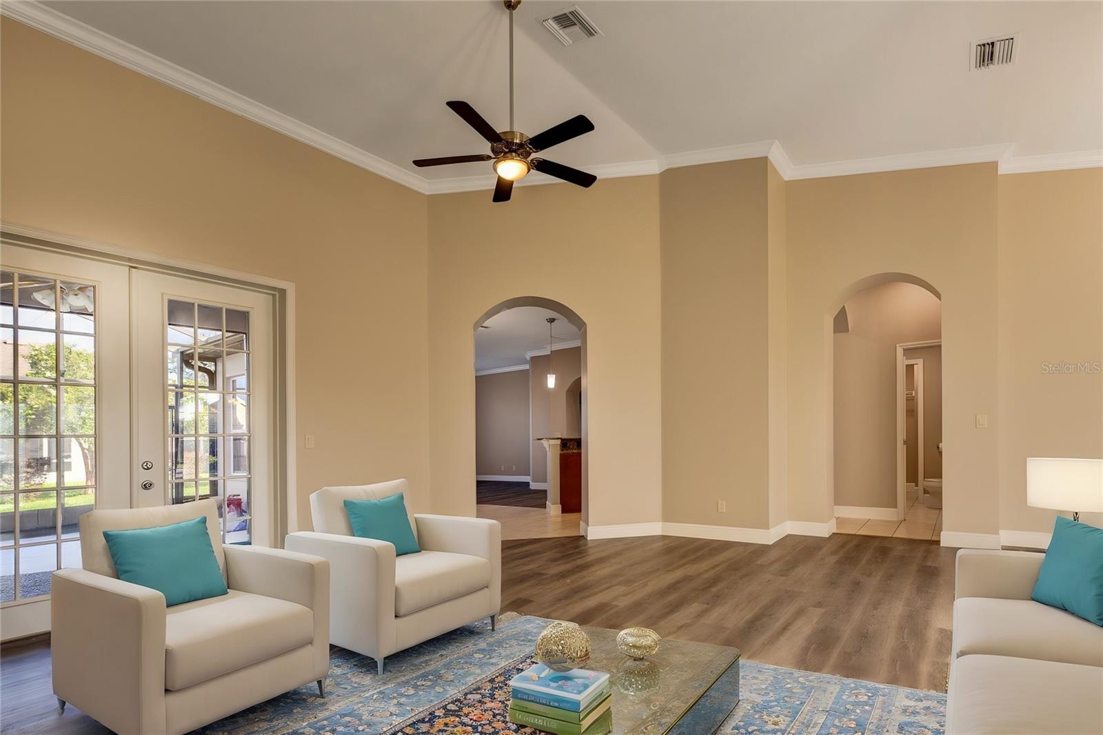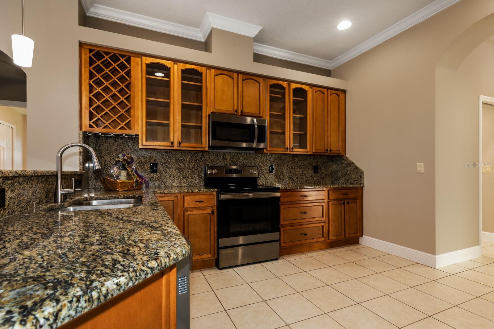 One or more photo(s) has been virtually staged. Welcome to your dream home! This stunning 3 bedroom, 2.5 bath house, boasting a generous 2287 sq ft of living space, is the epitome of retired living. Completely renovated in 2024, it's as good as new and ready for you to make it your own. Step inside to find a home that's been upgraded with the finest details. The kitchen is a chef's dream, equipped with newer stainless appliances, stunning granite countertops and a matching backsplash, seamlessly blending durability with high-end style. The breakfast bar, illuminated by chic pendant lighting, serves as the perfect spot for casual dining or enjoying a cup of coffee. The home's architectural beauty is highlighted by vaulted ceilings, elegant crown molding, and 5 ½ inch base molding, adding a touch of sophistication to every room. The bedrooms are a haven of comfort, with tray ceilings, and HUGE walk-in closets that offer plenty of storage space. But that's not all! There's a bonus room that's perfect for an office or a craft room, catering to your work from home or hobby needs. Situated on a corner lot in a resort-style 55+ community, this home offers not just a house, but a lifestyle. Enjoy the peace and tranquility of your surroundings, while still having access to the vibrant community and its amenities. Don't miss out on this opportunity to own a piece of paradise. Your dream home awaits!