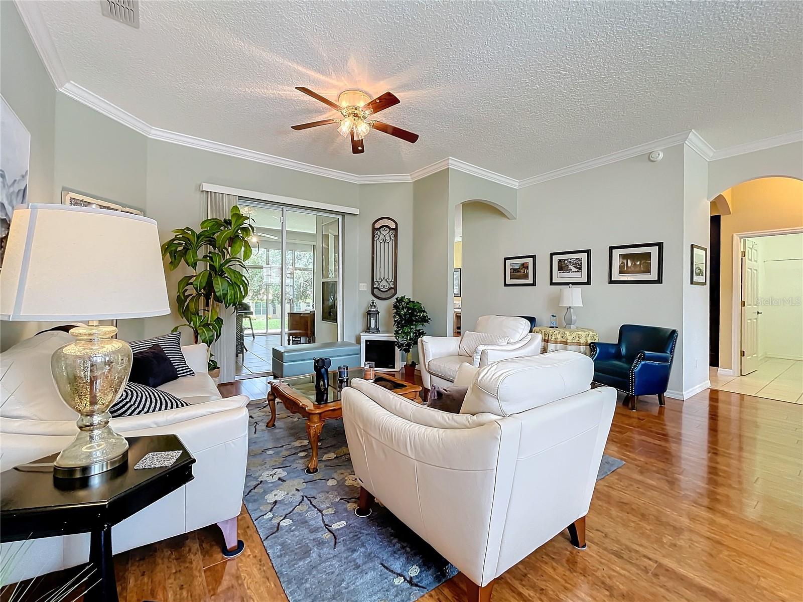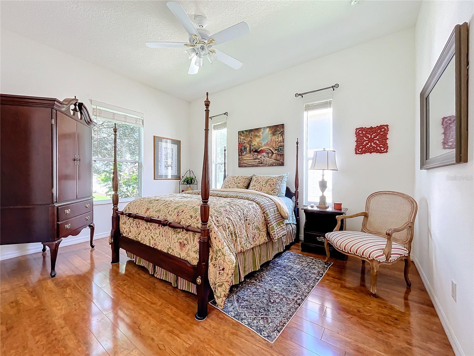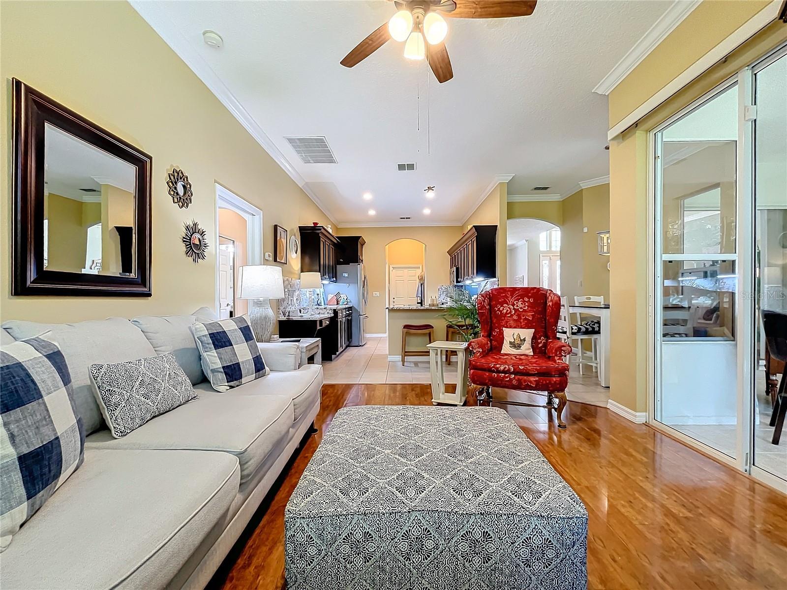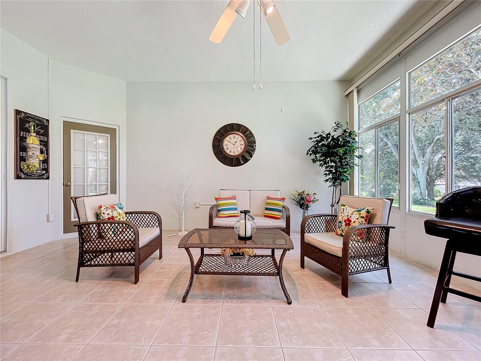 Welcome to 24515 Bocage Way, located in Nottoway Village! This beautiful home features a split floor plan, 2 Master Suites, a guest bedroom, 2.5 baths, living room and family room that offers convenience, privacy and plenty of room to entertain. As you enter the home, you’ll notice the gleaming floors, high ceilings, crown molding and natural light that flows through the home. The spacious kitchen has been updated with gorgeous granite countertops and backsplash, sink & faucet, painted wood cabinets with upper & lower cabinet lighting, a desk area and stainless steel appliances. The kitchen opens to the family room and an eat-in kitchen. The family room has sliders for easy access to enclosed lanai. The living room also has sliders that open to the lanai. Master Suite #1 offers a spacious space that can accommodate larger pieces of furniture, provides 2 generous size walk-in closets and access to the enclosed lanai. The en-suite bath which has been updated with granite countertops, features dual sinks, a vanity area, a soaking tub and walk-in shower. Master Suite #2 provides generous space for visitors or live-in family member and has a walk-in closet. The en-suite bath has new granite countertops, dual vanities and walk-in shower. The 3rd bedroom offers flexibility and can be tailored to your needs. The cute half bath is perfect for company. The enclosed lanai is great place for entertaining and enjoying your morning cup of coffee or evening cocktail. There is a concrete patio off the enclosed lanai for grilling or working on your tan. For your convenience, the inside laundry room has a utility sink and plenty of cabinets to keep things nice and neat. The inside of house was painted 6 months ago. The Plantation at Leesburg is an active 55+ community that offers 2 golf courses, restaurant, 3 club houses with pools and spas, 2 workout facilities, pickleball, tennis, horseshoes, bocce ball, plenty off activities and much more. Come see what you’ve been missing!