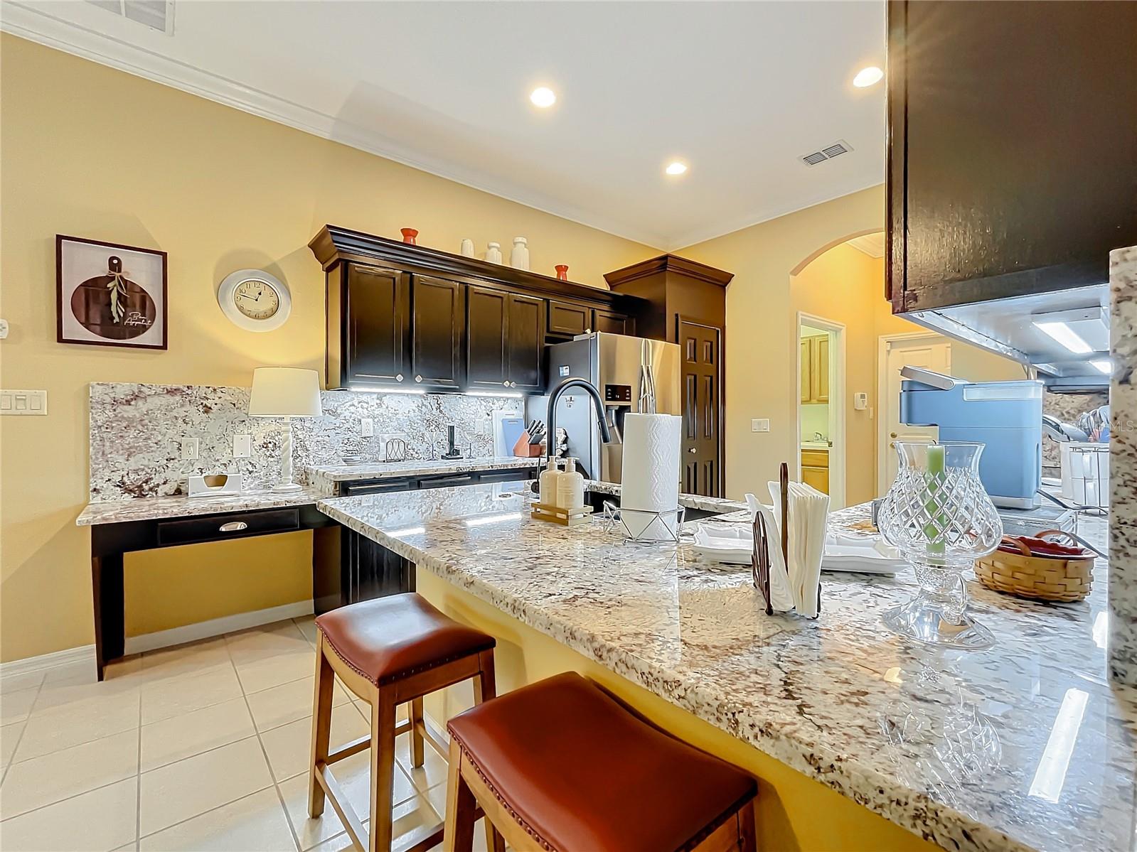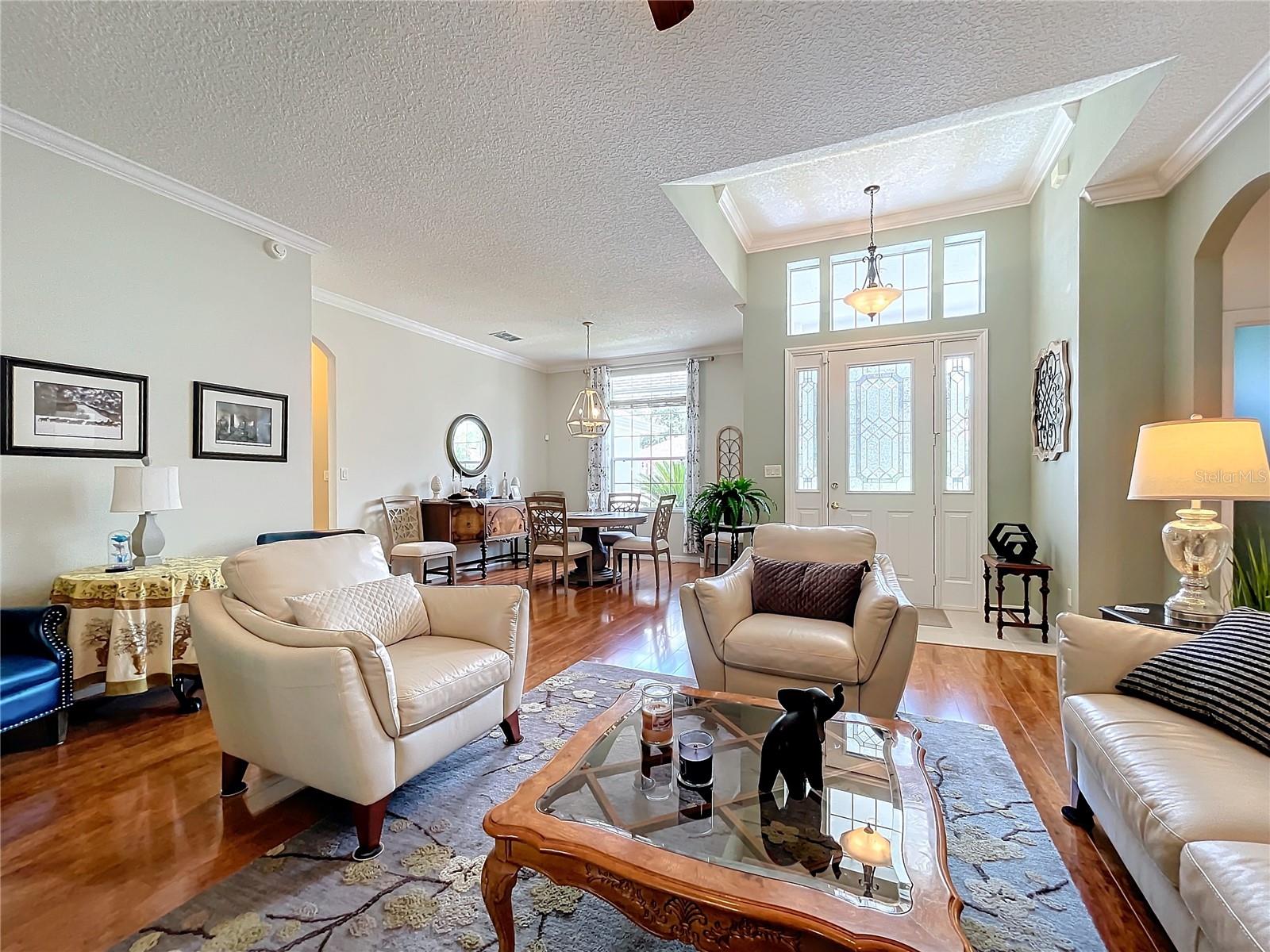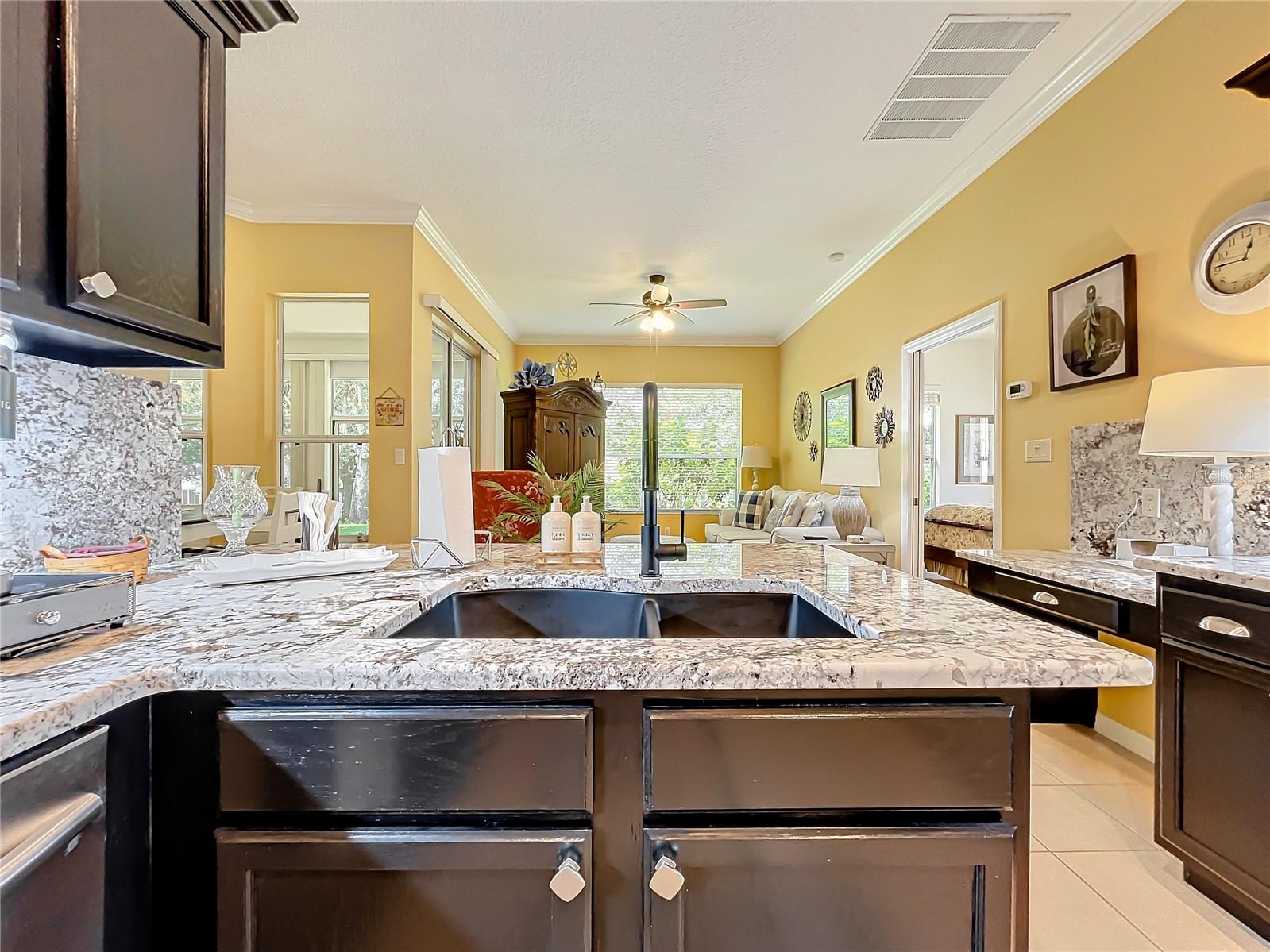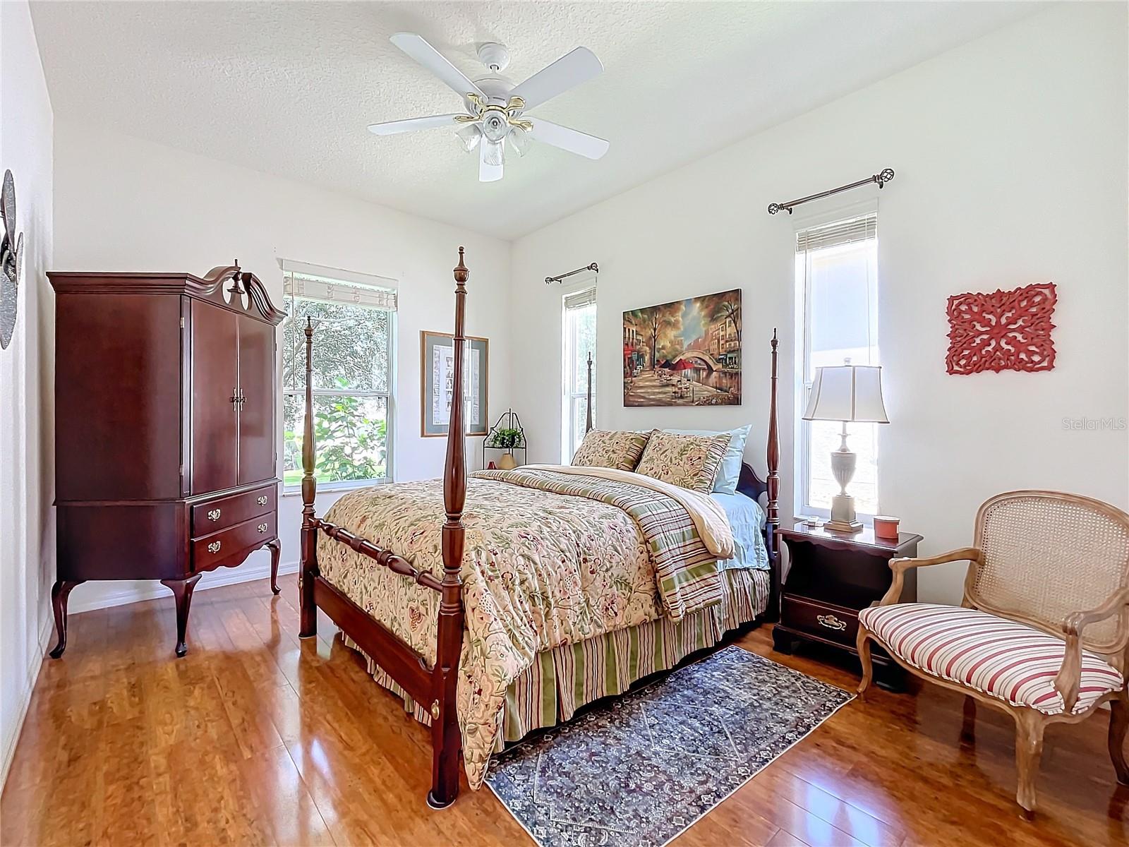 Welcome to 24515 Bocage Way, located in Nottoway Village! This beautiful home features a split floor plan, 2 Master Suites, a guest bedroom, 2.5 baths, living room and family room that offers convenience, privacy and plenty of room to entertain. As you enter the home, you’ll notice the gleaming floors, high ceilings, crown molding and natural light that flows through the home. The spacious kitchen has been updated with gorgeous granite countertops and backsplash, sink & faucet, painted wood cabinets with upper & lower cabinet lighting, a desk area and stainless steel appliances. The kitchen opens to the family room and an eat-in kitchen. The family room has sliders for easy access to enclosed lanai. The living room also has sliders that open to the lanai. Master Suite #1 offers a spacious space that can accommodate larger pieces of furniture, provides 2 generous size walk-in closets and access to the enclosed lanai. The en-suite bath which has been updated with granite countertops, features dual sinks, a vanity area, a soaking tub and walk-in shower. Master Suite #2 provides generous space for visitors or live-in family member and has a walk-in closet. The en-suite bath has new granite countertops, dual vanities and walk-in shower. The 3rd bedroom offers flexibility and can be tailored to your needs. The cute half bath is perfect for company. The enclosed lanai is great place for entertaining and enjoying your morning cup of coffee or evening cocktail. There is a concrete patio off the enclosed lanai for grilling or working on your tan. For your convenience, the inside laundry room has a utility sink and plenty of cabinets to keep things nice and neat. The inside of house was painted 6 months ago. The Plantation at Leesburg is an active 55+ community that offers 2 golf courses, restaurant, 3 club houses with pools and spas, 2 workout facilities, pickleball, tennis, horseshoes, bocce ball, plenty off activities and much more. Come see what you’ve been missing!