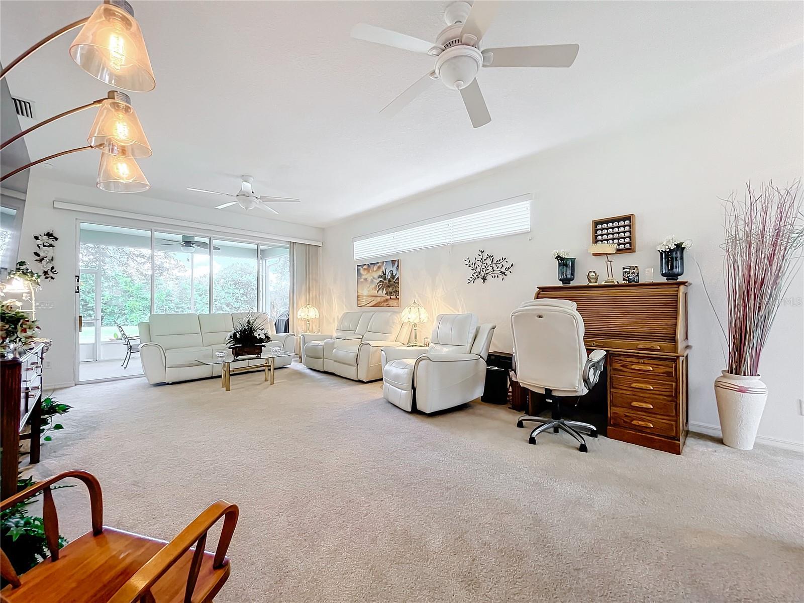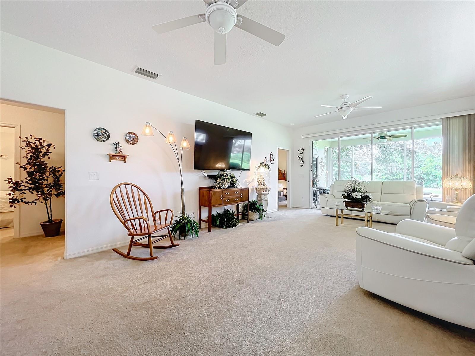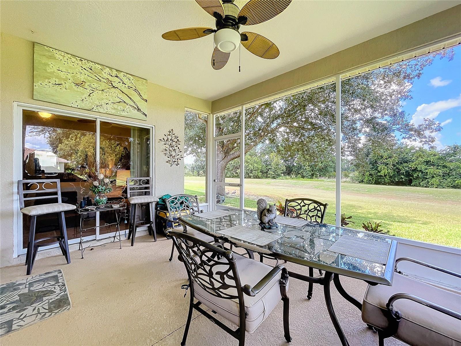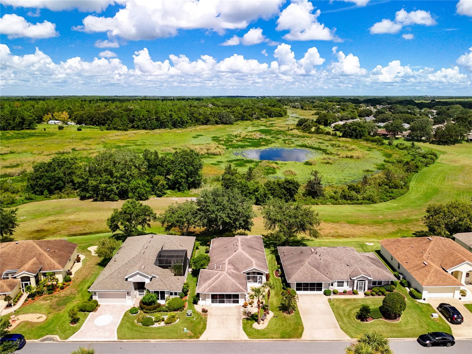 THE VIEW IN THE BACKYARD IS AMAZING!!! Come see for yourself!! This home is a fantastic opportunity for anyone looking to enjoy Florida living, in a 55+ community. The home itself offers a comfortable and spacious layout with 3 bedrooms and 2 bathrooms, perfect for both relaxation and entertaining. The views of the conservation area and golf course from the open living space and the master suite are definitely highlights. No rear neighbors enhances privacy. This home has been immaculately kept. New AC in 2021 and a water softener was installed in 2019. The primary bedroom features a large walk in closet, dual sinks and an easy step in shower. The kitchen, with its white appliances and breakfast nook, is practical and inviting, while the screened lanai provides a great space to enjoy the outdoors year-round. The beautiful views from your lanai offer a chance to enjoy watching the golfers on the 15th hole without worrying about getting hit by a golf ball! Living in Royal Highlands, Leesburg, offers much more than just a beautiful home. The amenities cater to a wide range of interests, from golf at the Monarch Golf Club to water activities on the community's lakes. Plus, the variety of social and recreational options, such as pools, an exercise room, and an arts & crafts studio, ensures there's always something to do. This home seems is an ideal spot for those looking to embrace an active and sunny Florida lifestyle. Separate water meter for irrigation should save you money on your water bill!
