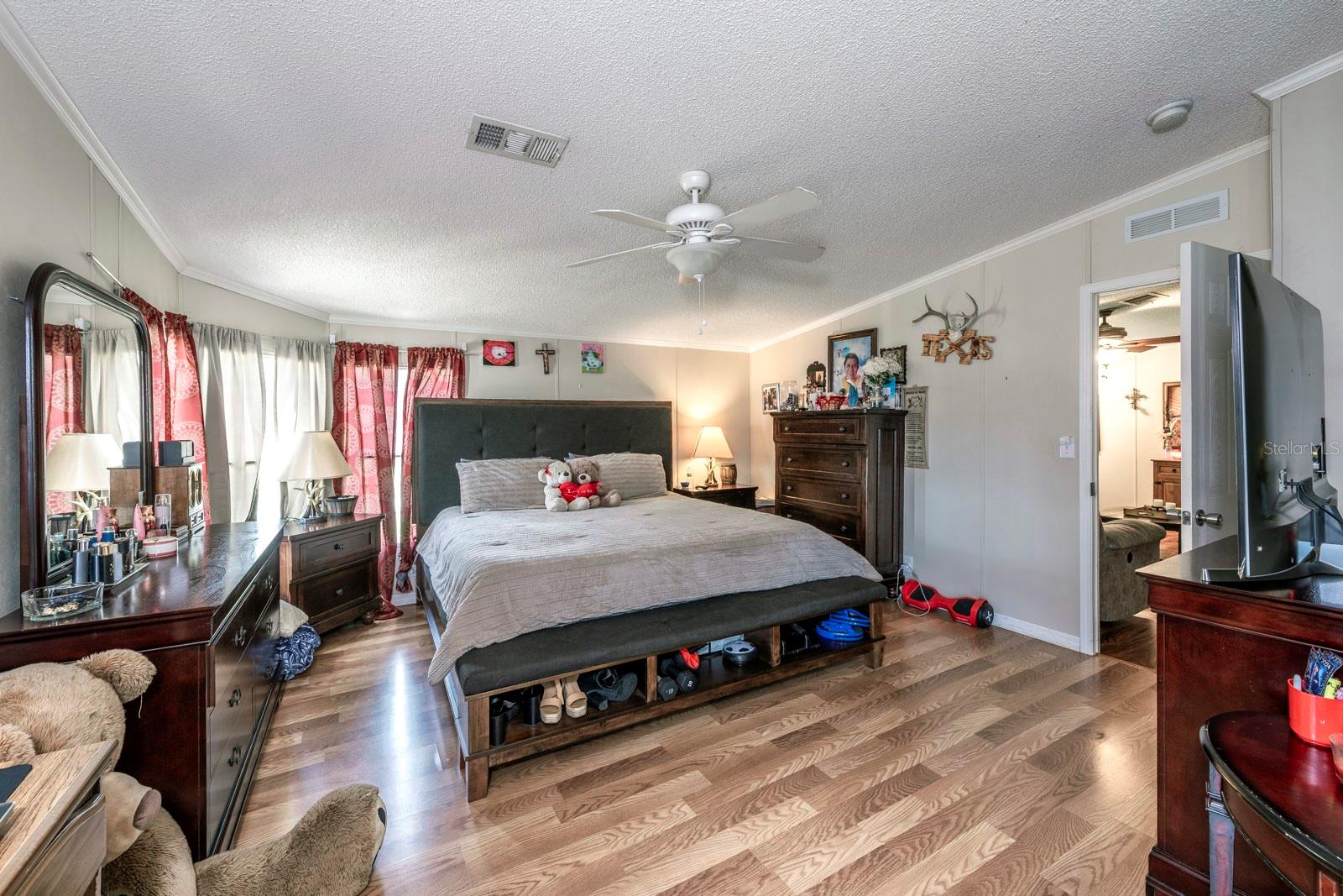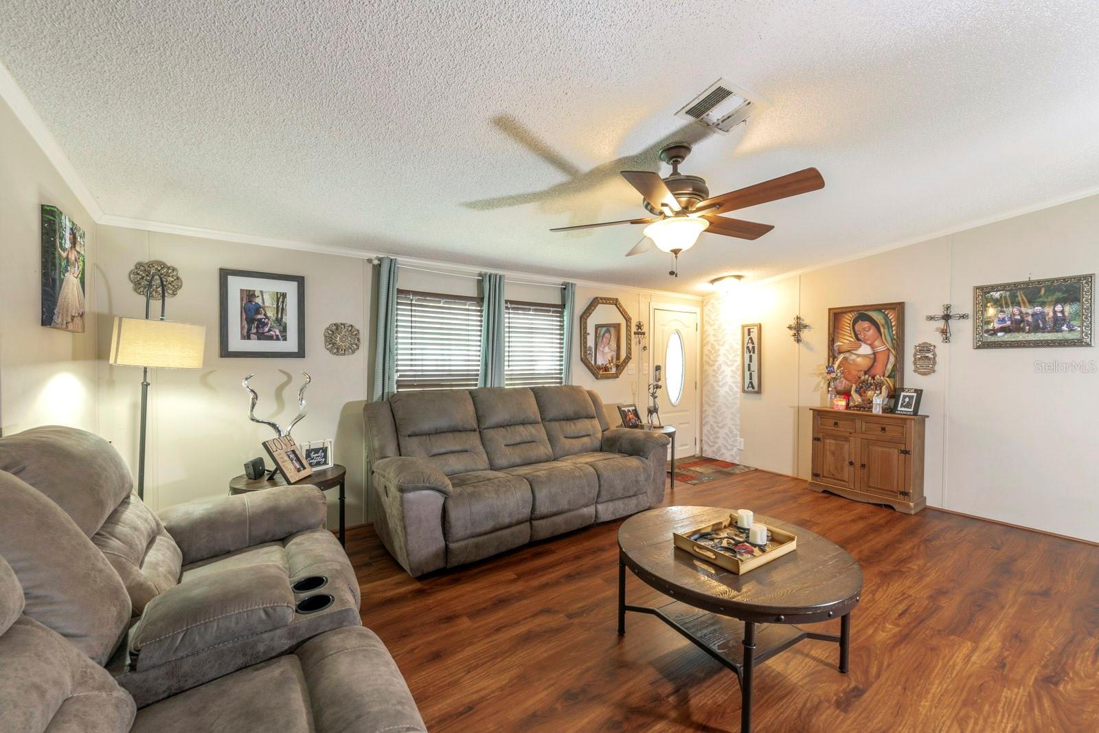 Please see attachments for a special financing program available for this home from a local bank. A very well-maintained 3 bedroom, 2 bath manufactured home in the Quail Ridge Community of Leesburg. What immediately will strike you about this house is the landscaping in front of the home. Charming and colorful gardens and shrubbery are nestled on a gravel hill with a cozy patio to enjoy the surroundings. Inside, the home boasts beautiful laminate flooring throughout. The dining and kitchen area has plenty of storage and a center island and a view of the large backyard. The large primary bedroom is privately located off of the living area and has an ensuite bathroom with double sinks and a walk-in closet. The guest bedrooms are ample size and share a bath with double sink and a bathtub. The laundry room is very large with storage, a sink, a closet, and outdoor access. There is a good-sized carport surrounded by a large patio area. The overhang of the carport adds extra space for outdoor entertaining. The oversized yard has a newly built shed for plenty of storage. Come check out this move-in ready home with many extras!