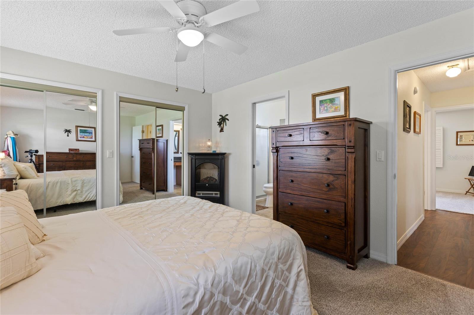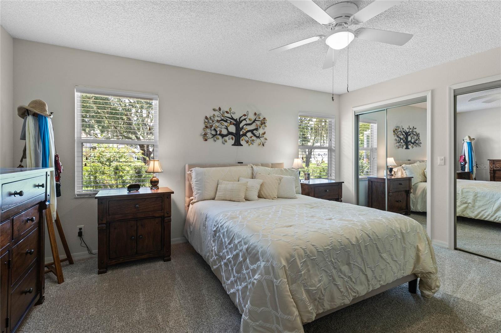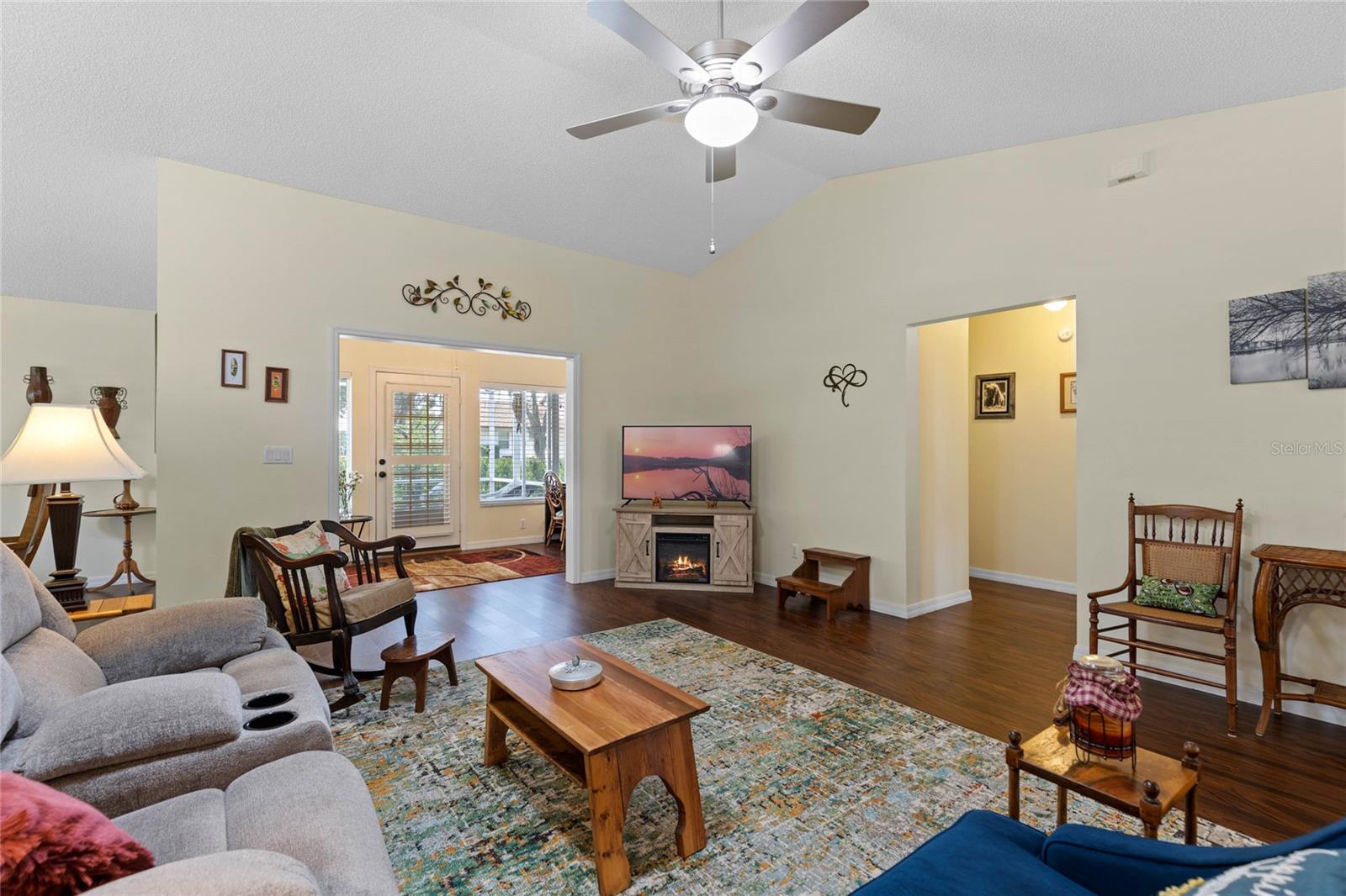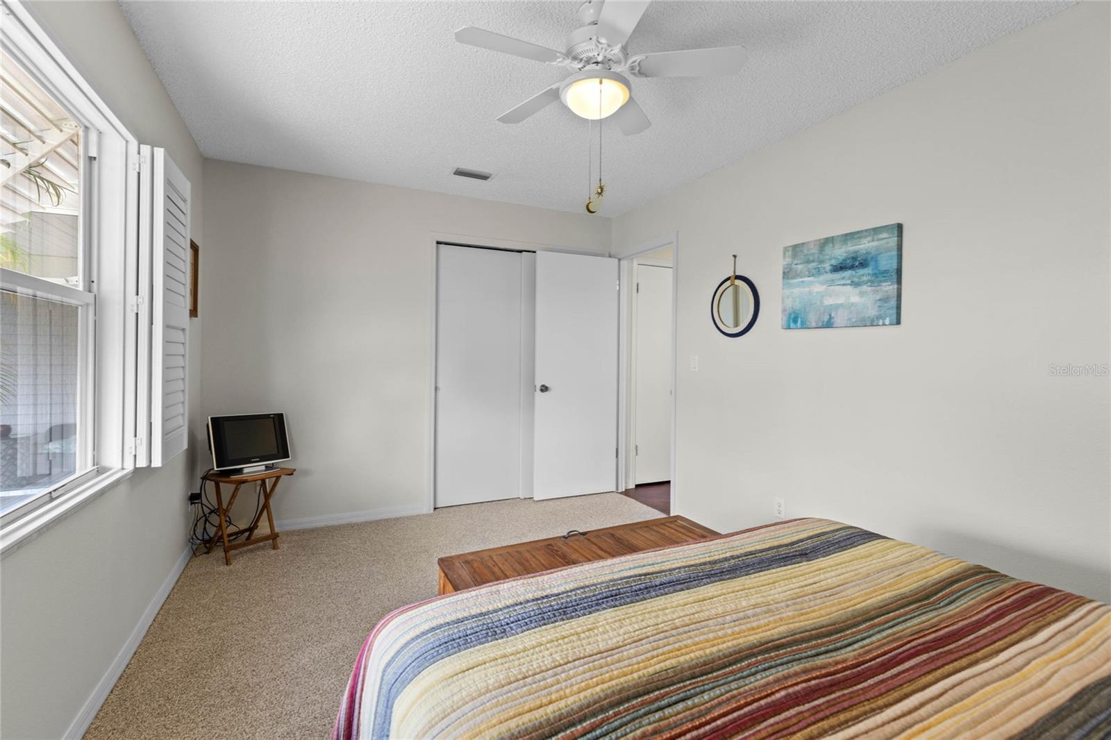 Nestled in a desirable neighborhood on a quiet dead-end street, this 2-bedroom, 2-bathroom home offers 1,418 square feet of living space, a 2-car garage with a privacy screen, and a range of premium features. To include an HVAC system installed in 2014 and a roof replaced in 2017, while the interior boasts wood laminate flooring in the living room, dining room, and bonus room. The galley kitchen features a breakfast nook, bay window, and closet pantry with pull-out shelving, as well as a gas range and French door-style refrigerator. Additional highlights include a formal dining room with interior plantation shutters and a bonus room ideal for use as a craft room, office, or additional sitting area; hurricane shutters to boot!