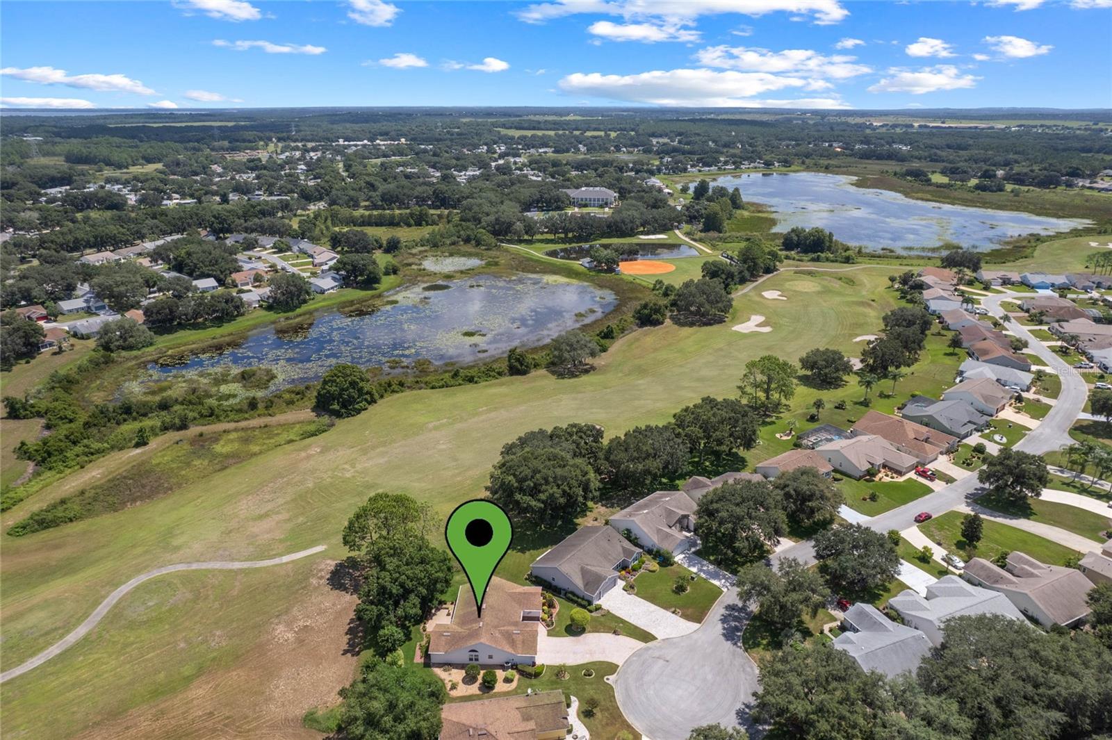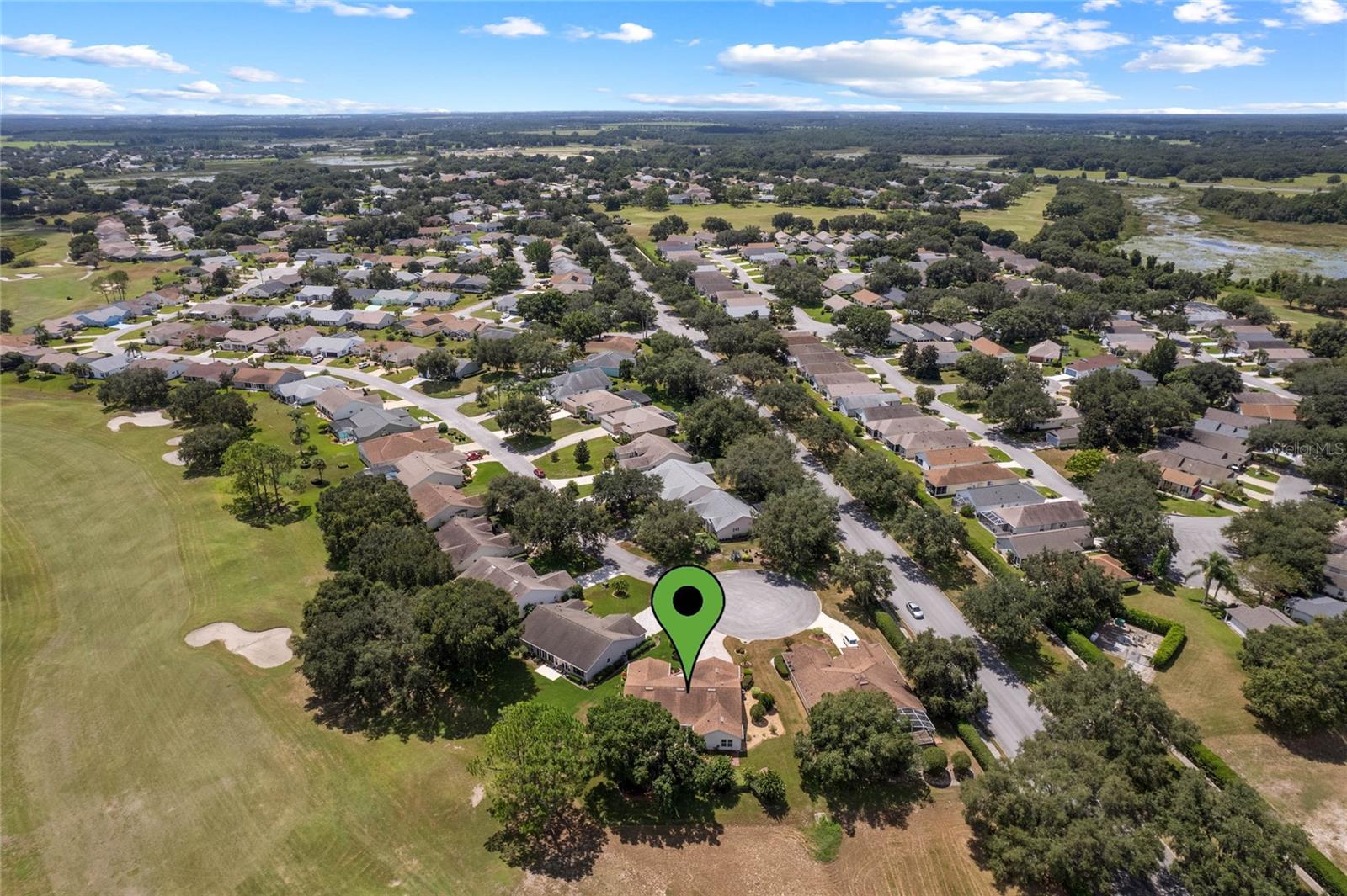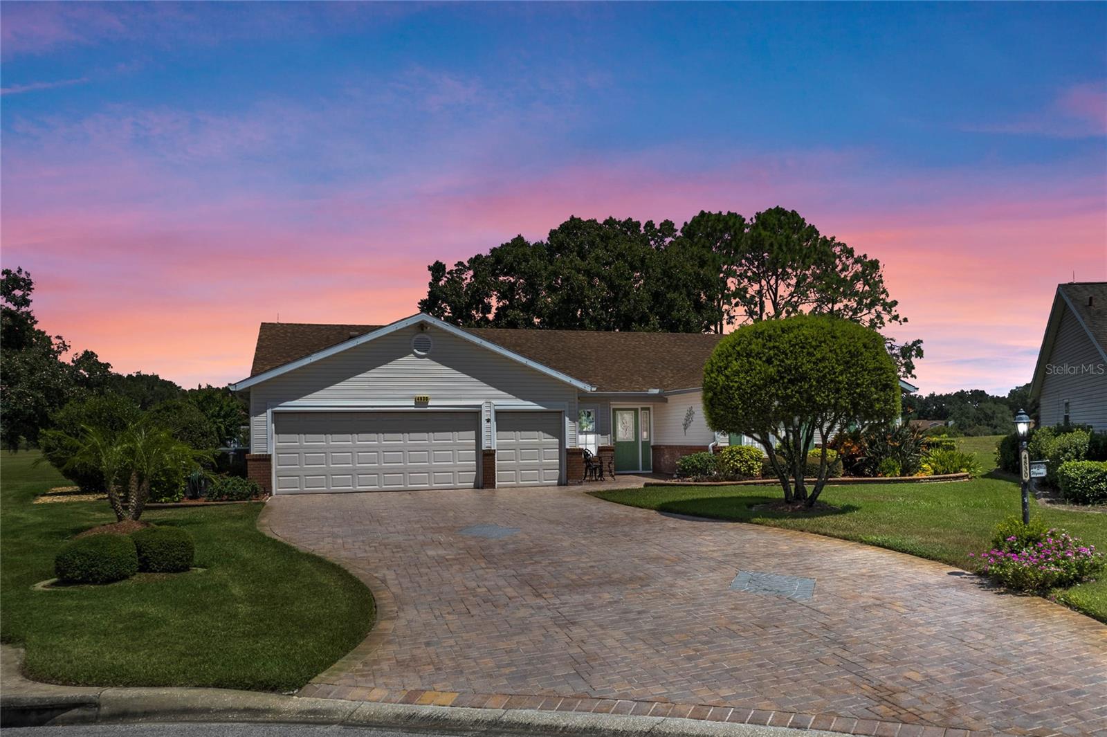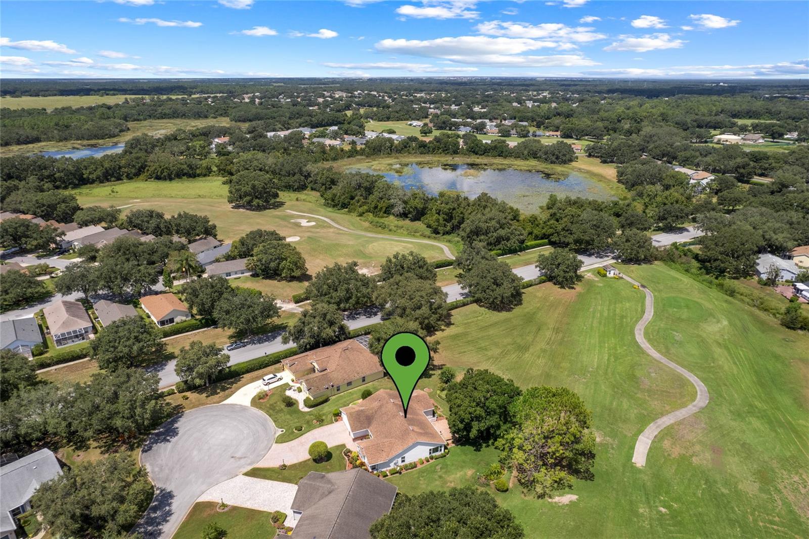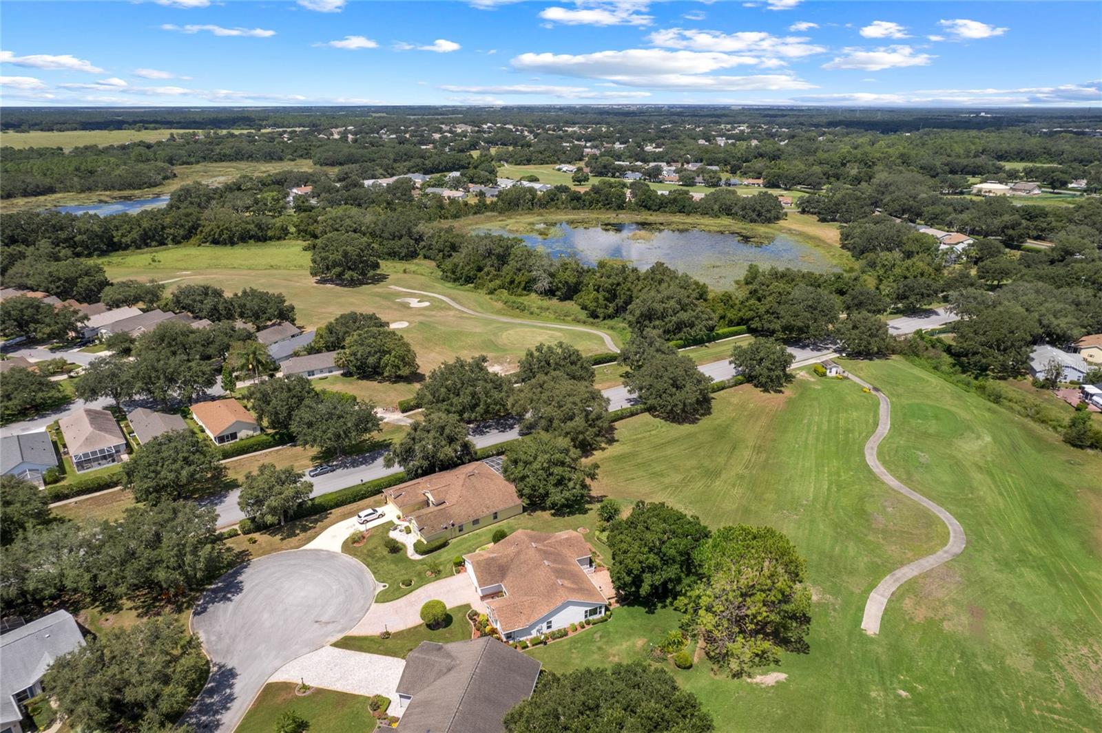 Stunning GOLF VIEW HOME, located on the FIRST HOLE of the popular, CRANES ROOST golf course. This house has been modified and expanded from the Great Spruce, and PREVIOUSlY A MODEL HOME! ***Be sure to check out the 3D TOUR above*** The home offers breathtaking golf course views and unparalleled privacy. The long approach paved driveway along with being tucked away in a cul-de-sac, creates minimal through-traffic and ample parking options. You will appreciate the upgraded and established landscaping with stone bordered beds. NO CARPET, featuring easy-care German-engineered SOLID WOOD FLOORING throughout, ensuring a seamless flow from room to room. This home boasts a range of updates and upgrades, including all new windows (2012), a NEW AC system (2023) with SANITIZER, a full WATER FILTRATION system, and FULL HOME GROUNDING RODS (2023). Additionally, a TRANSFERABLE TERMITE BOND provides added peace of mind. The redesigned CUSTOM KITCHEN is a chef's dream, showcasing GRANITE countertops and custom-built SOLID WOOD CHERRY CABINETS. Offering a NEW MICROWAVE, CONVECTION STOVE and DISPOSAL along with LOTS OF DRAWERS, PULL-OUT CABINETS, and a separate pantry with additional custom storage, this kitchen is perfect for both daily living and entertaining. Enjoy game day or host gatherings with ease as the kitchen opens up to the family room, dinette, and a Florida room with miles of gorgeous views. The primary suite is a spacious retreat, easily accommodating a king-size bed and offering an ensuite bathroom with DUAL SINKS, a soaking tub, and a walk-in shower. Bedroom two is versatile and could serve as a secondary primary suite, complete with its own private ensuite—ideal for guests or a mother-in-law suite. Bedroom three is perfect for a home office or flex space, and an additional half bath is conveniently located for guests. Plus, an inside laundry room adds to the home's functionality. The Plantation at Leesburg is a 55+ community that offers two full size golf courses, 3 clubhouses; all with heated pools, tennis, pickleball, pool tables, darts and a huge list of activities each and every month that will keep you moving and having fun. You can enjoy a good game of softball and hotdogs at the pavilion on game day. Whether it is bocce ball, shuffleboard, or horseshoes, you will never run out of things to do at the Plantation. The life you have waited your whole life for is just minutes away from major hospitals and shopping. Easy access to the parks and airport. This exceptional property combines elegance, functionality, and comfort, making it a true gem in the community. Don't miss your chance to make this beautiful house your new home! Call today for your personal tour!