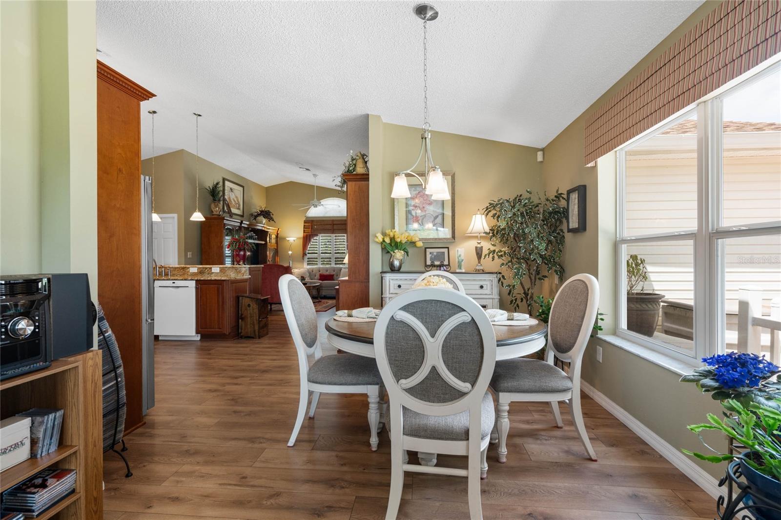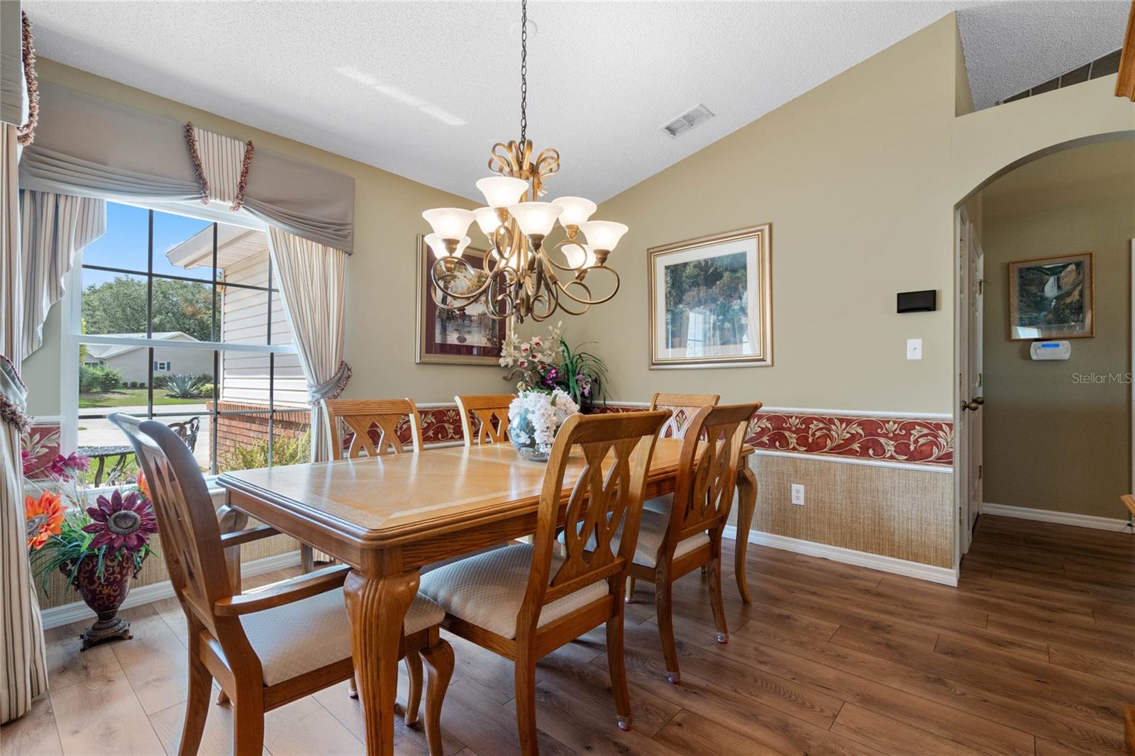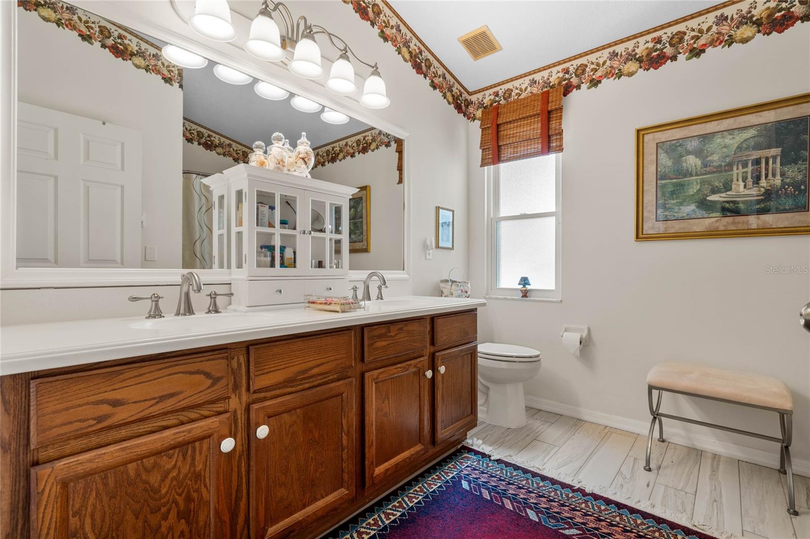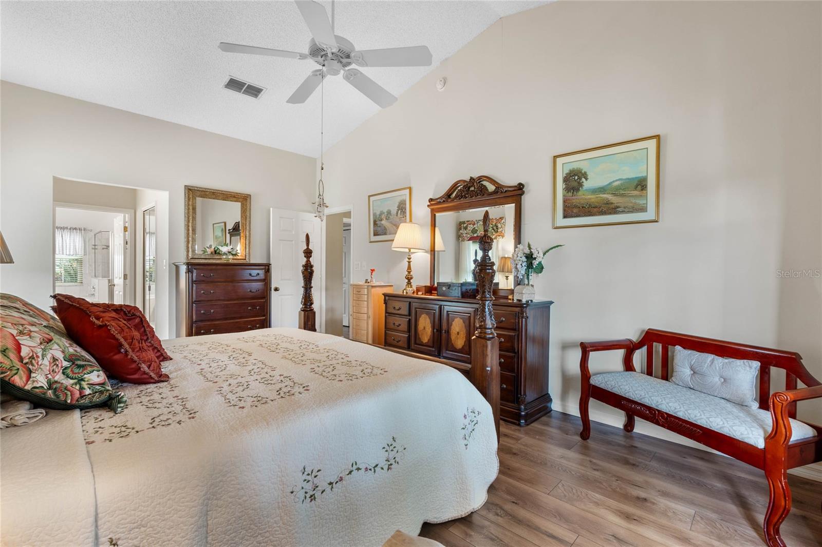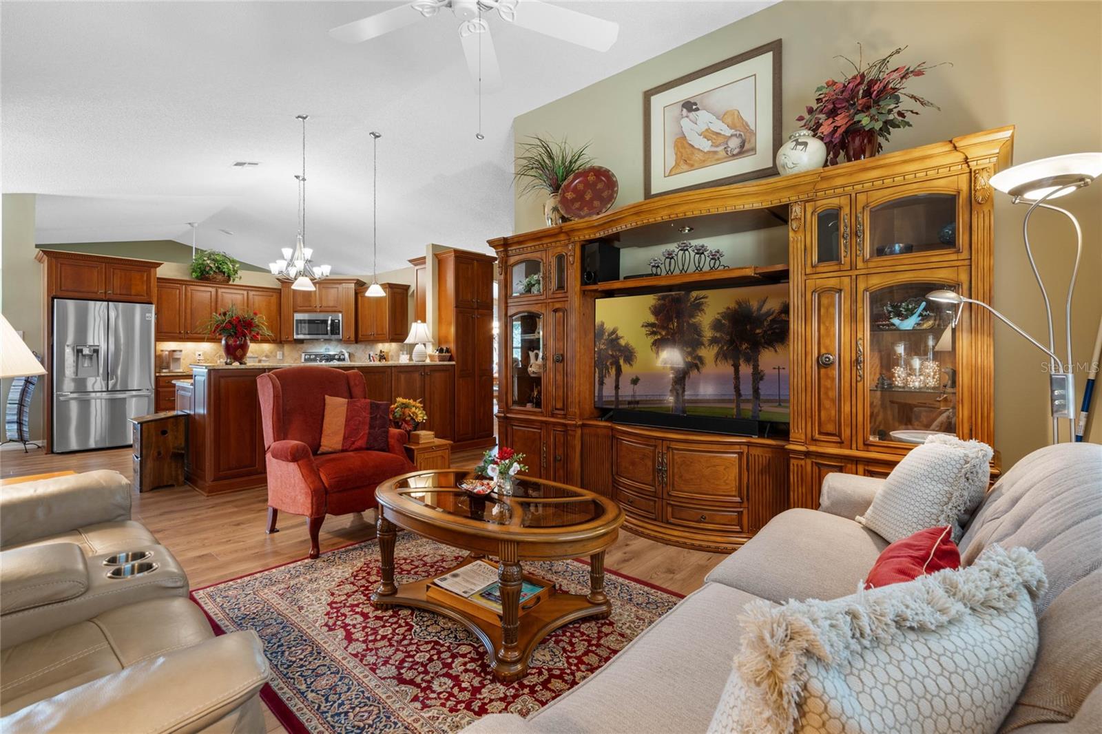 Stunning GOLF VIEW HOME, located on the FIRST HOLE of the popular, CRANES ROOST golf course. This house has been modified and expanded from the Great Spruce, and PREVIOUSlY A MODEL HOME! ***Be sure to check out the 3D TOUR above*** The home offers breathtaking golf course views and unparalleled privacy. The long approach paved driveway along with being tucked away in a cul-de-sac, creates minimal through-traffic and ample parking options. You will appreciate the upgraded and established landscaping with stone bordered beds. NO CARPET, featuring easy-care German-engineered SOLID WOOD FLOORING throughout, ensuring a seamless flow from room to room. This home boasts a range of updates and upgrades, including all new windows (2012), a NEW AC system (2023) with SANITIZER, a full WATER FILTRATION system, and FULL HOME GROUNDING RODS (2023). Additionally, a TRANSFERABLE TERMITE BOND provides added peace of mind. The redesigned CUSTOM KITCHEN is a chef's dream, showcasing GRANITE countertops and custom-built SOLID WOOD CHERRY CABINETS. Offering a NEW MICROWAVE, CONVECTION STOVE and DISPOSAL along with LOTS OF DRAWERS, PULL-OUT CABINETS, and a separate pantry with additional custom storage, this kitchen is perfect for both daily living and entertaining. Enjoy game day or host gatherings with ease as the kitchen opens up to the family room, dinette, and a Florida room with miles of gorgeous views. The primary suite is a spacious retreat, easily accommodating a king-size bed and offering an ensuite bathroom with DUAL SINKS, a soaking tub, and a walk-in shower. Bedroom two is versatile and could serve as a secondary primary suite, complete with its own private ensuite—ideal for guests or a mother-in-law suite. Bedroom three is perfect for a home office or flex space, and an additional half bath is conveniently located for guests. Plus, an inside laundry room adds to the home's functionality. The Plantation at Leesburg is a 55+ community that offers two full size golf courses, 3 clubhouses; all with heated pools, tennis, pickleball, pool tables, darts and a huge list of activities each and every month that will keep you moving and having fun. You can enjoy a good game of softball and hotdogs at the pavilion on game day. Whether it is bocce ball, shuffleboard, or horseshoes, you will never run out of things to do at the Plantation. The life you have waited your whole life for is just minutes away from major hospitals and shopping. Easy access to the parks and airport. This exceptional property combines elegance, functionality, and comfort, making it a true gem in the community. Don't miss your chance to make this beautiful house your new home! Call today for your personal tour!